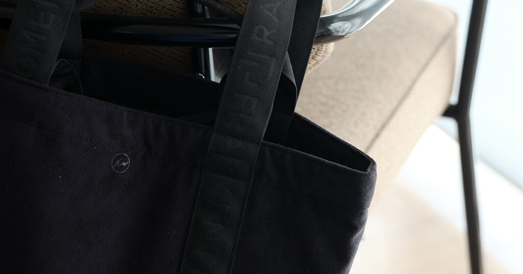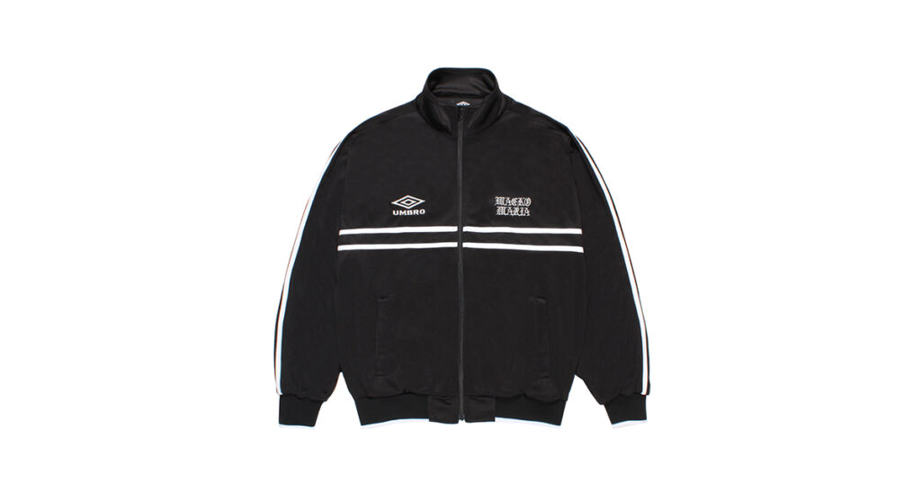 コーチジャケット、フーディー、スウェットパンツ、トートバッグなど、ブラックで統一されたシンプルなアイテムに両者のロゴが際立つ全8型が登場。