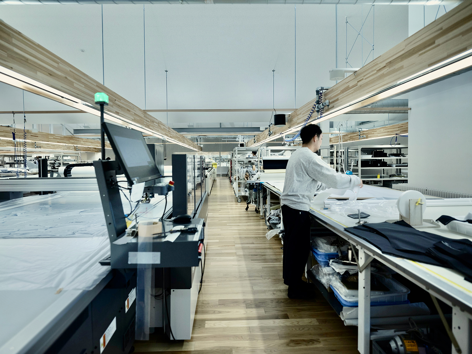 オートメーション化された、いかにも未来的なファクトリーを想像していましたが、まったく違いました。予想に反してかなりアナログな工場だったのです。そう、『水沢ダウン』は高機能ゆえにその製造工程もかなり複雑。そのため(ほぼ)手作業で作られているのです。