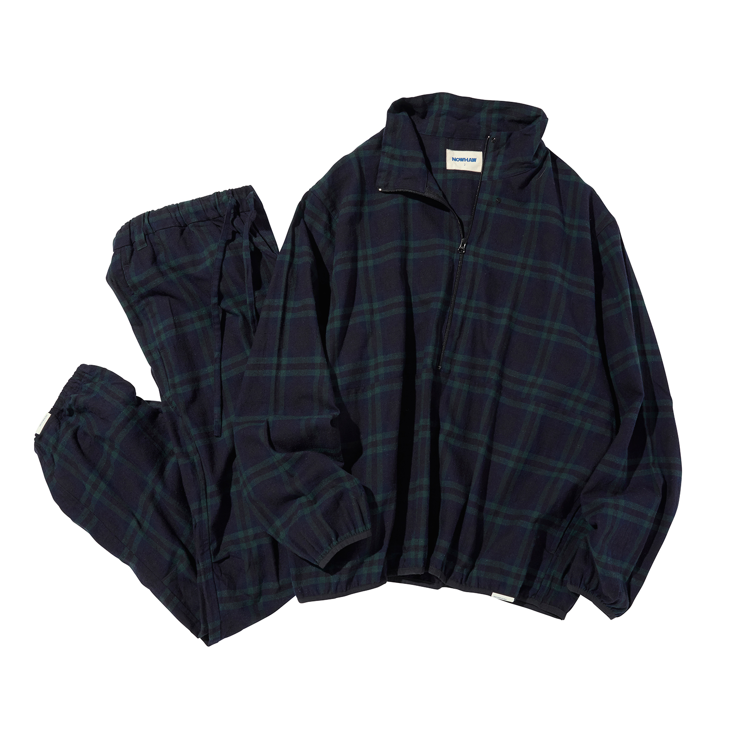 三木:ハーフジッププルオーバーとワイドなシルエットのジョガーパンツのセットアップパジャマ。普通にめちゃくちゃお洒落なので、駅前ぐらいまでは余裕で行けます。