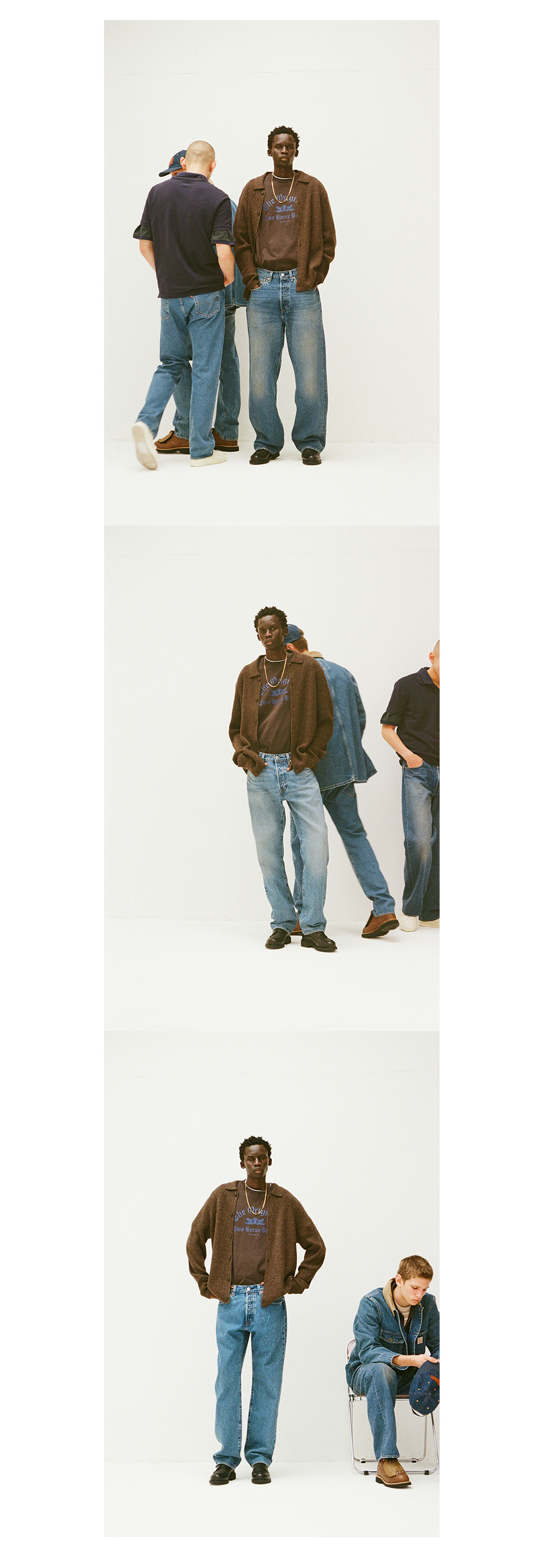 上からLevi’s®の『501® Loose』 16,500円、『501®︎ ORIGINAL』 16,500円、『501® Relaxed』 16,500円、ポロシャツ 6,600円、中に着たポロシャツ 8,800円(すべてLEVI STRAUSS JAPAN K.K. TEL:0120-099-501)、その他スタイリスト私物