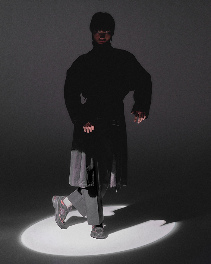 New Balanceの『ABZORB 2010』 22,000円(New Balance Japan TEL:0120-85-7120)、sssteinのコート 129,800円、スラックス 47,300円(carol TEL:03-5778-9596)、その他スタイリスト私物
