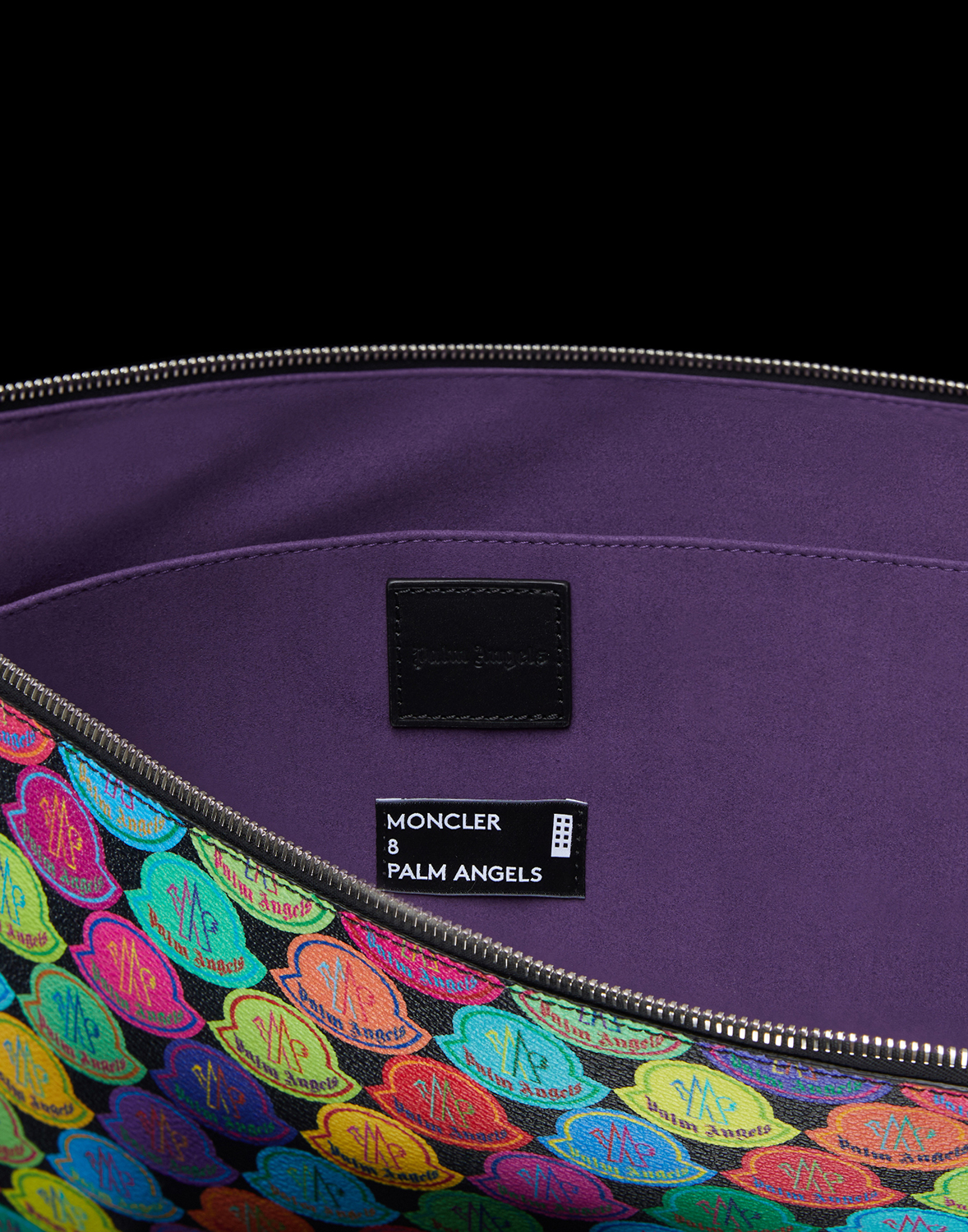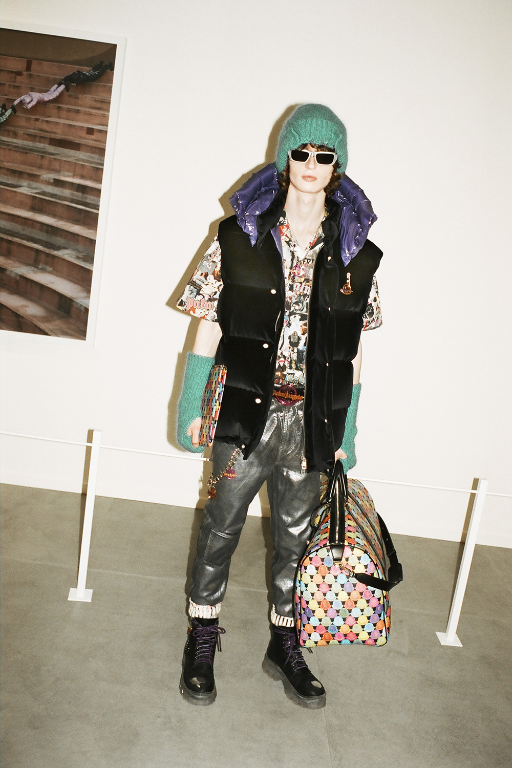 さらに、コラージュパターンプリントを全体に配したダウンジャケットやPalm Angelsのブランドネームをグラフィティ調のスプレープリントでTシャツやダウンベストにデザインするなど、ヴァンダリズムを表現したアーティスティックなアプローチを用い、コレクションを創り上げた。