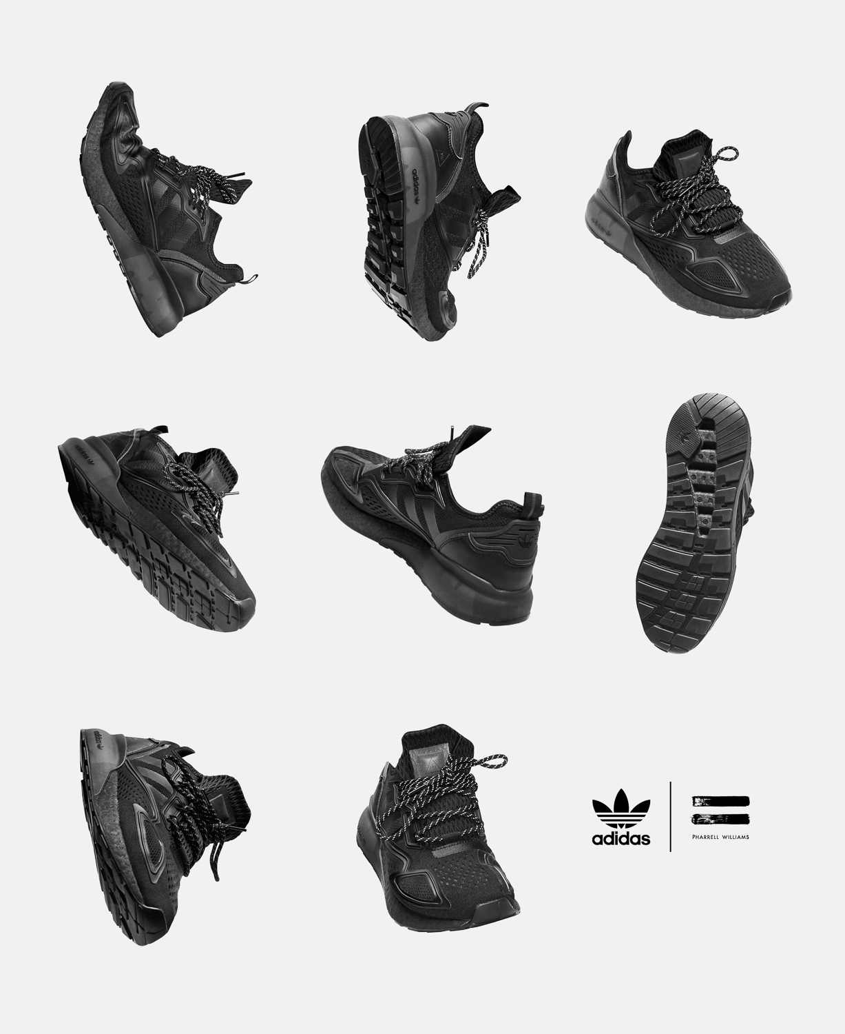 『STAN SMITH』、『SAMBA』などの人気モデルを含む全14型のフットウェアと7型のアパレルは全てピュアなブラックのみで作り上げられており、フォルムと機能性によって、そのデザイン性の高さが浮き彫りに。随所に用いられたリフレクターパーツとブランドロゴのディテールにより、異なる表情へと変貌を遂げている。