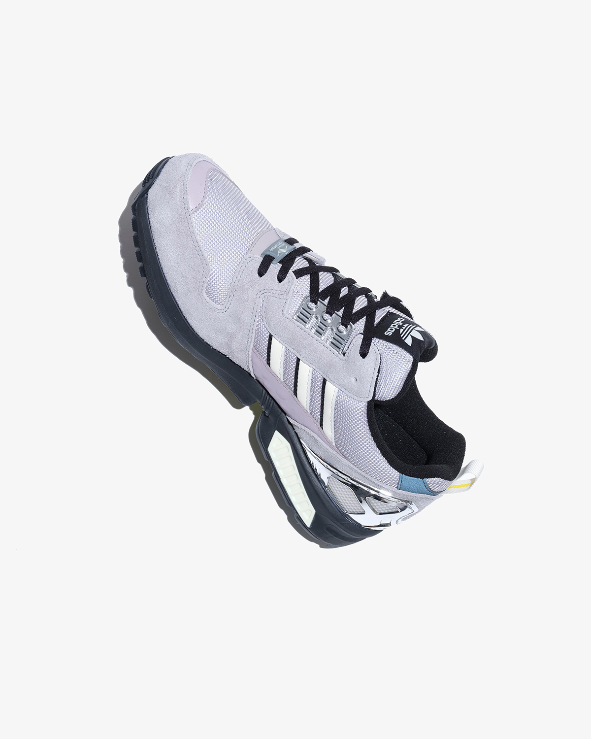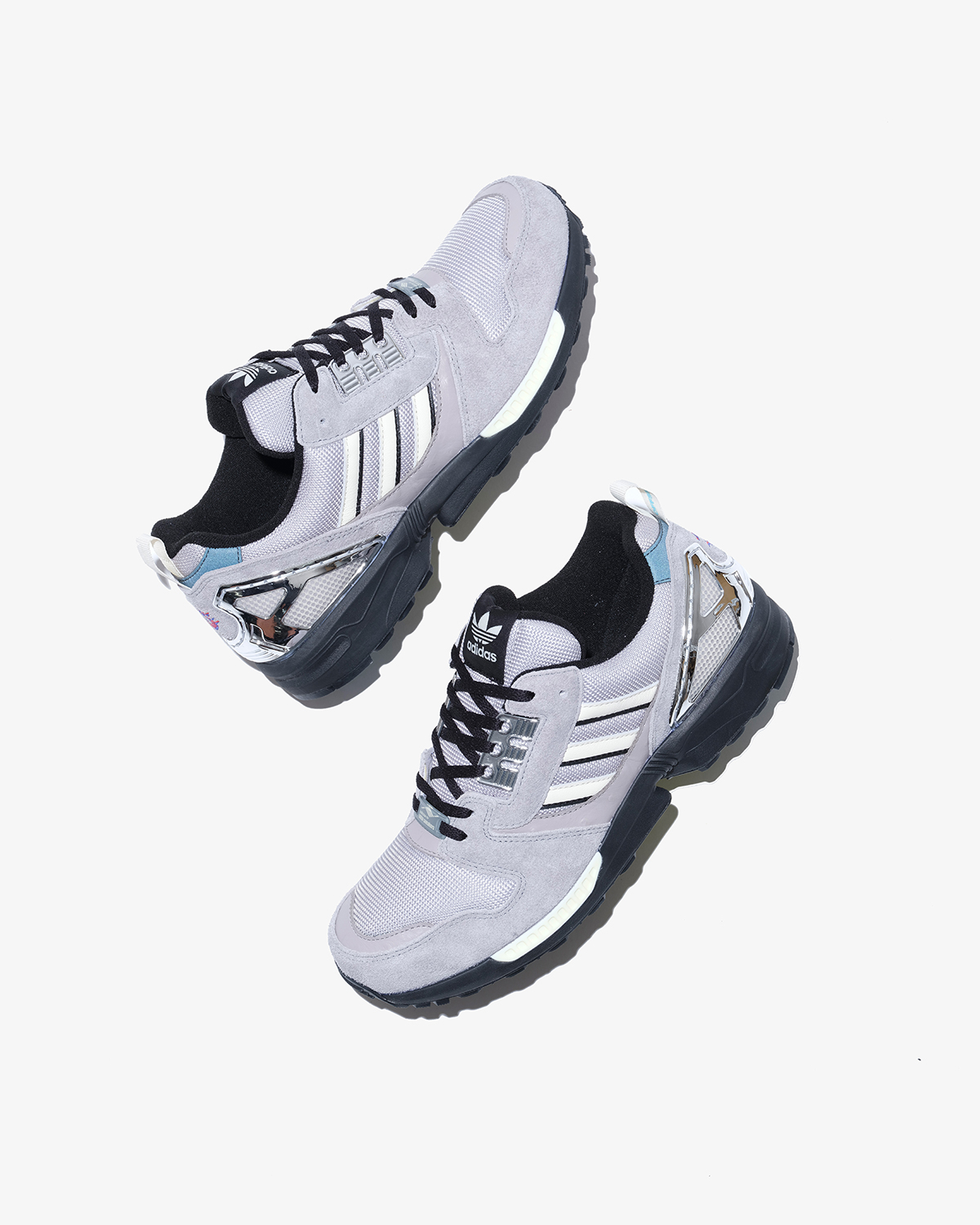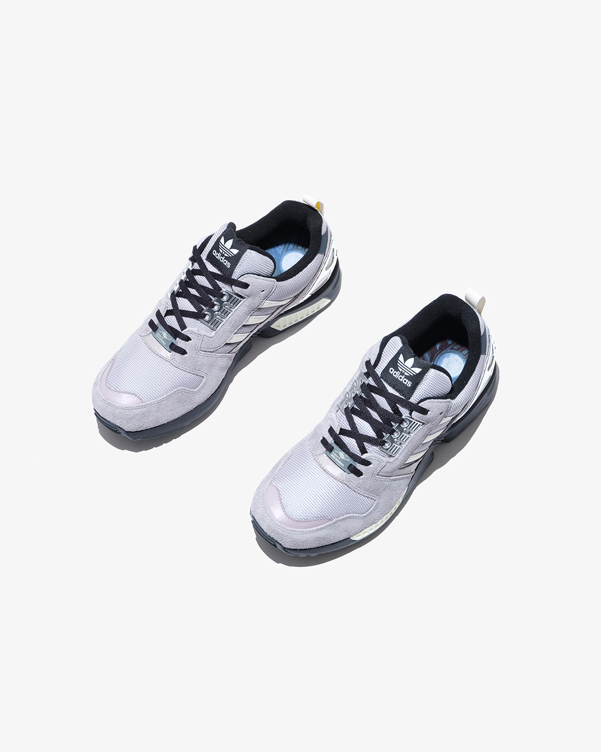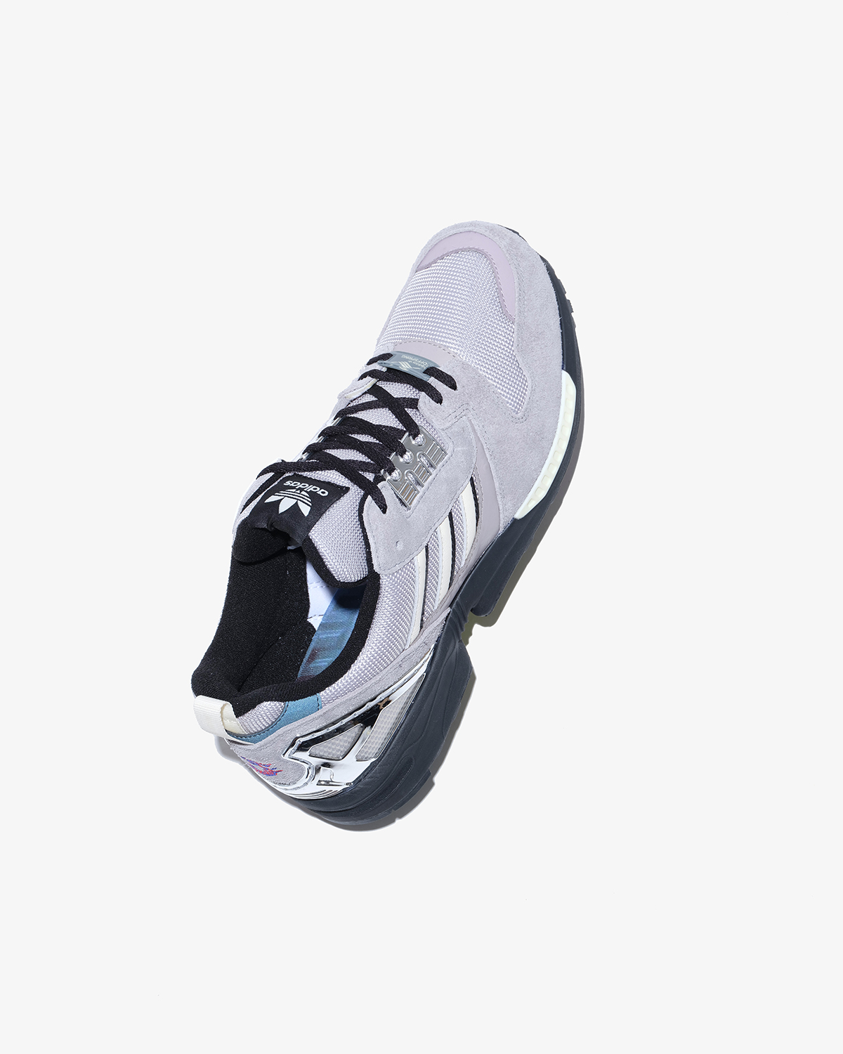 日本とも縁が深いZXシリーズの『ZX8000』をベースとした1足は、ロンドンの曇り空、東京のコンクリートから着想を得たカラーパレットを採用して外観をメイクアップ。コンセプトを象徴するロゴをヒールにあしらいつつ、当時のトルションシステムの広告からインスパイアされたグラフィック入りのインソールや、オリジナルモデルの大胆なカラーウェイを思わせる鮮やかなオプションシューレースをセットした。