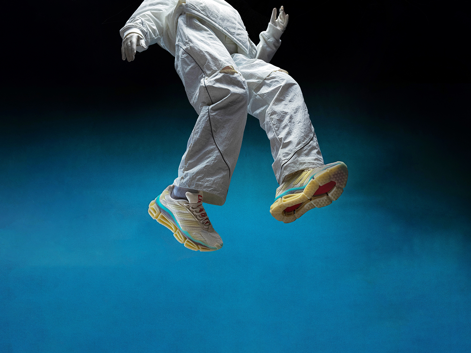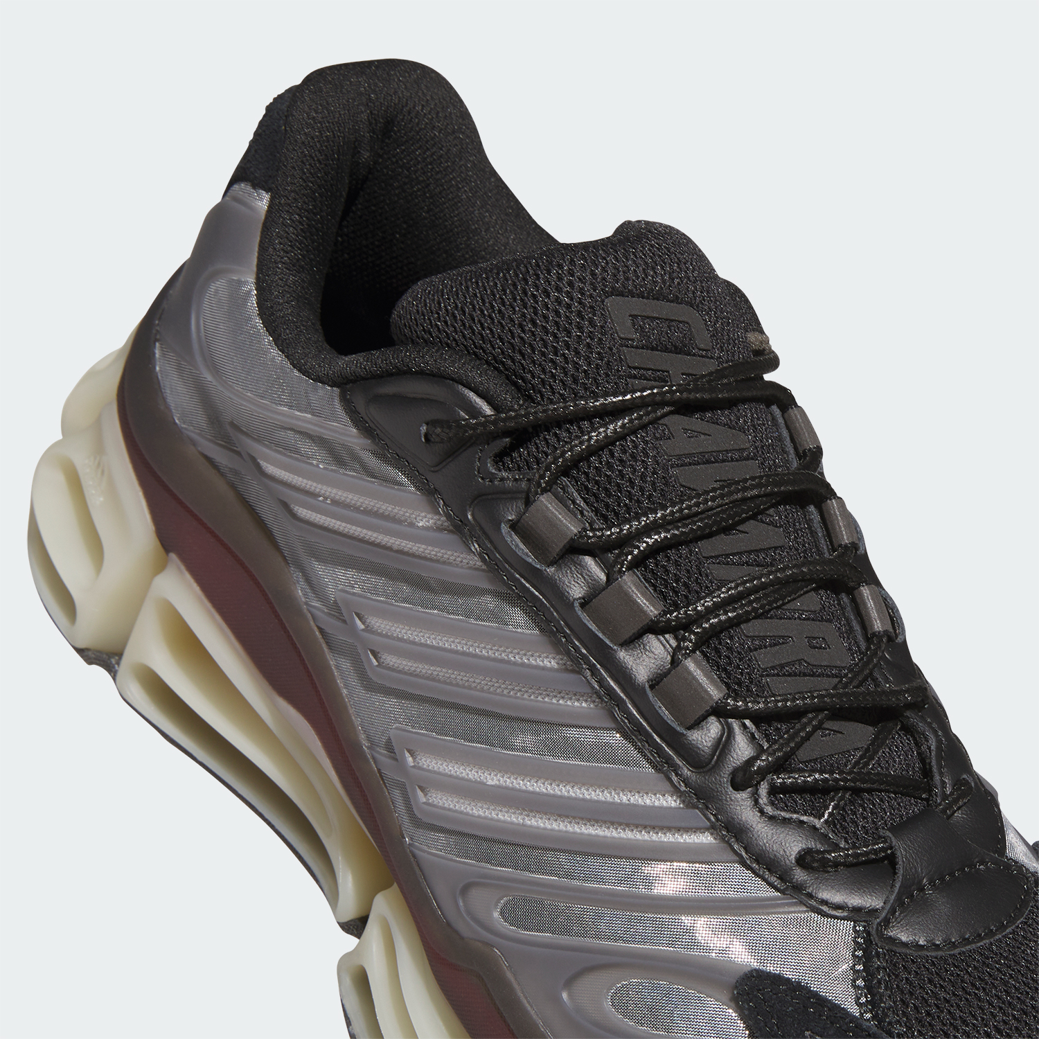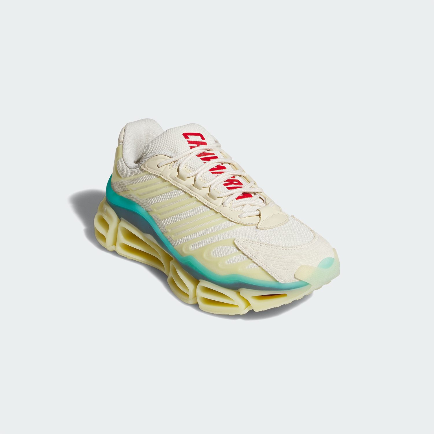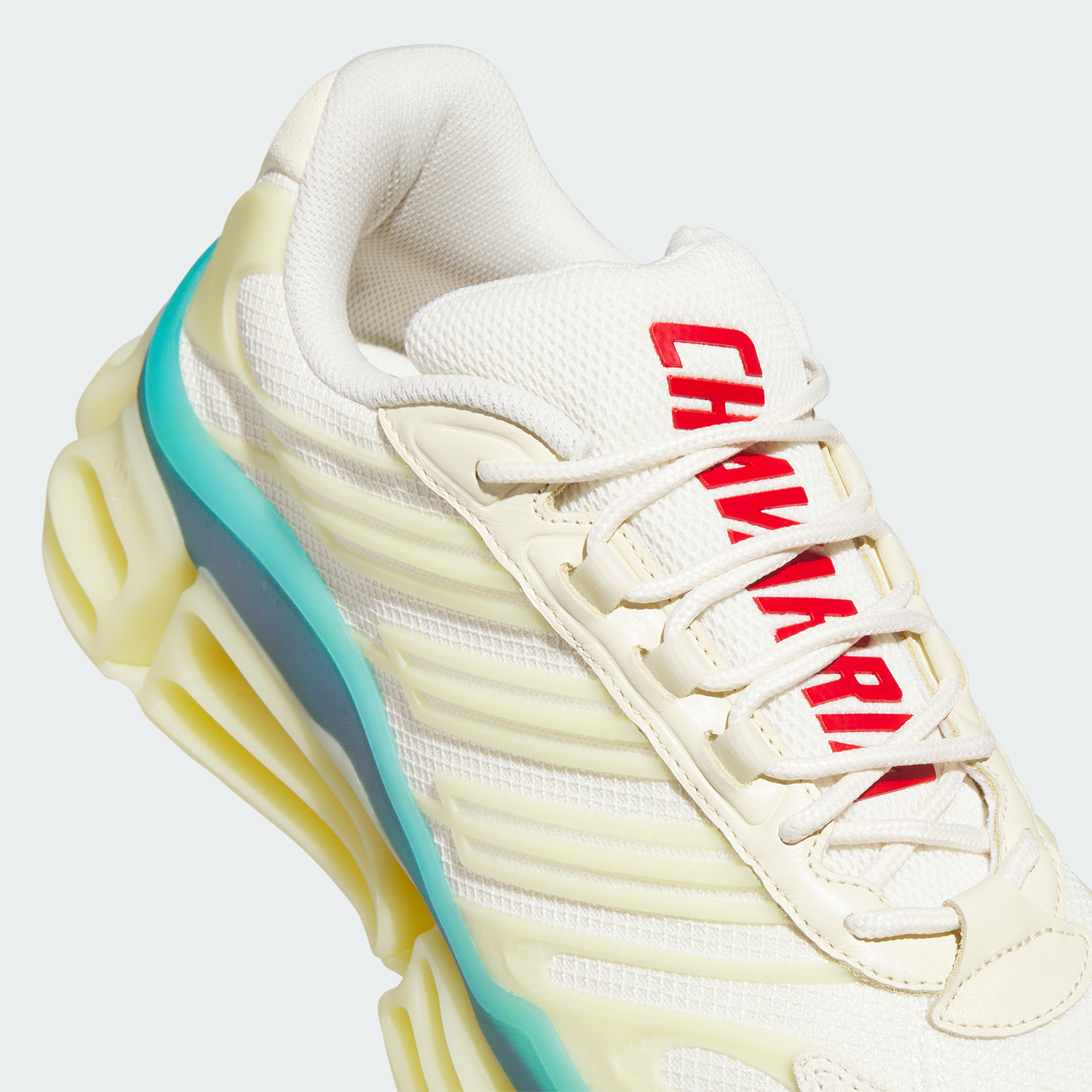 目を引くリフレクター素材とスウェードのアクセント、メッシュのベース、シュータンに施された”Chavarria”のプリントなど、個性的なディテールを配した1足は、WILLY CHAVARRIAらしい何にも縛られることがない軽やかさを表現している。