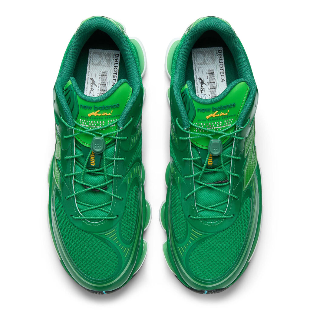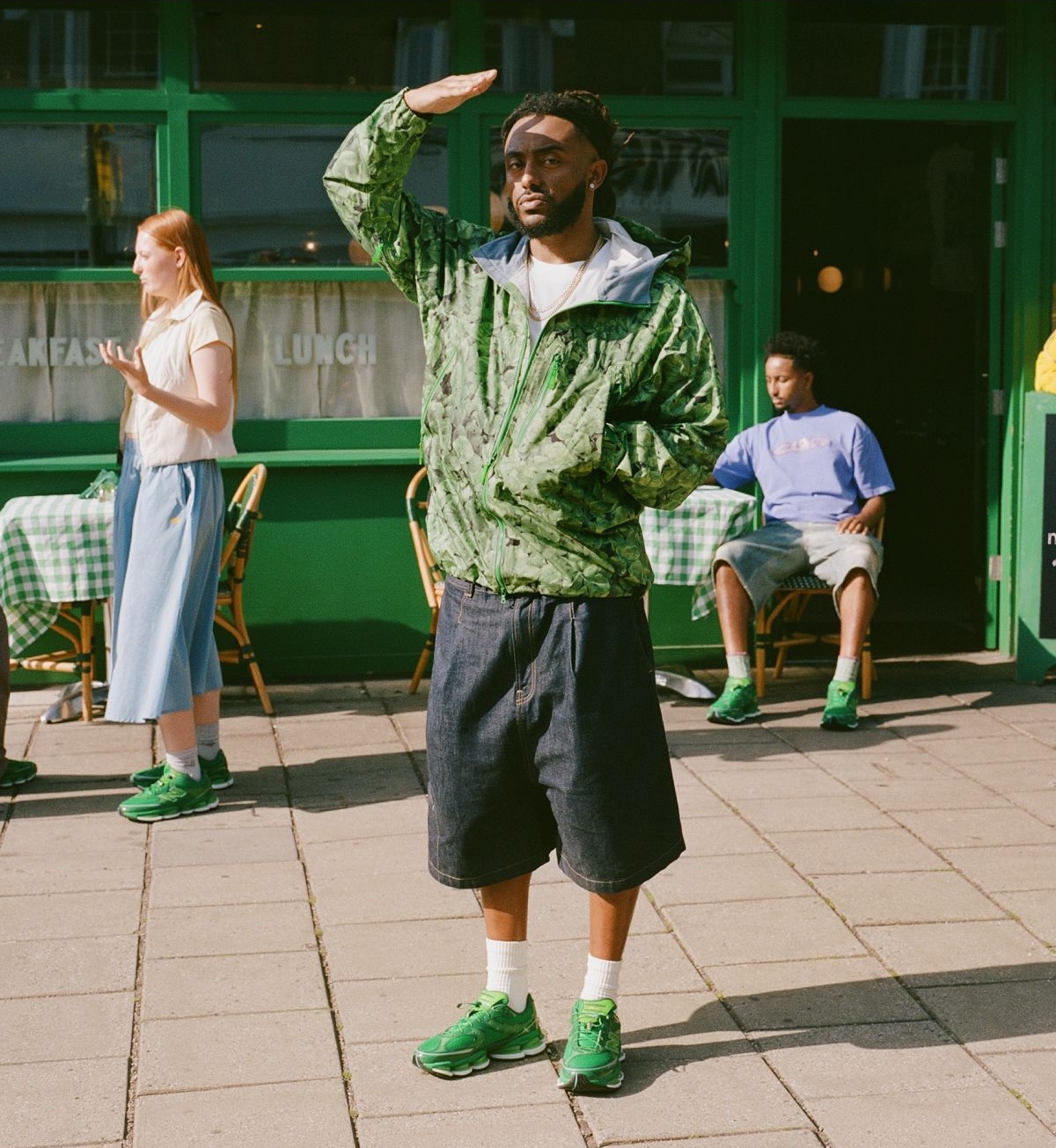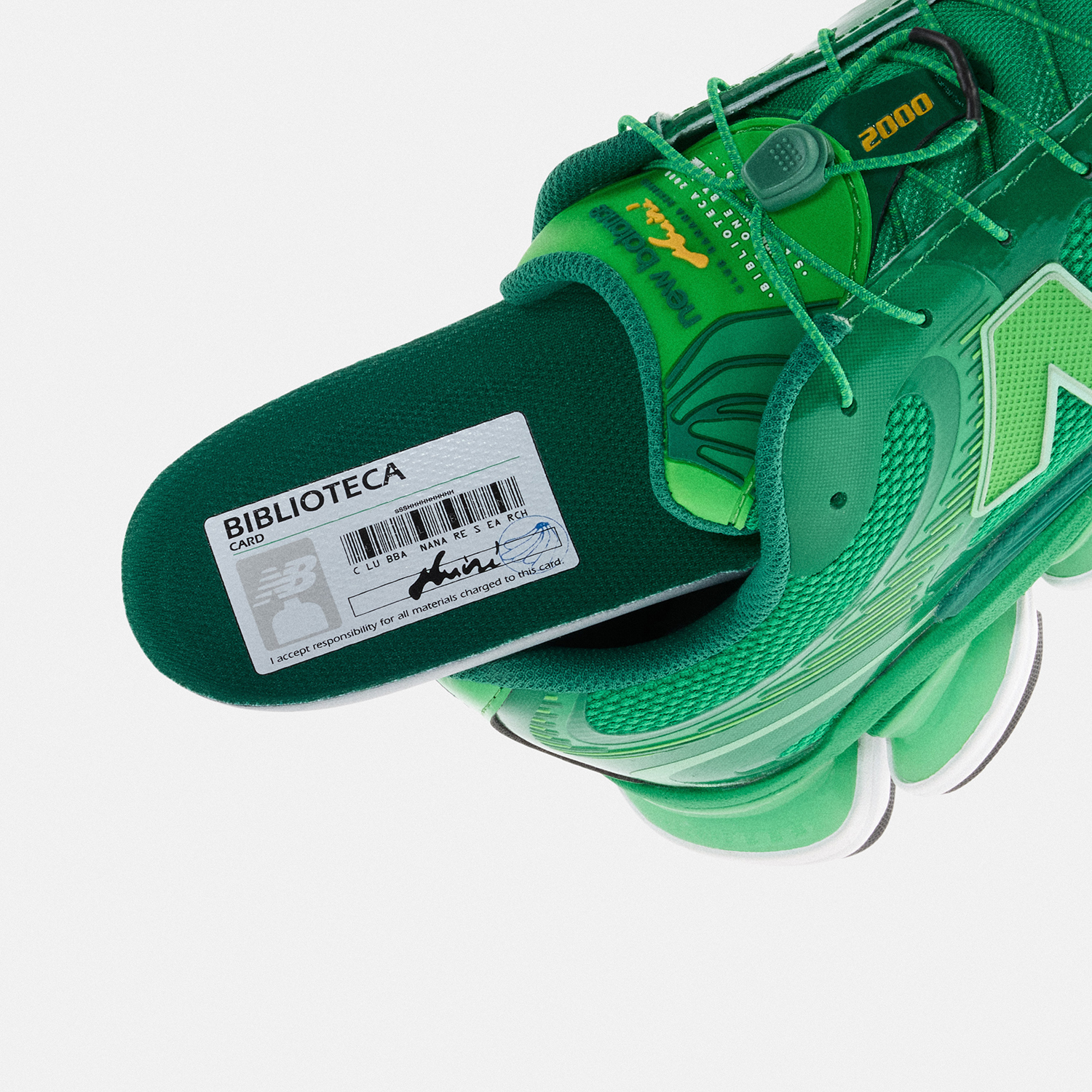 今回のコラボレーションでは、Aminéの故郷の国のオフィシャルロゴから着想を得た鮮やかなグリーンでシューズ全体を包み込み、彼の人生に大きな影響を与えた地元の図書館への愛を表現。