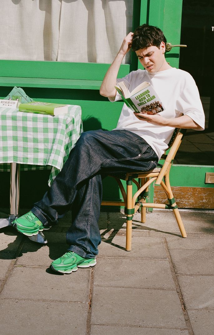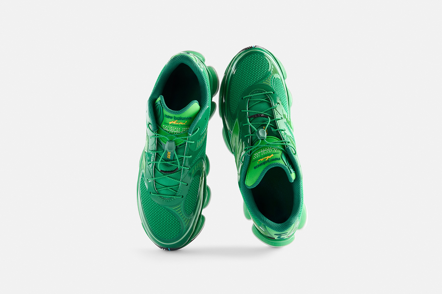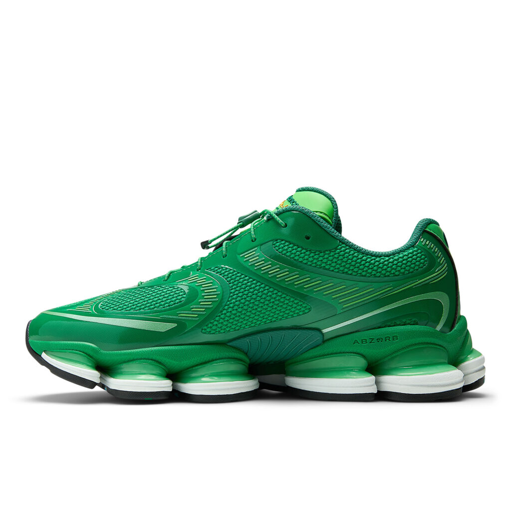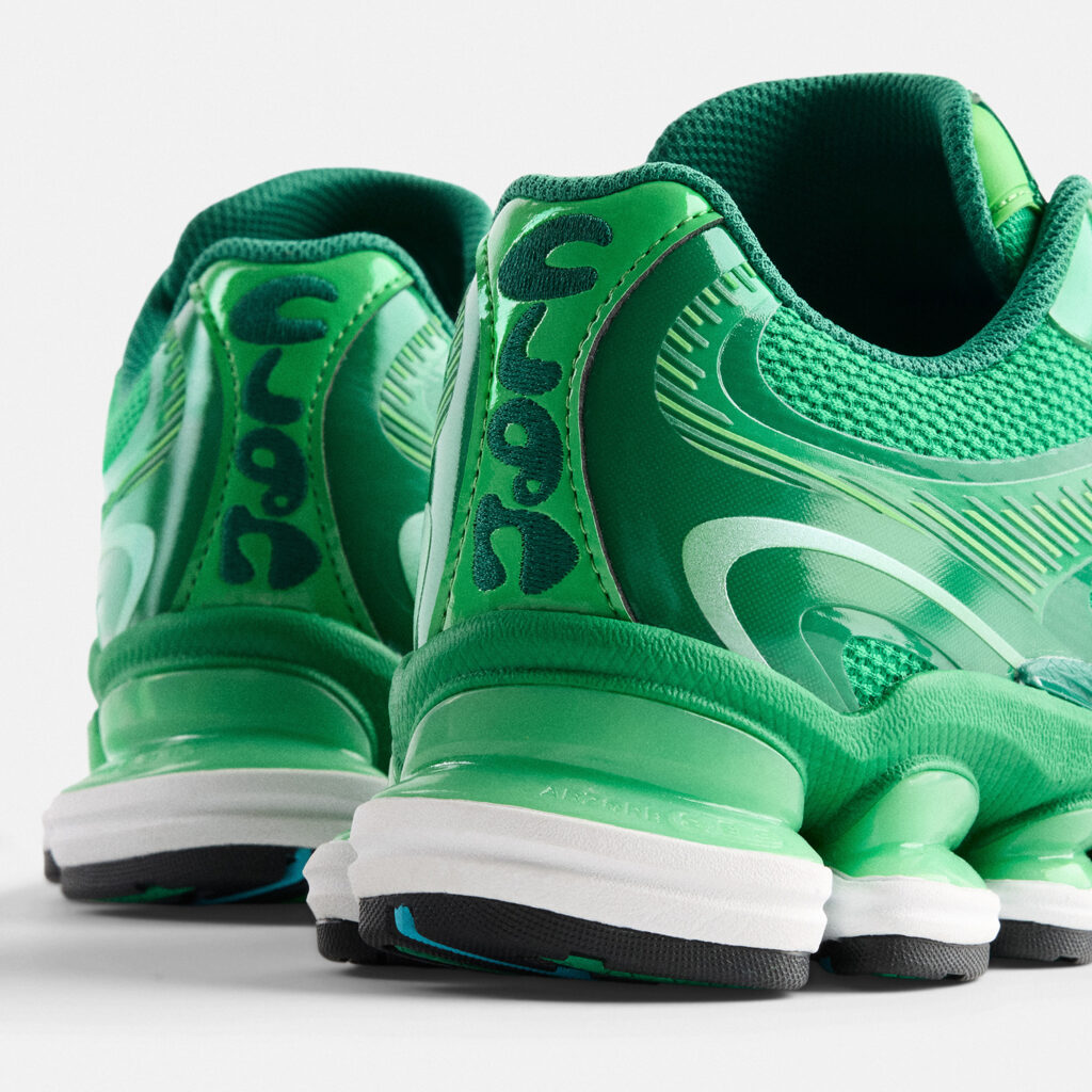 今回のコラボレーションでは、Aminéの故郷の国のオフィシャルロゴから着想を得た鮮やかなグリーンでシューズ全体を包み込み、彼の人生に大きな影響を与えた地元の図書館への愛を表現。