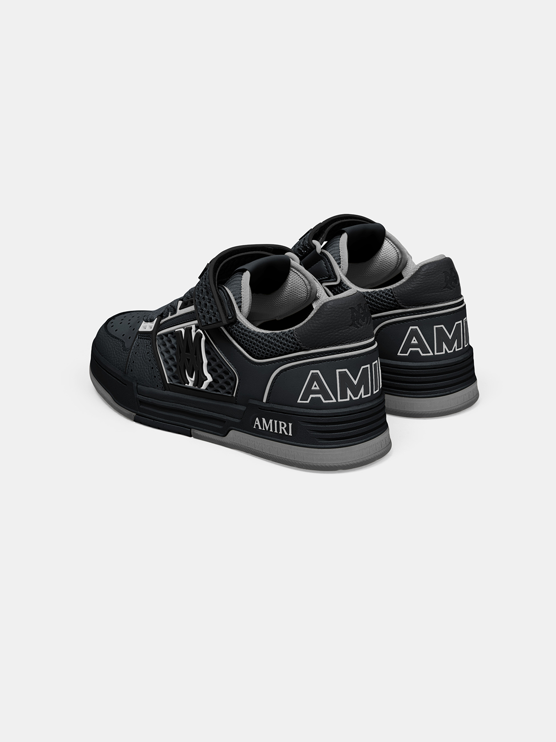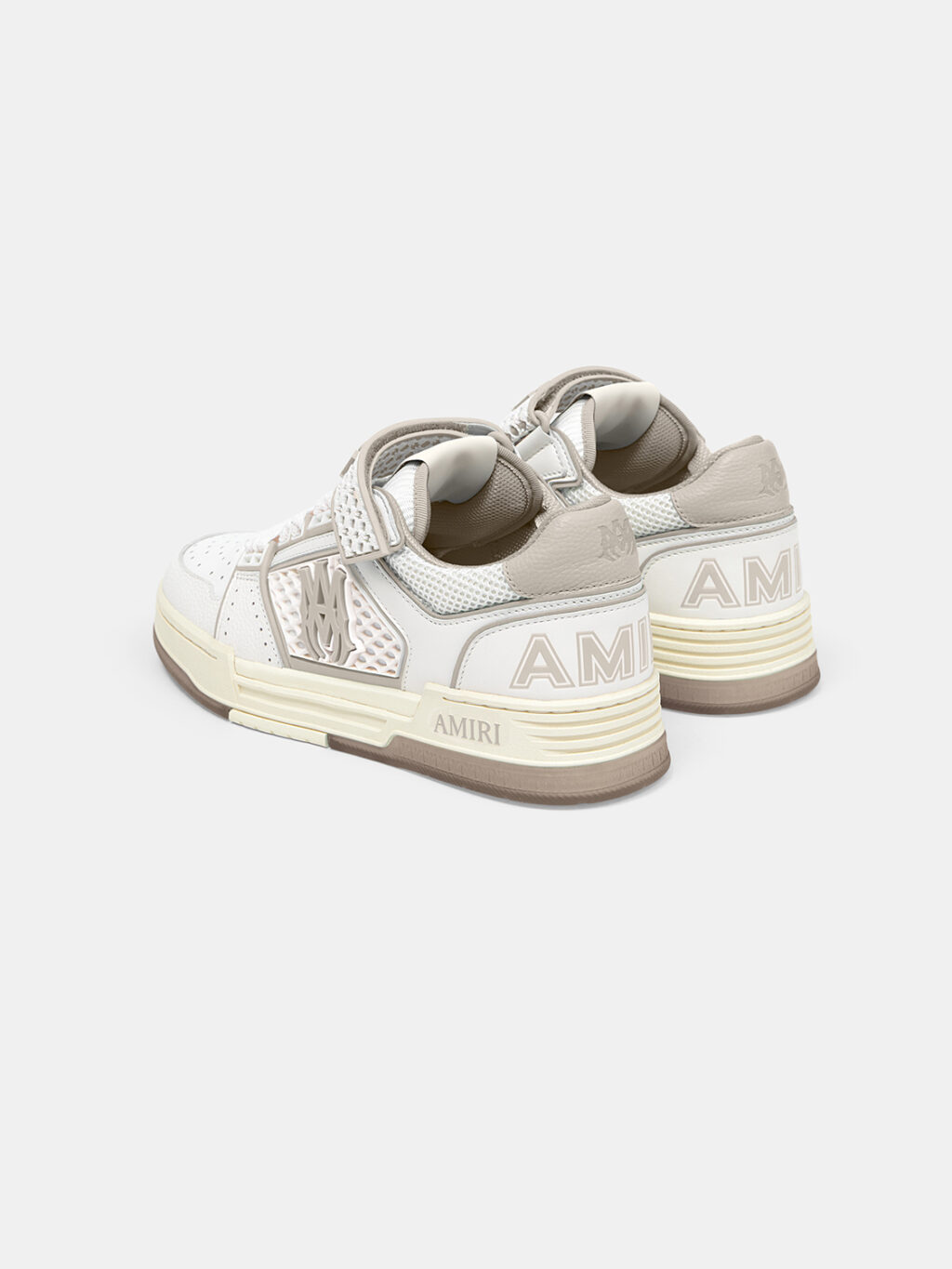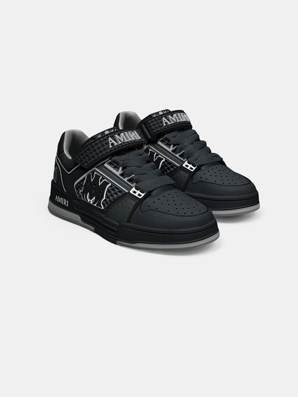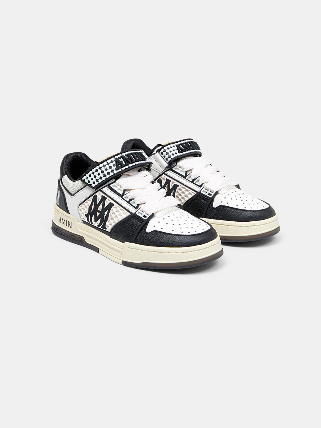 スケートパークが持つ反骨精神とコート内の規律という2つの世界のエネルギーを融合させた1足は、上質なレザーとスポーティなメッシュパネルをダイナミックなコントラストで組み合わせたデザインが大きな特徴となっている。