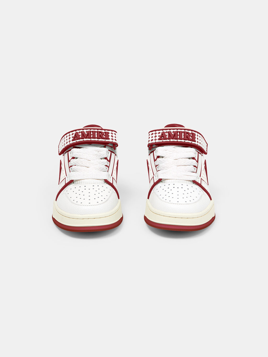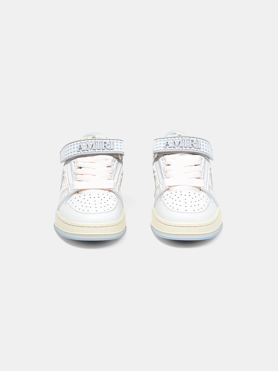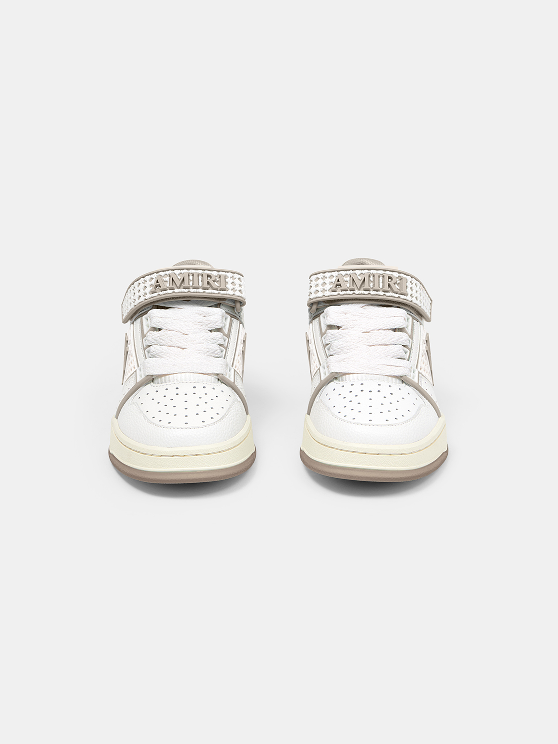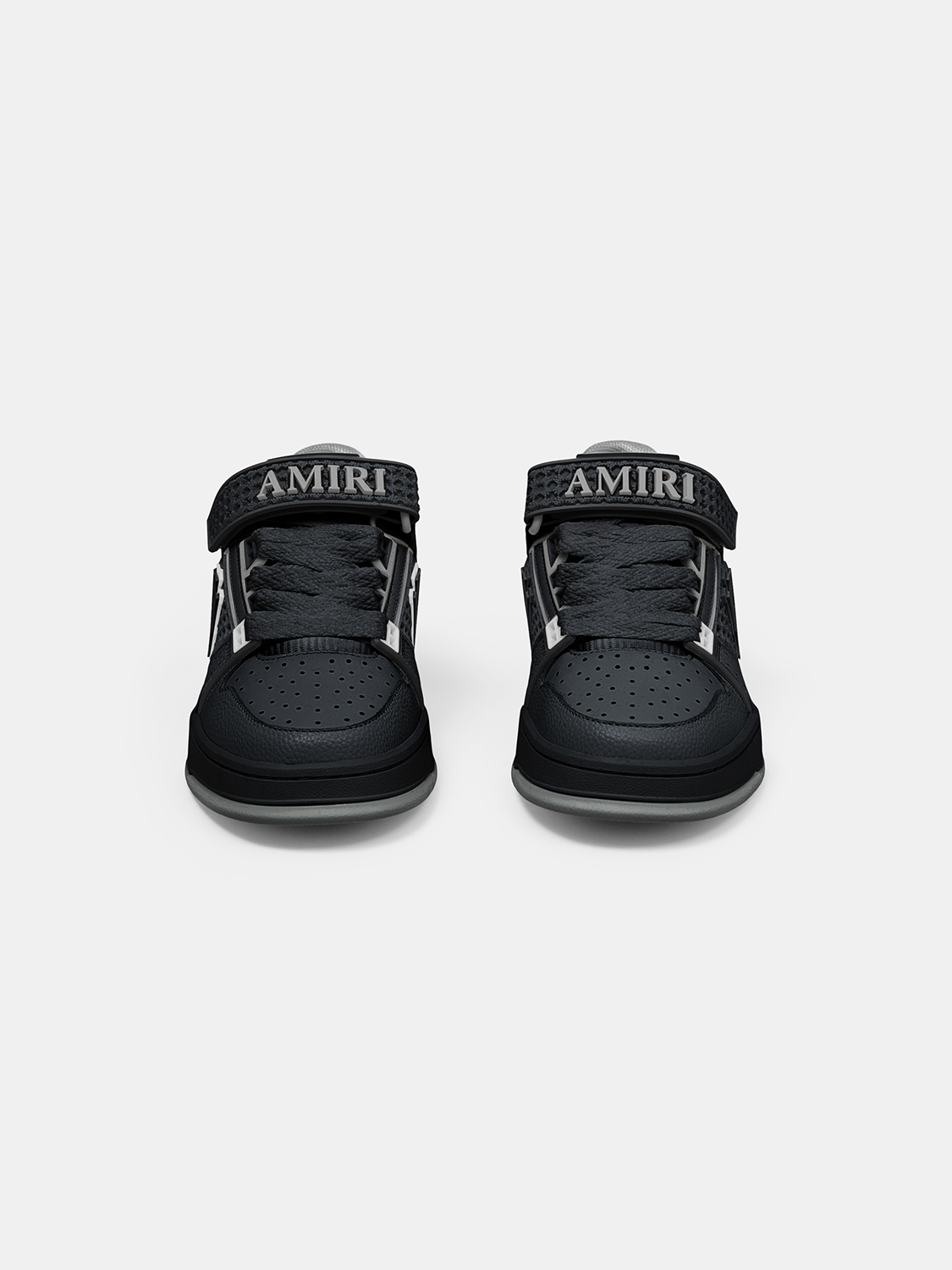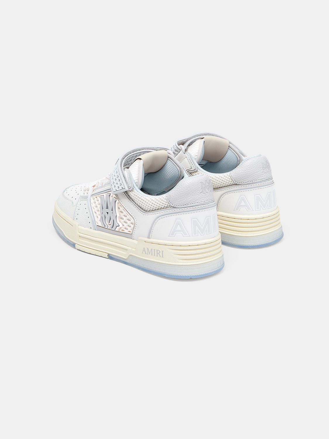 スケートパークが持つ反骨精神とコート内の規律という2つの世界のエネルギーを融合させた1足は、上質なレザーとスポーティなメッシュパネルをダイナミックなコントラストで組み合わせたデザインが大きな特徴となっている。