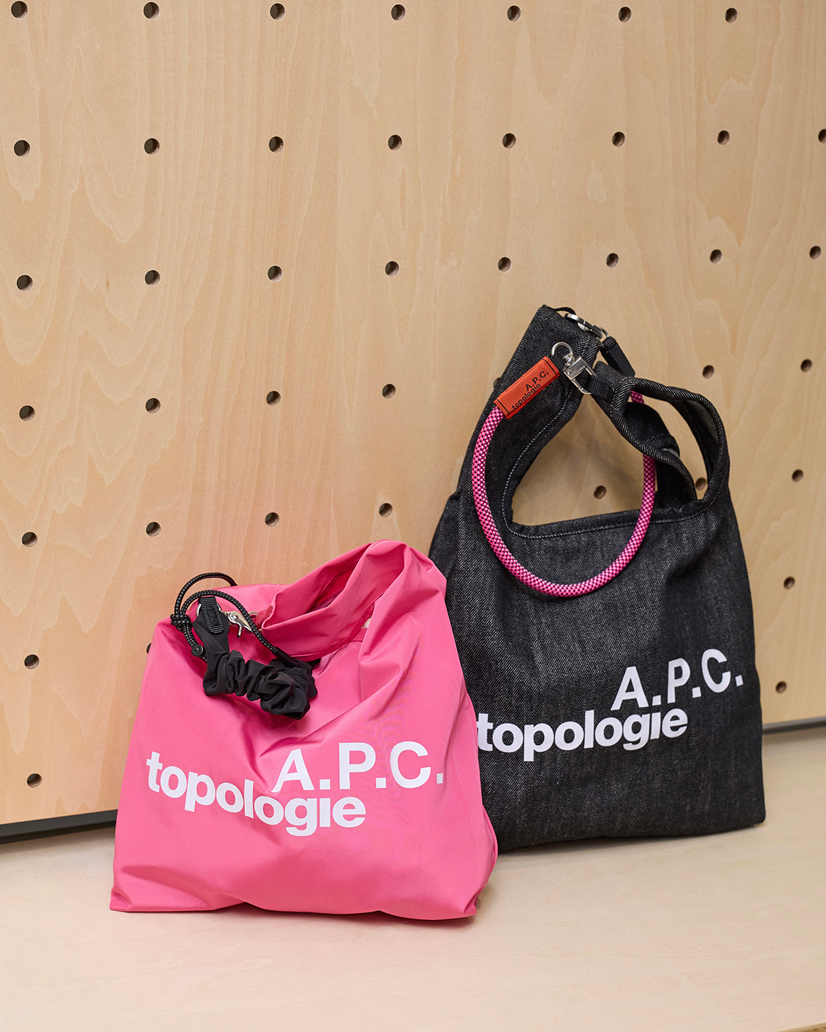 A.P.C.を象徴するデニム素材に、ロープや調節可能なストラップ、クライミングギア由来の金具を組み合わせたバッグのほか、モジュールシステムを拡張するコード類も登場する。