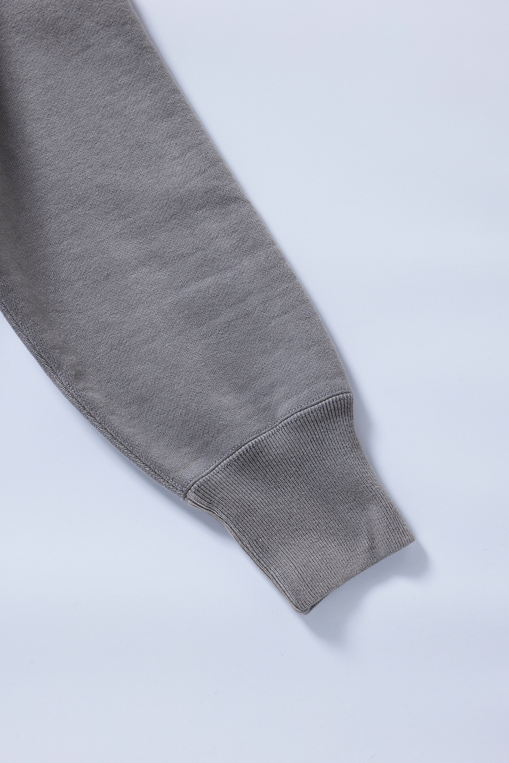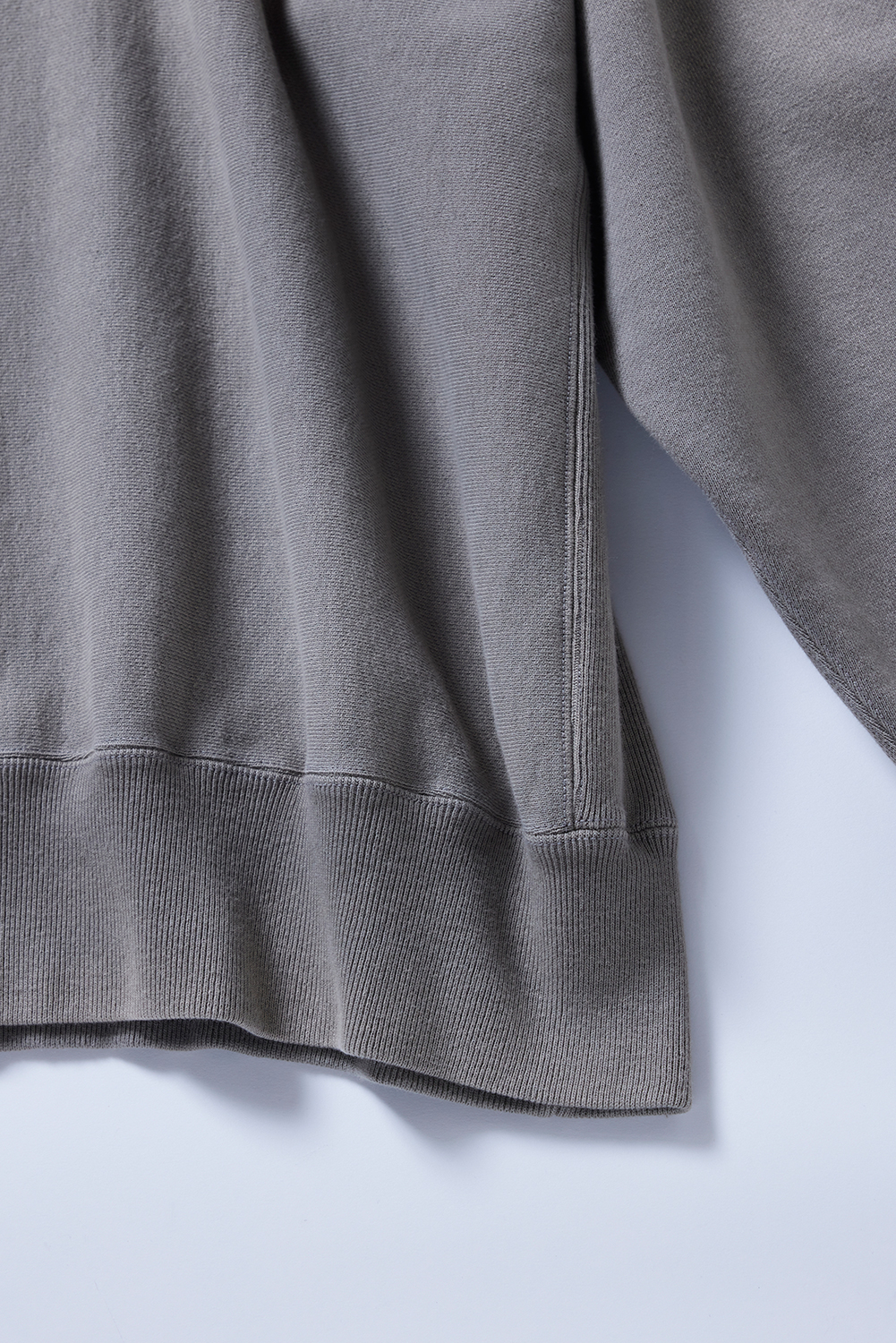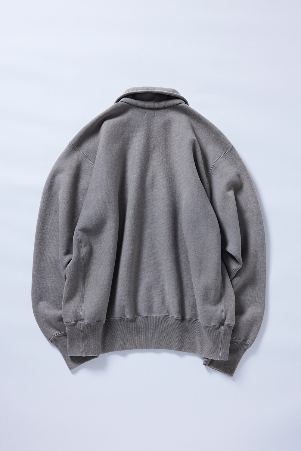 ヴィンテージを踏襲し、縫製仕様も忠実に再現したハーフジップスウェットシャツは、短丈で、袖は太くせず適度な太さに設定。インナーにも使いやすいちょうど良いゆとり感で、肩ハギがないヴィンテージのディティールを忠実に再現し丸みのあるシルエットに仕上げた。