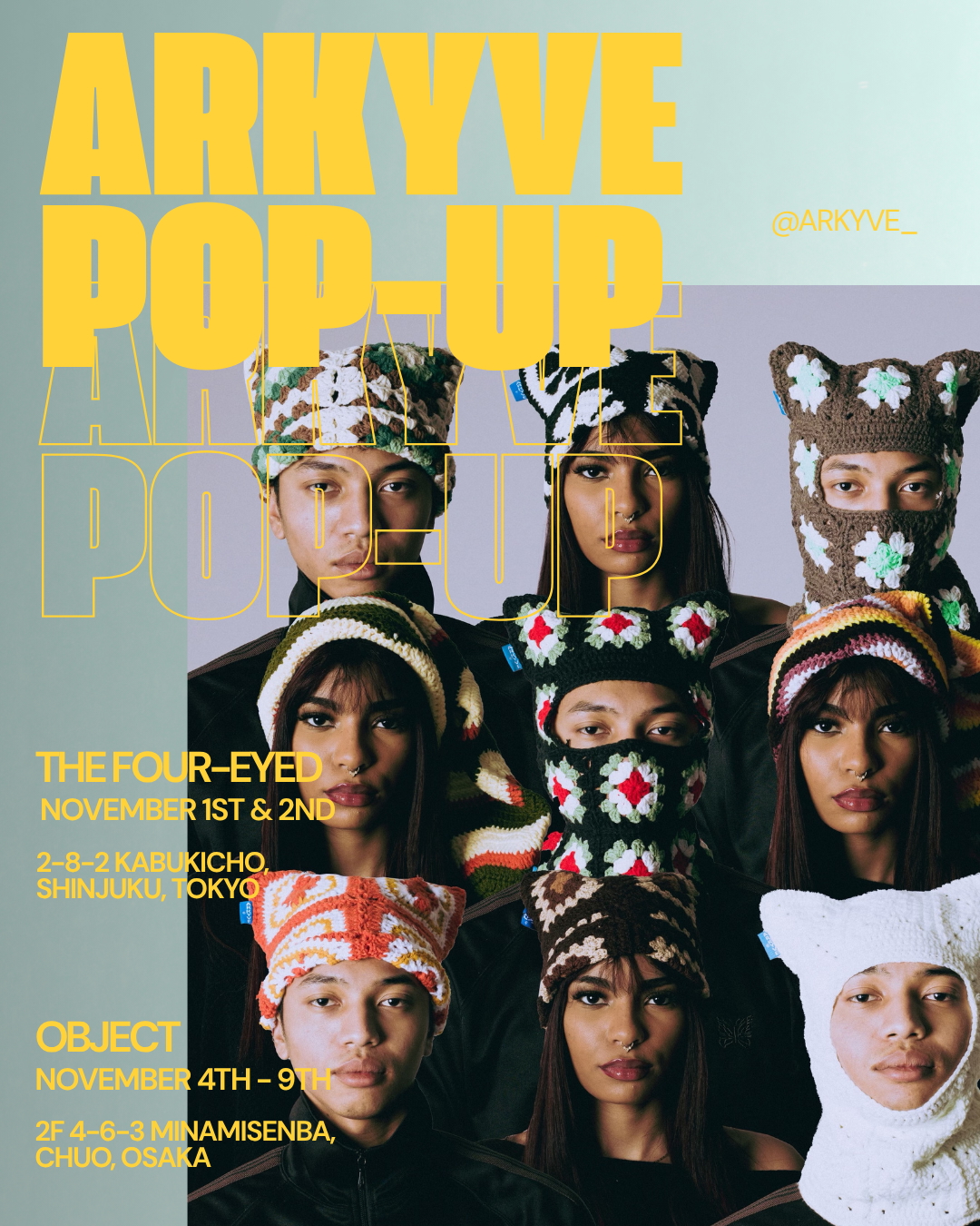 2021年に本格始動したArkyveは、ハンドクラフトのクロシェ(かぎ針編み)デザインで北米の若者を中心に熱狂的な⽀持を得る気鋭のブランド。