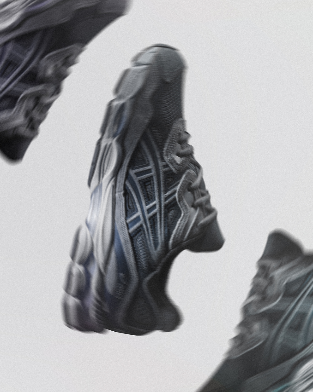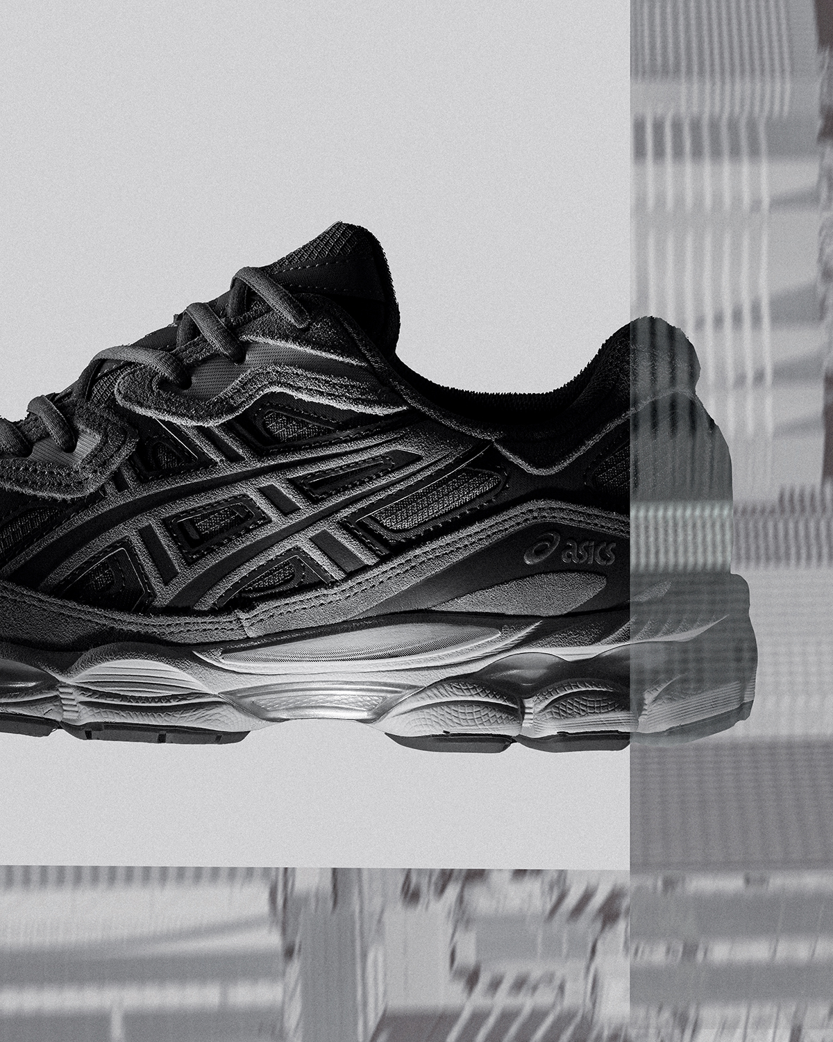 ナイロンメッシュにスウェードとテキスタイルを重ね合わせてアッパーを構成した、今回のエクスクルーシブモデル。