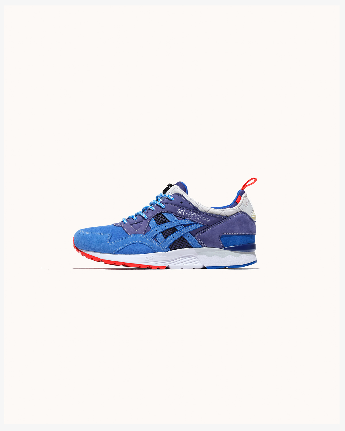 今回登場する『GEL-LYTE ∞ ”TRICO” ”mita sneakers”』では、様々な節目で両者の歴代コラボレーションモデルを彩ってきたカラーパレット・TRICOを採用。