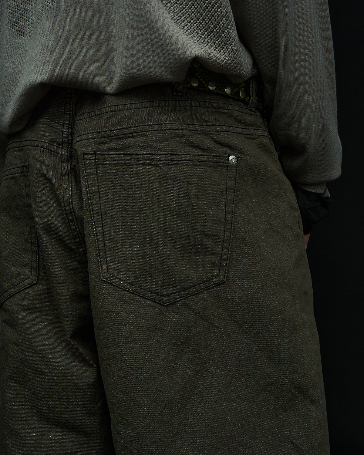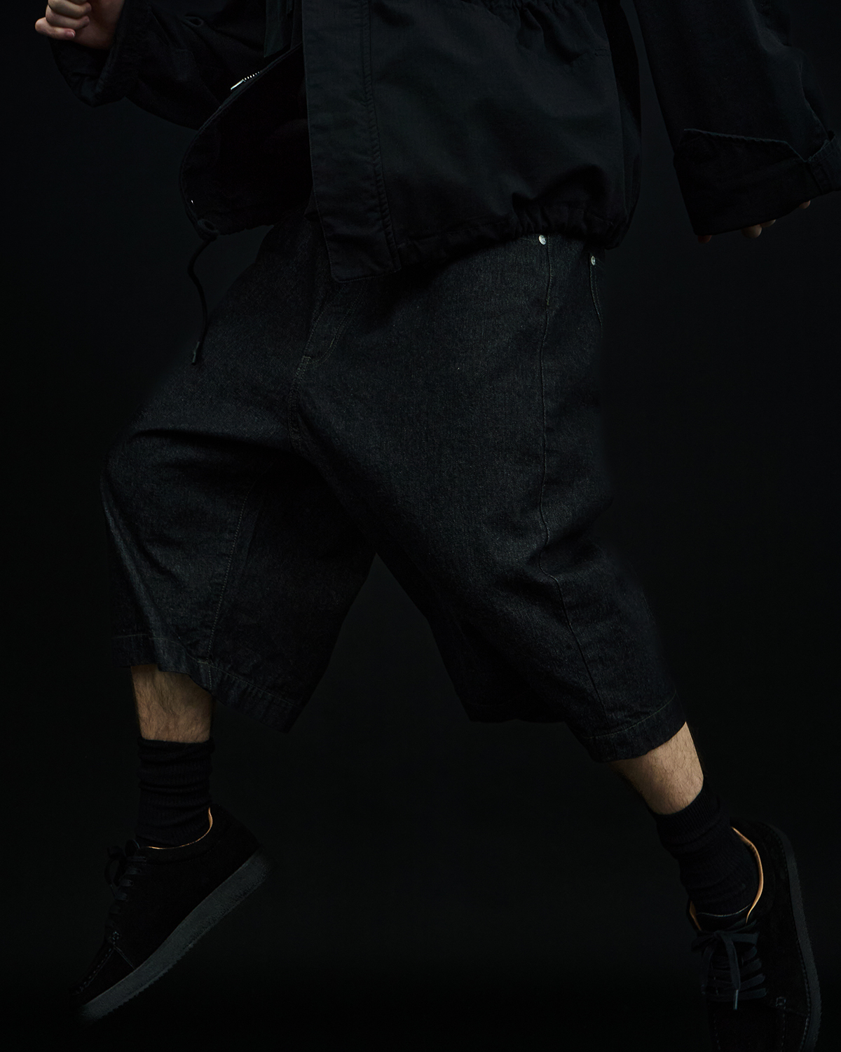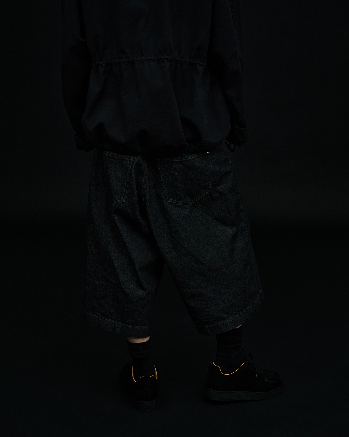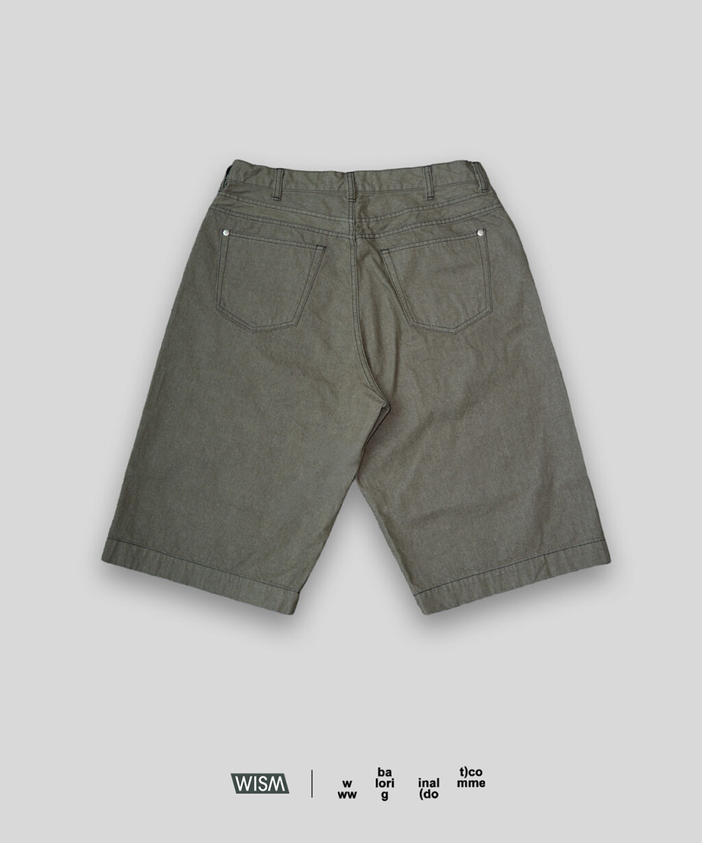 アイコニックなダブルヨークデザインを採用した5ポケットショーツをベースとした本作だが、今季はブラックとオリーブの2色を展開。