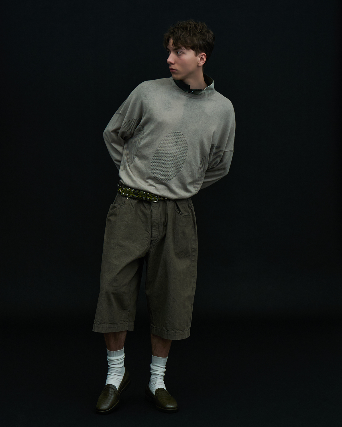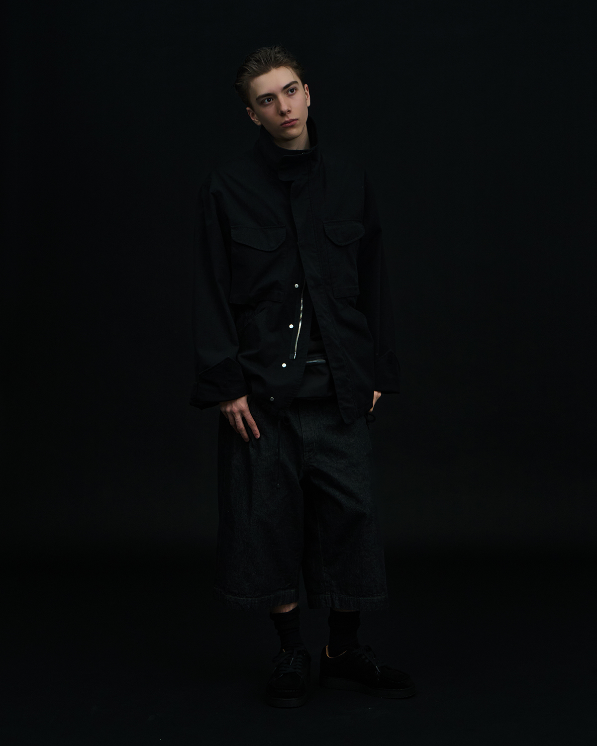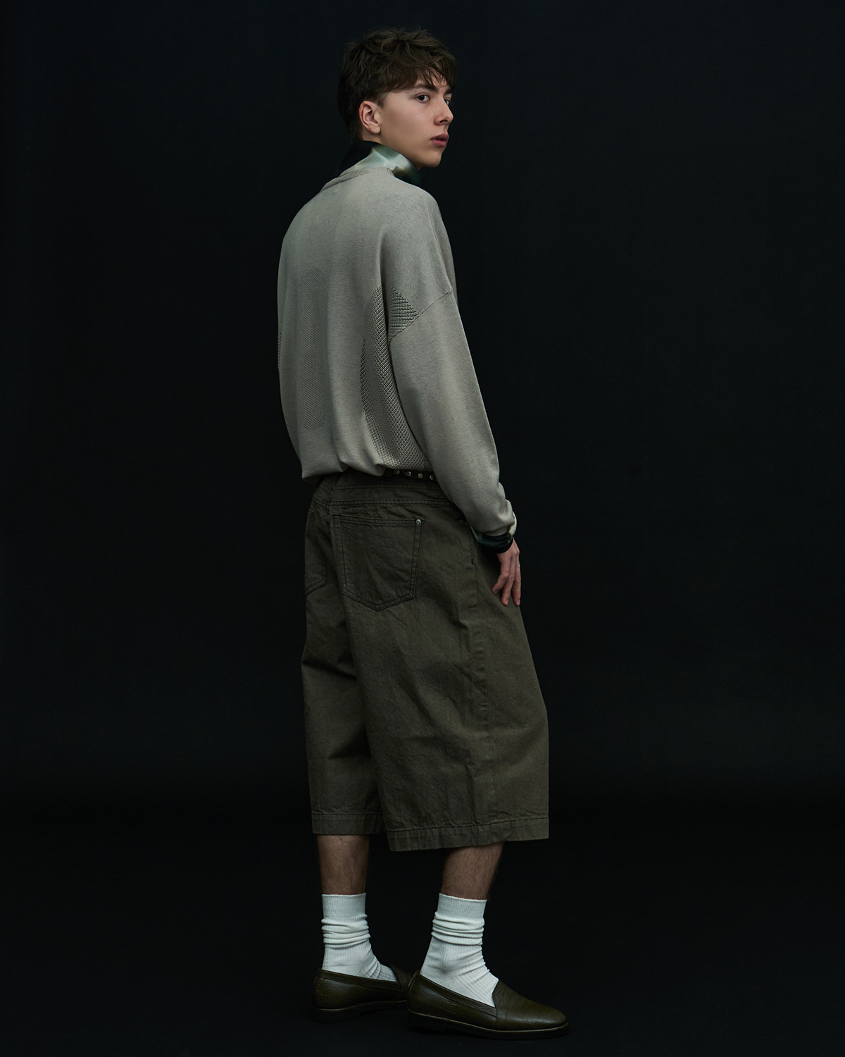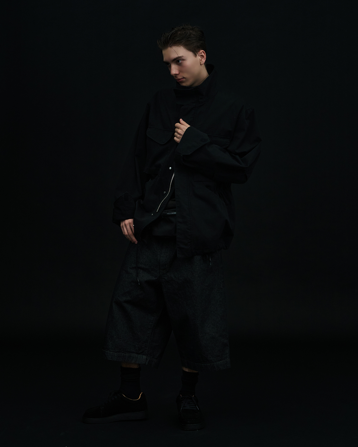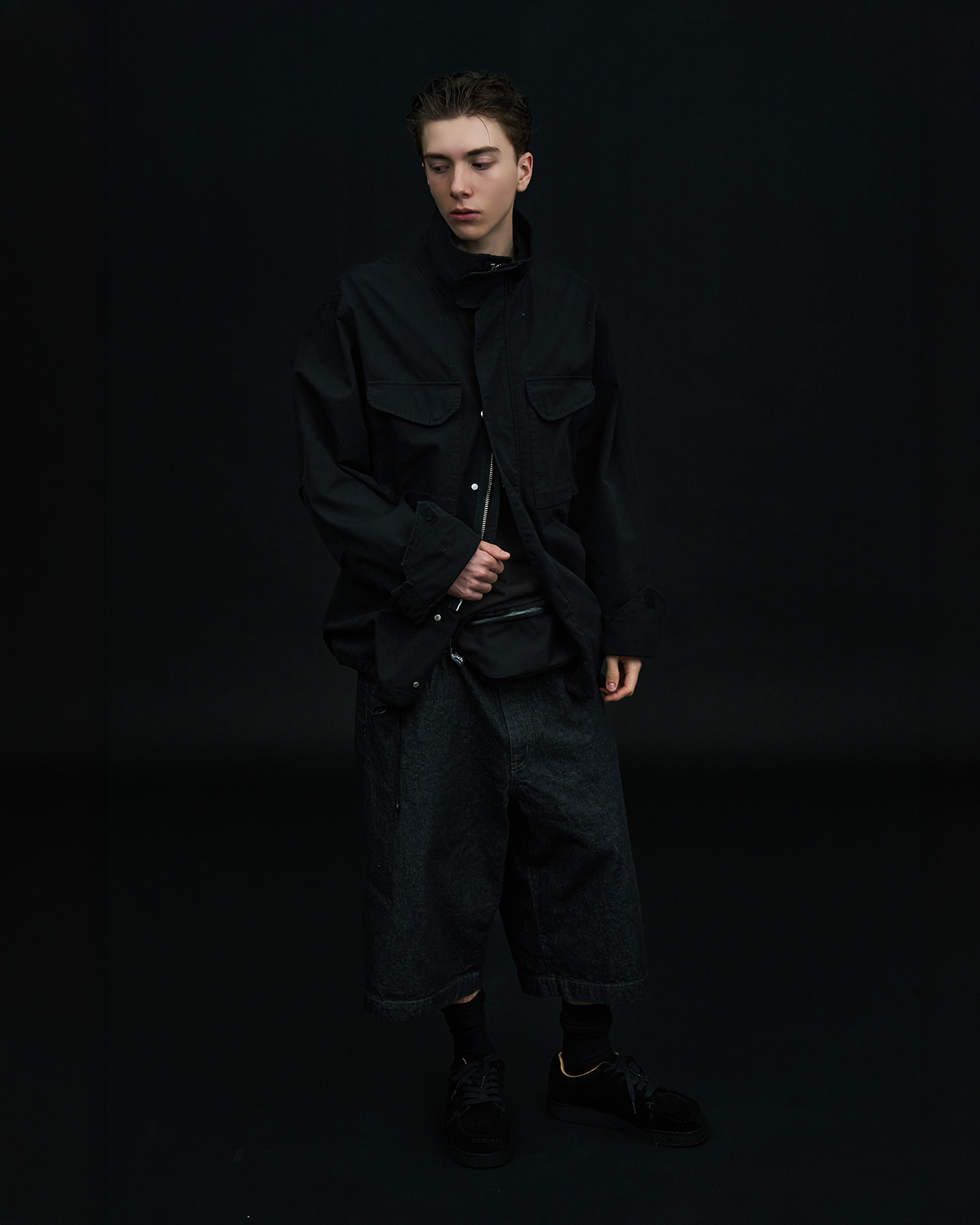 アイコニックなダブルヨークデザインを採用した5ポケットショーツをベースとした本作だが、今季はブラックとオリーブの2色を展開。