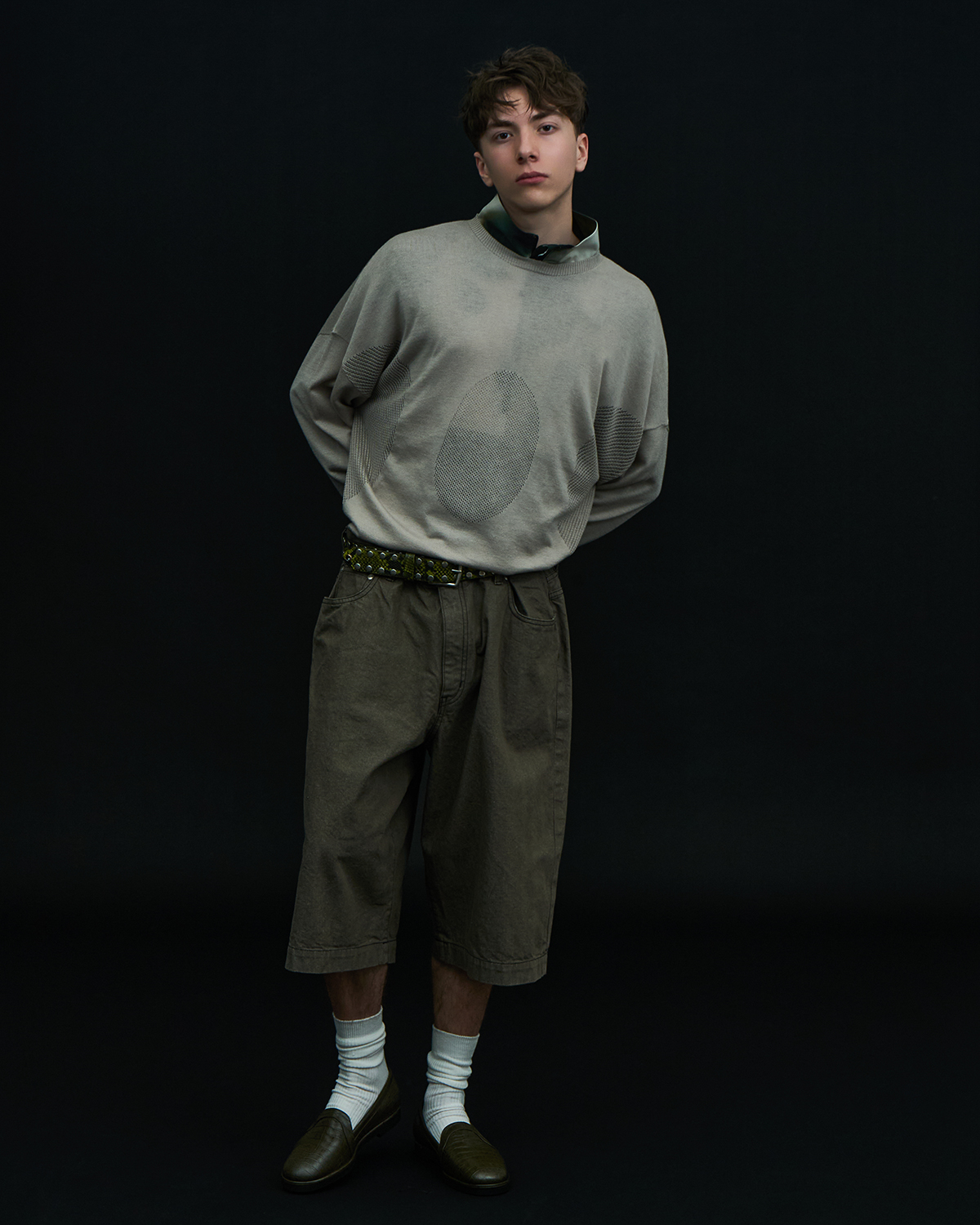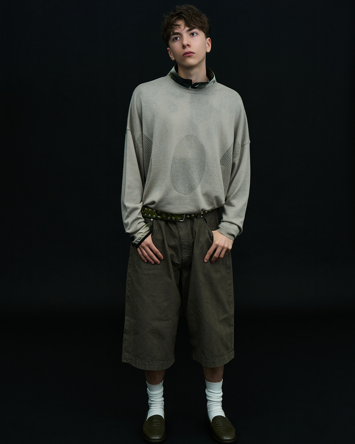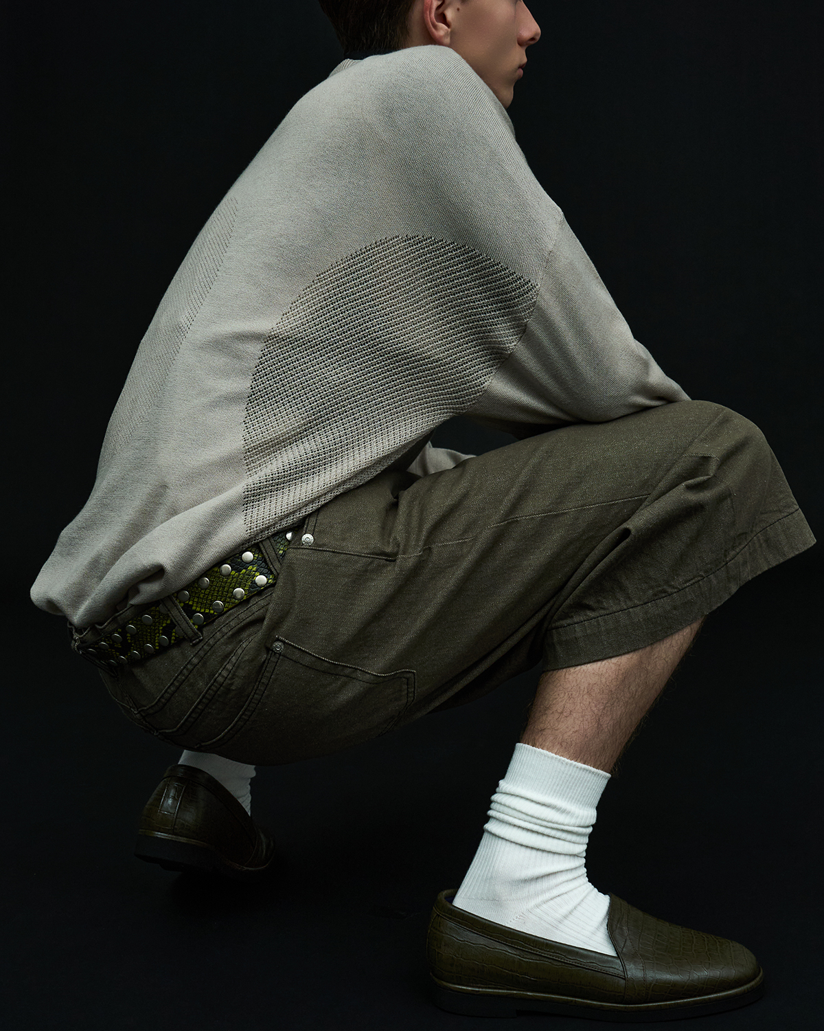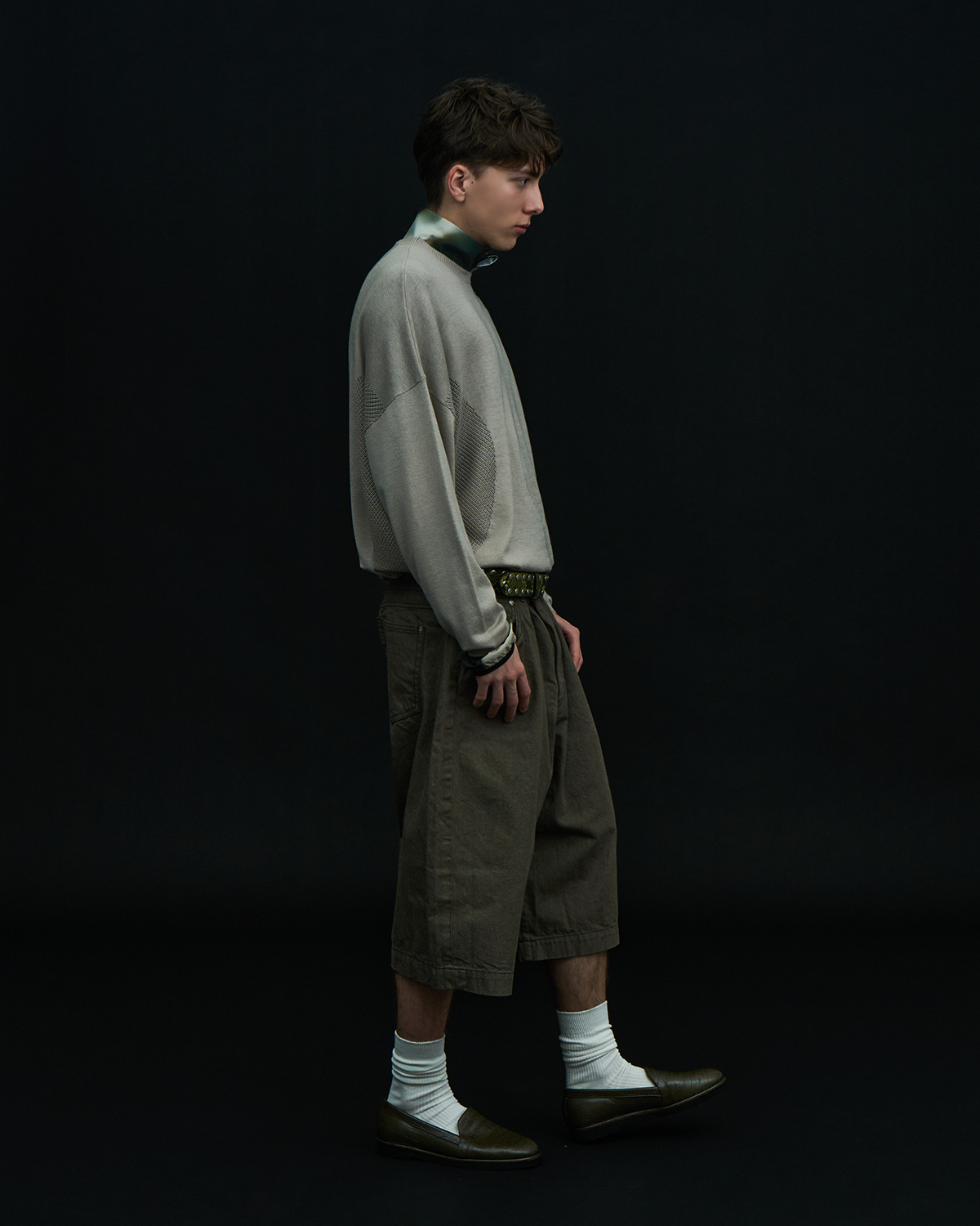 アイコニックなダブルヨークデザインを採用した5ポケットショーツをベースとした本作だが、今季はブラックとオリーブの2色を展開。