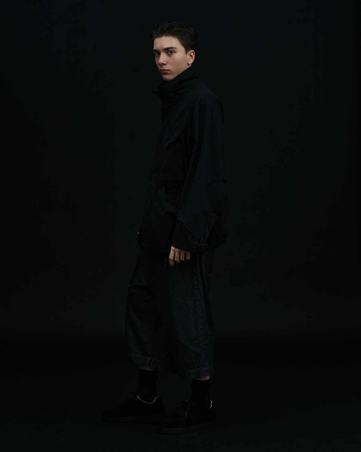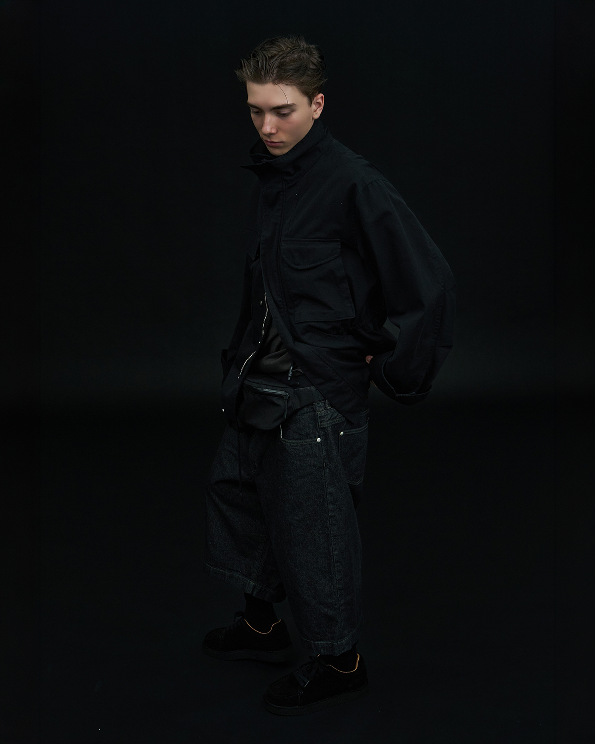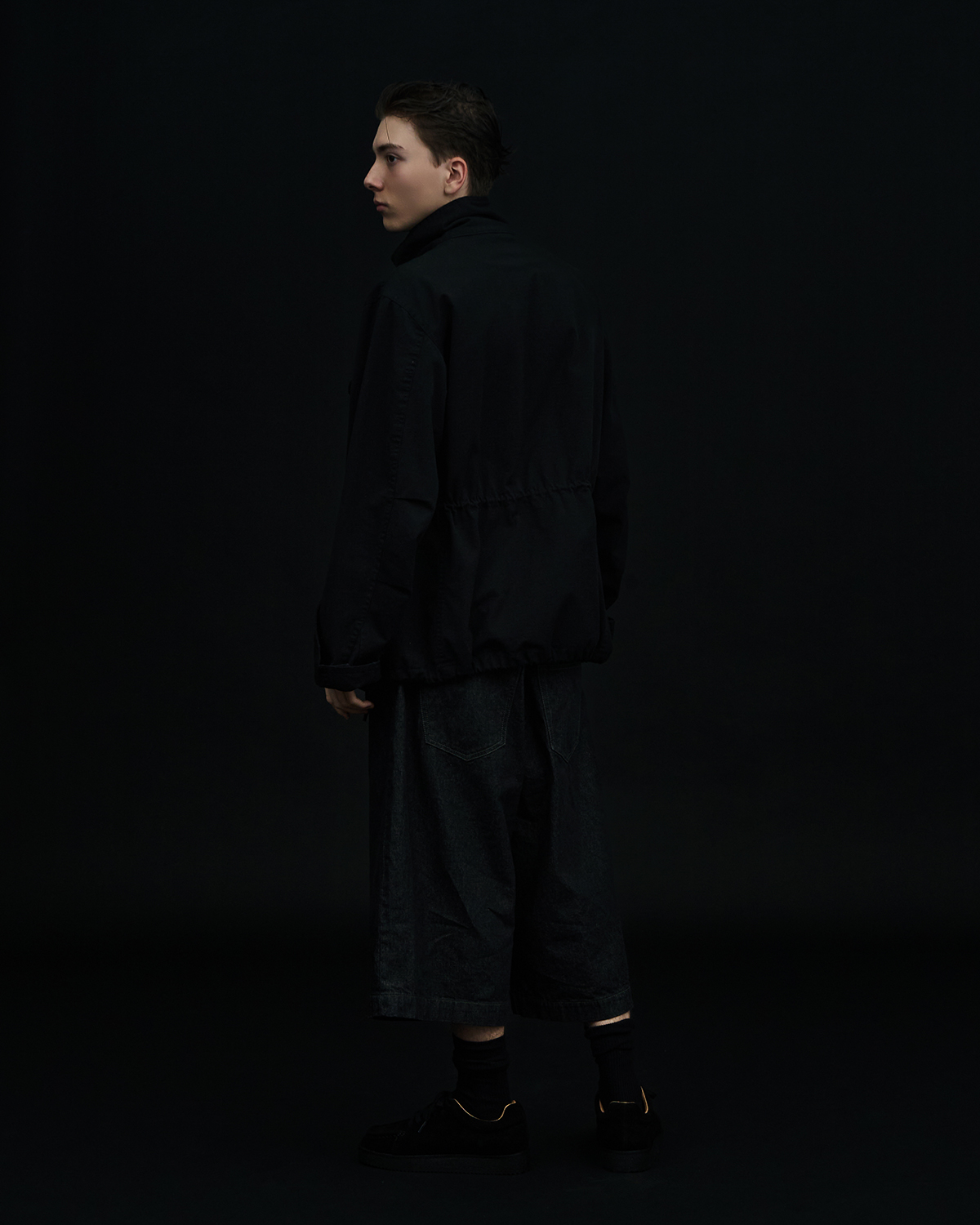 ミニマルな佇まいの中にバックスタイルでさり気ないディテールを効かせた1本は、程よいボリュームと収まりの良さを両立したルーズフィットで、これからの季節、様々なシーンで役立つこと間違いなし。