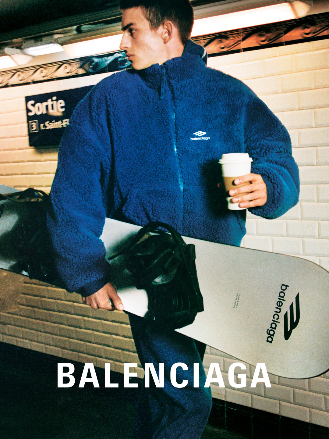 リバーシブルのパファージャケットやジレ、フード付きまたはハイカラーのパーカ、ナイロンやフリース素材のジップアップに加え、限定のミラーエフェクトスノーボードとスキー、衝撃吸収ヘルメット、暖かみのあるスプリットカーフスキンや中綿入りナイロンを用いたオーバーサイズブーツやプラットフォームミュール、バックパック等がラインナップされている。
