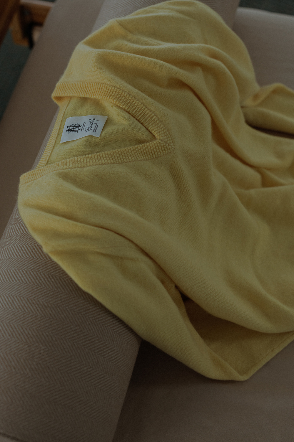 厳選された一等級のカシミヤを100%使用し、滑らかな肌ざわりとナチュラルな光沢を併せ持つ上質な素材で仕立てた本作。