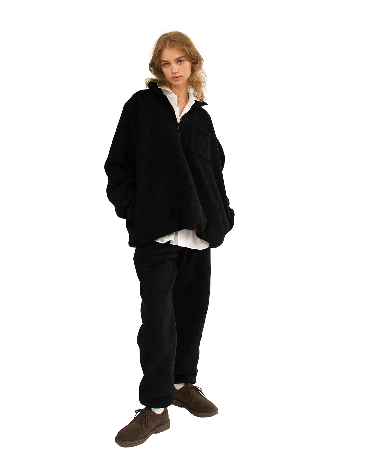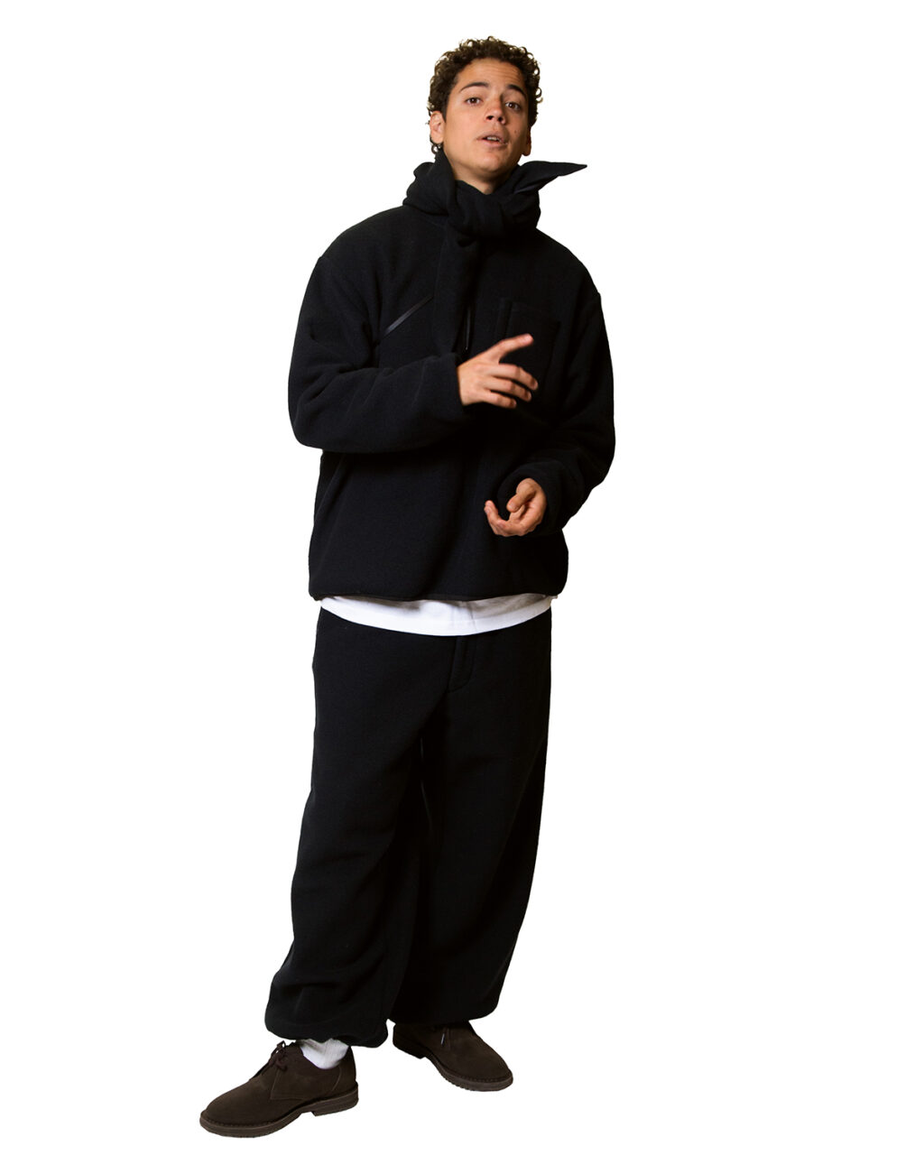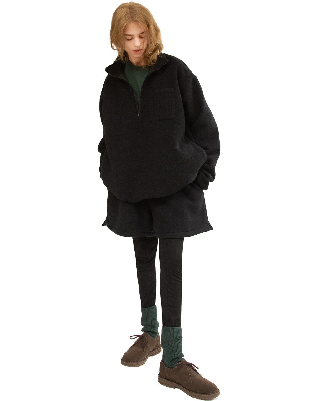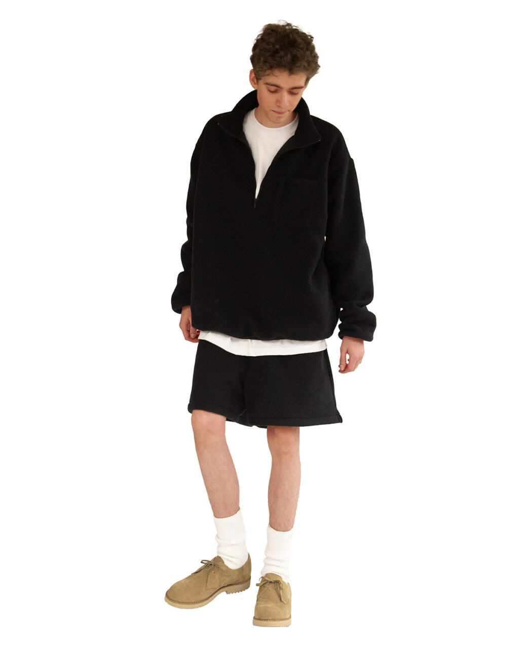 イタリア・プラトのCALAMAI社による、リサイクルポリエステルとウールを混紡したフリースは、防臭性にも優れたウォッシャブル仕様。