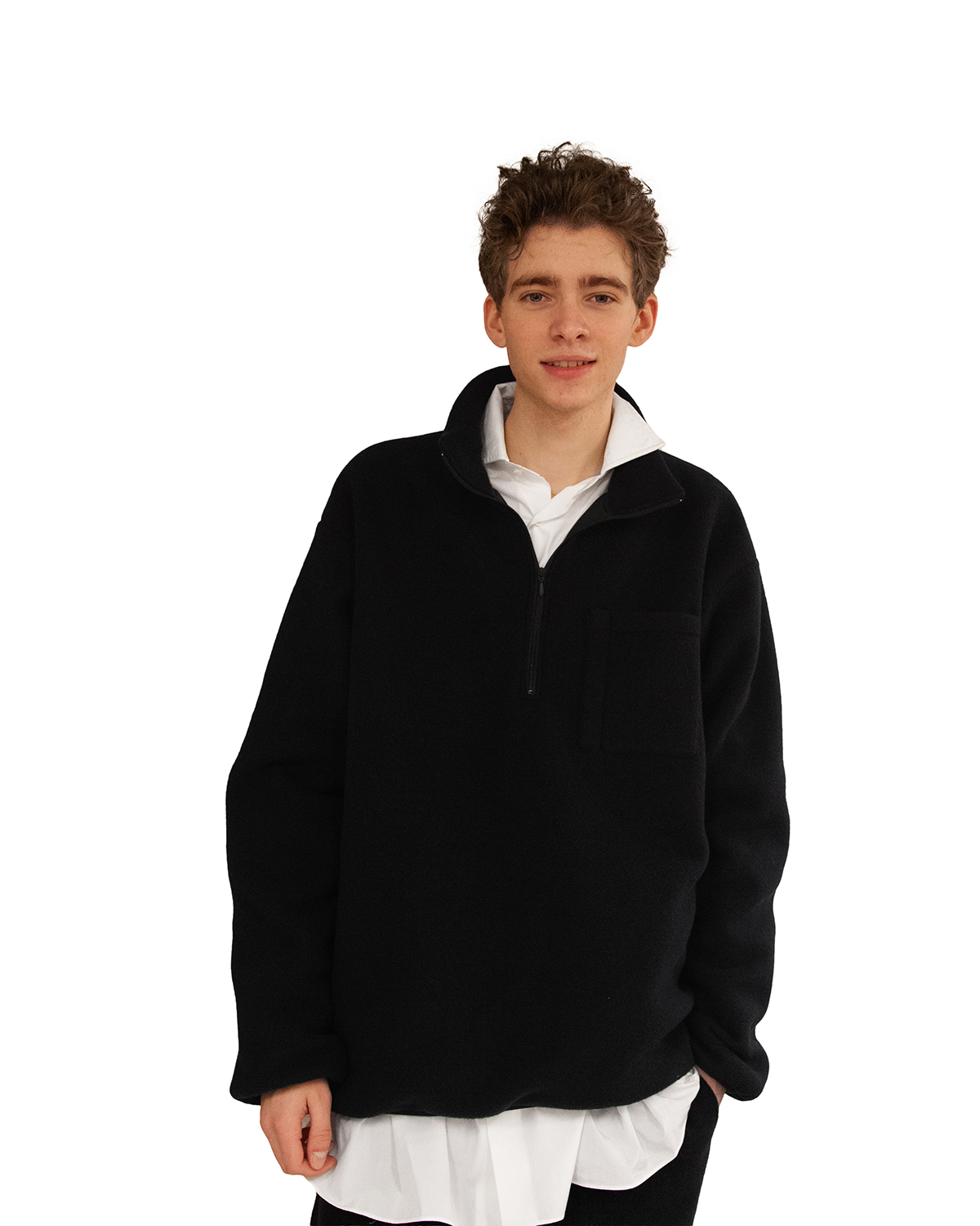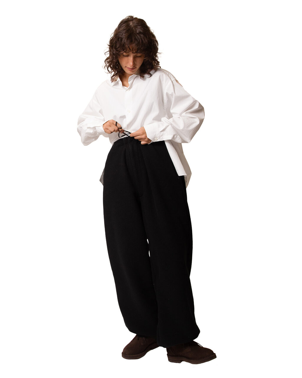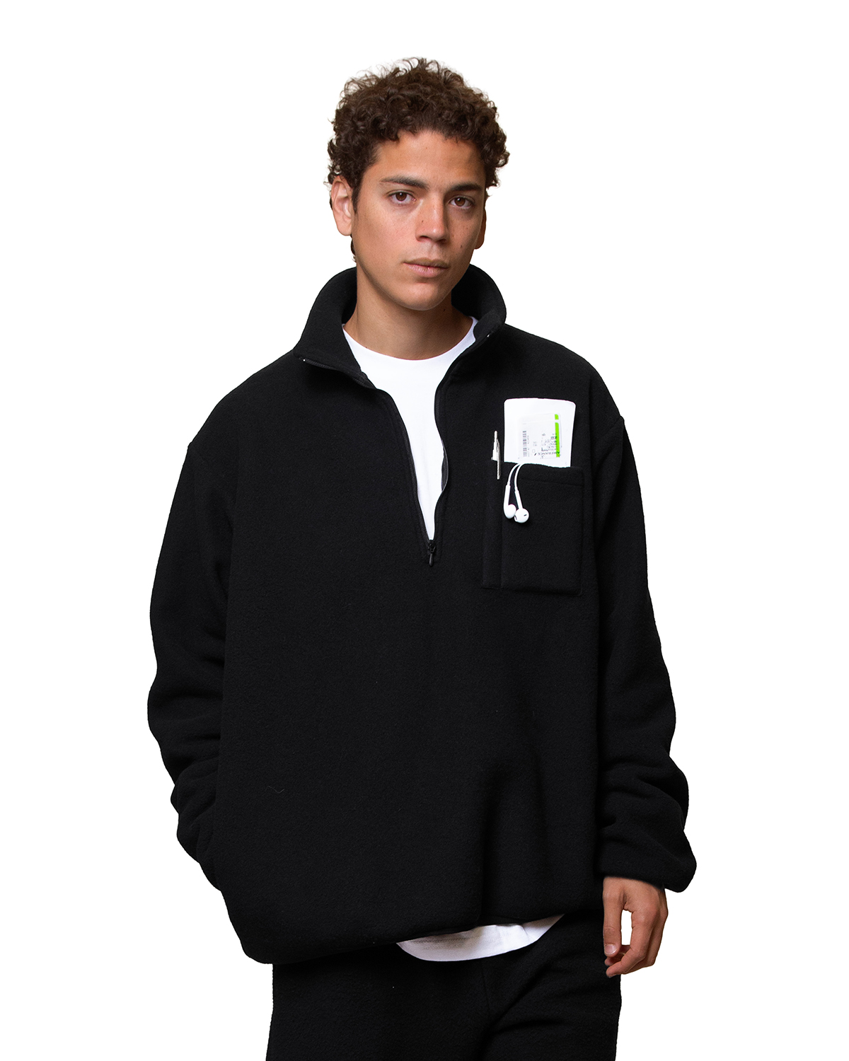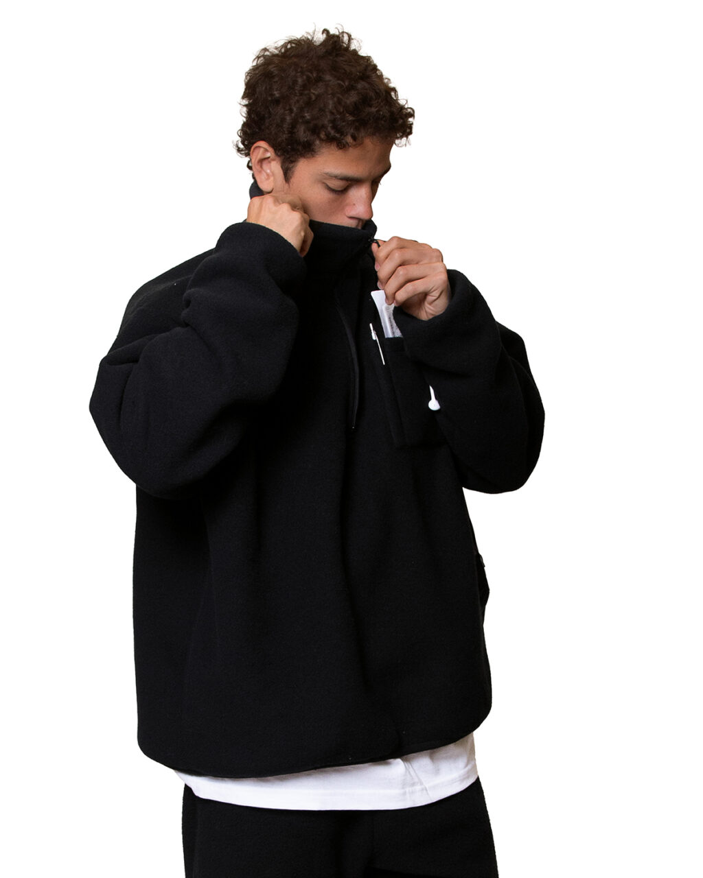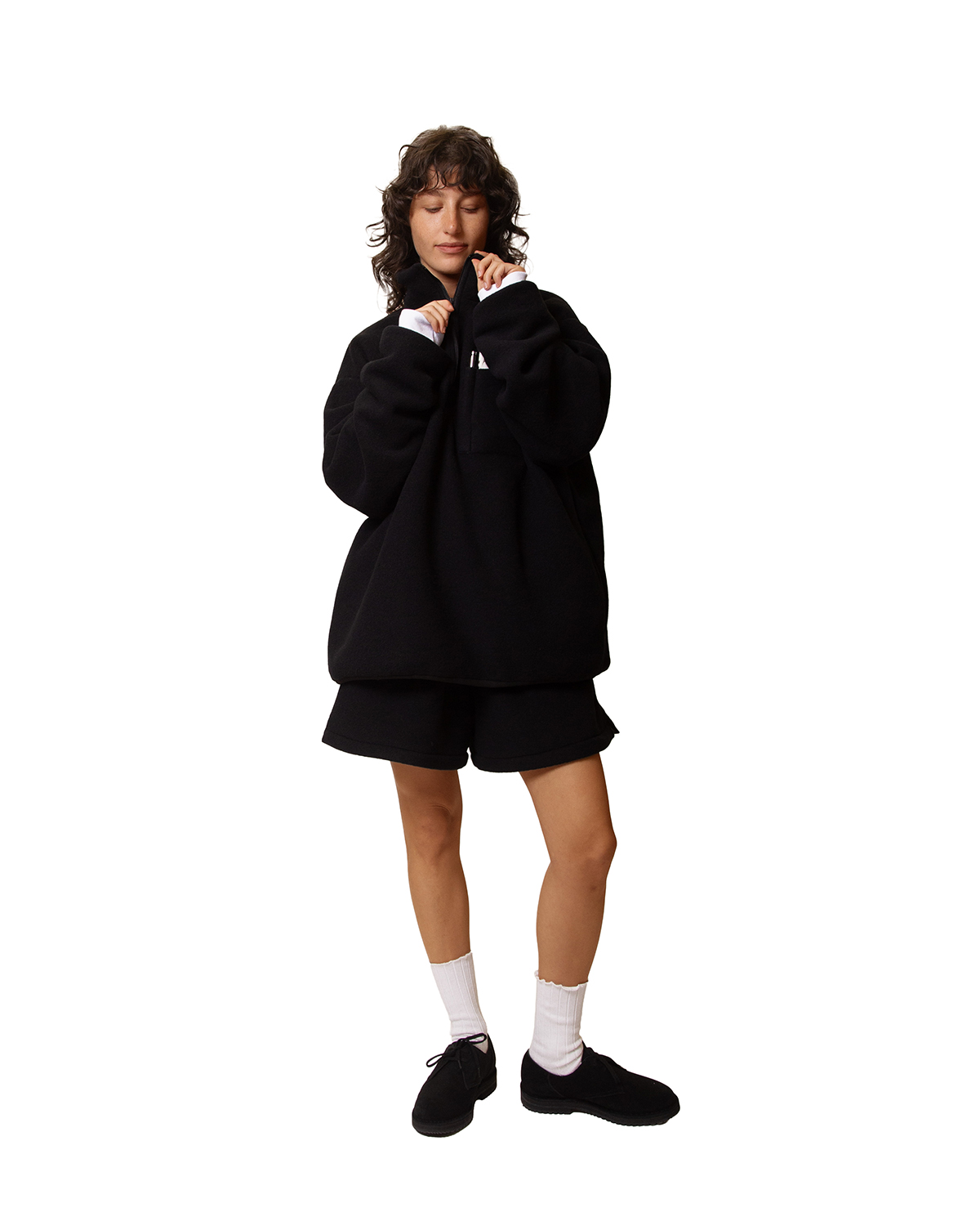 イタリア・プラトのCALAMAI社による、リサイクルポリエステルとウールを混紡したフリースは、防臭性にも優れたウォッシャブル仕様。