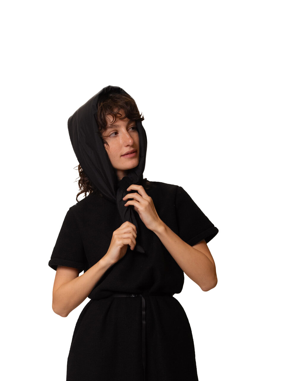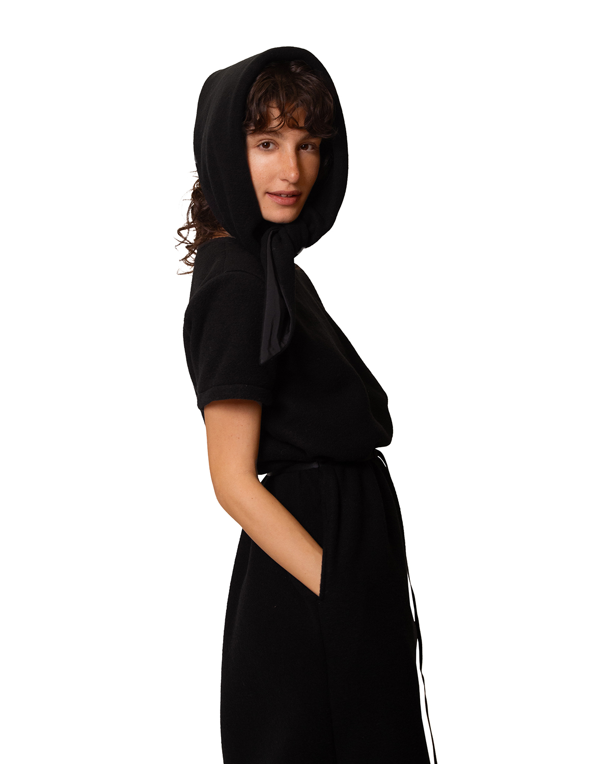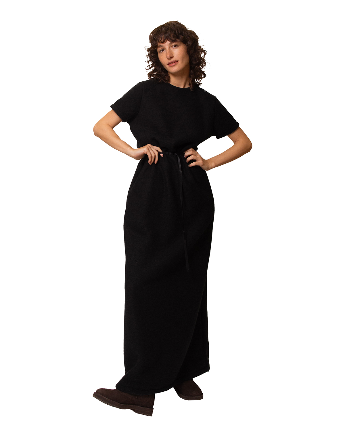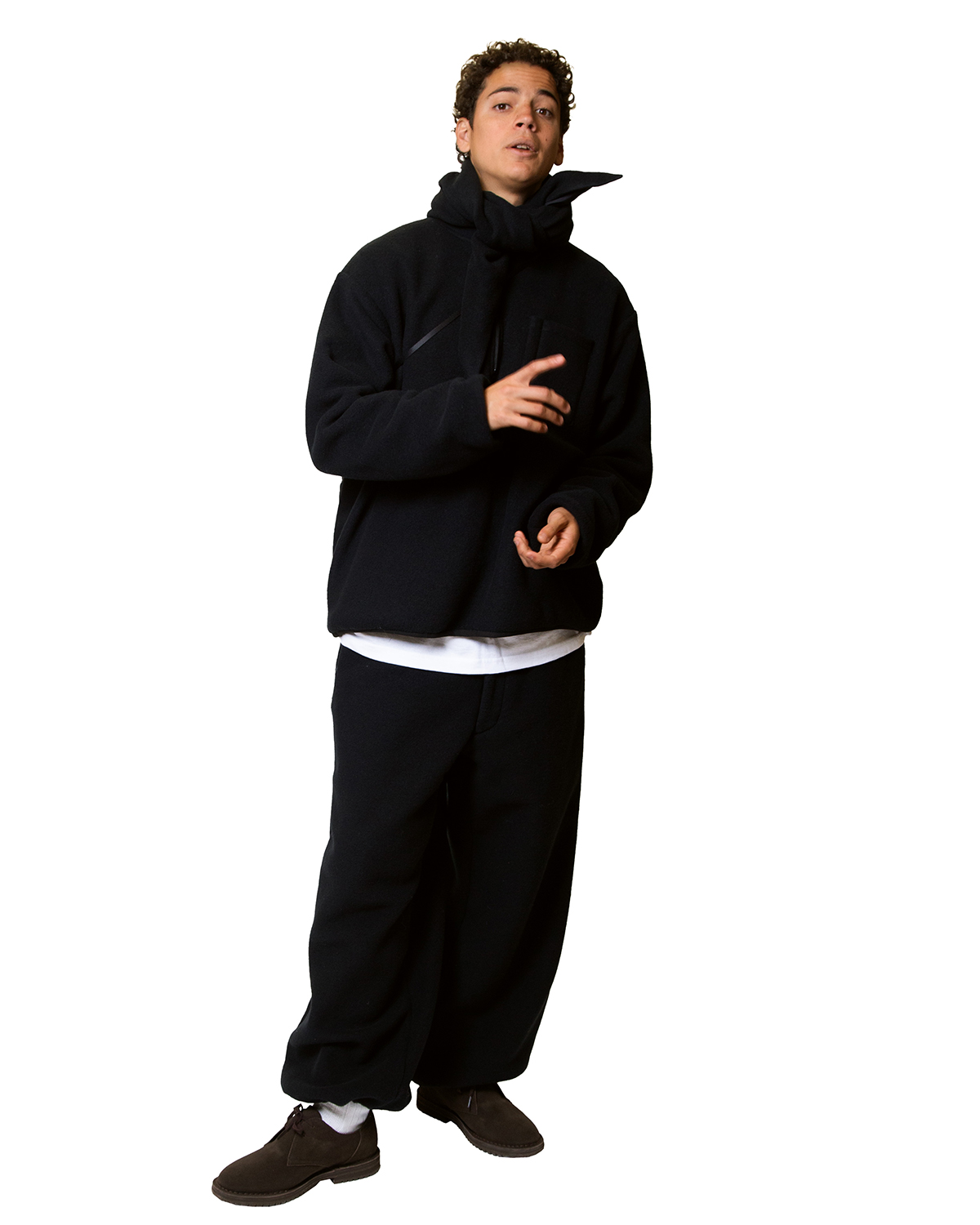 ハーフジッププルオーバー、シンプルなマキシドレス、オーセンティックなスウェット型やユニークなフォルムのパラシュート型のパンツ、スカーフなど、全6型が登場している。