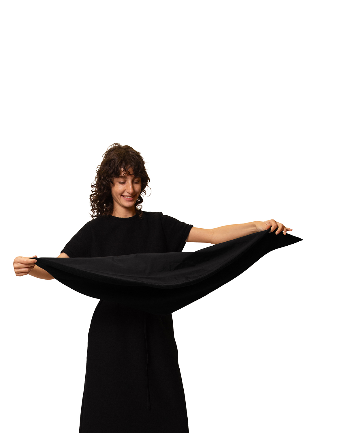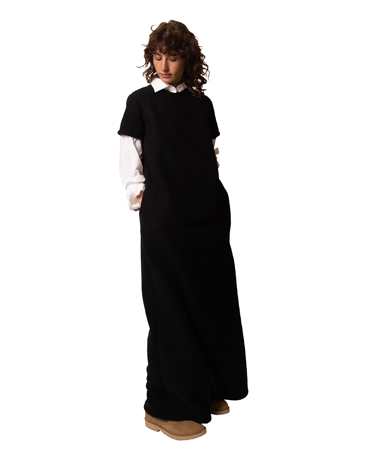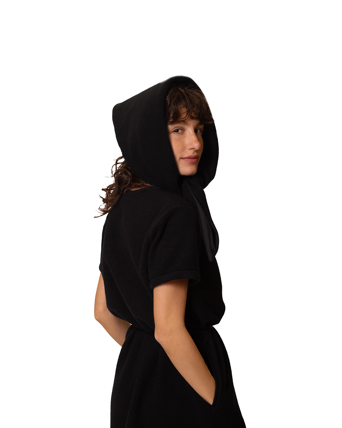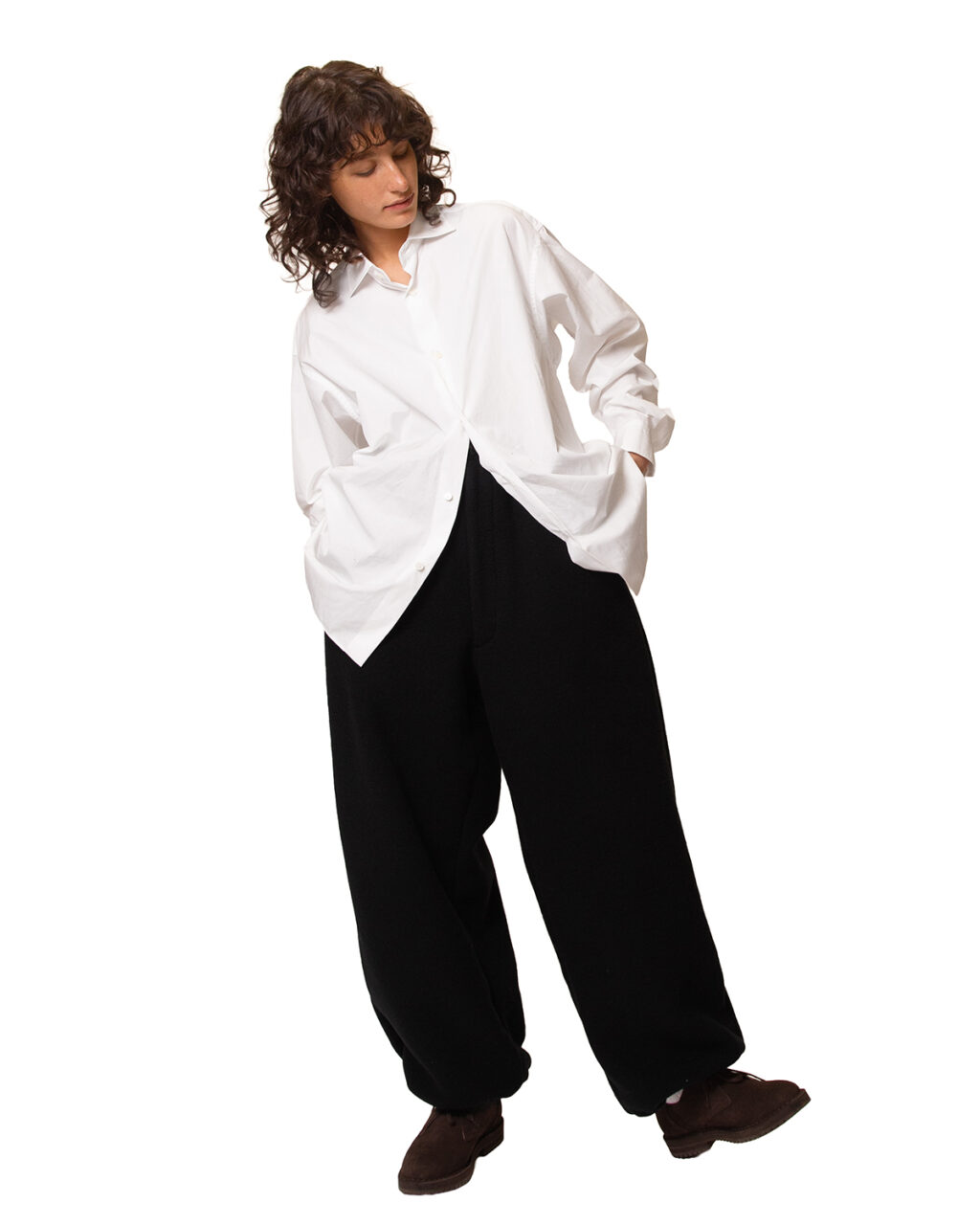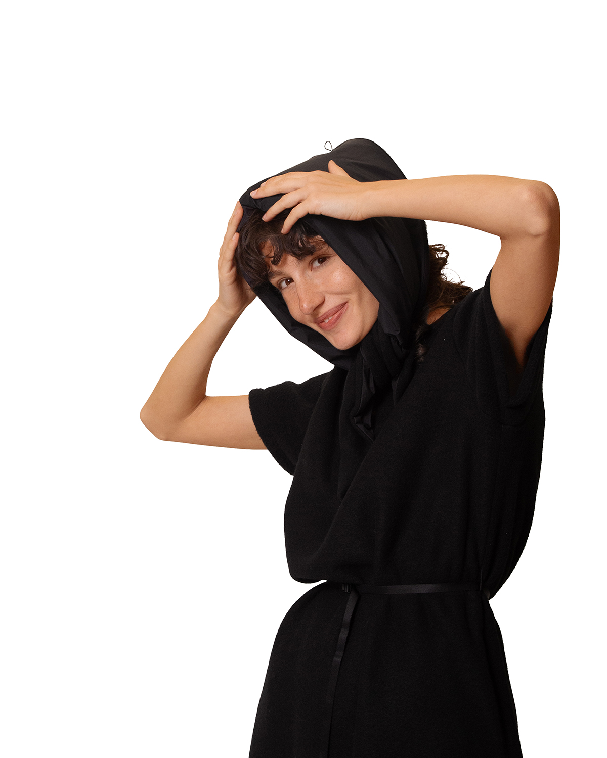 ハーフジッププルオーバー、シンプルなマキシドレス、オーセンティックなスウェット型やユニークなフォルムのパラシュート型のパンツ、スカーフなど、全6型が登場している。