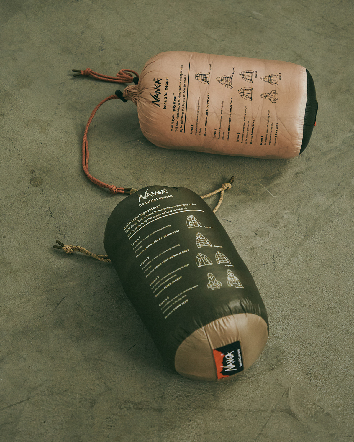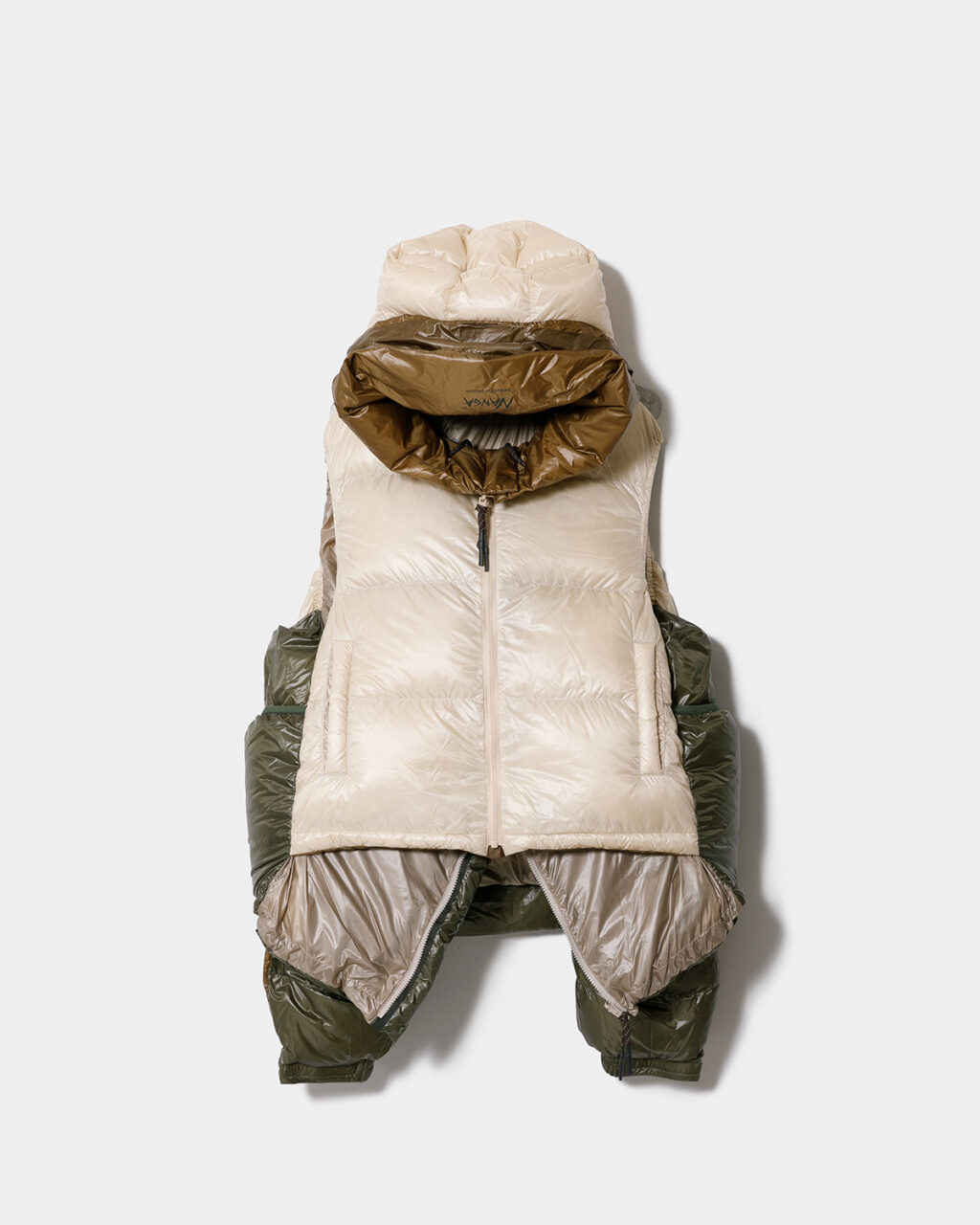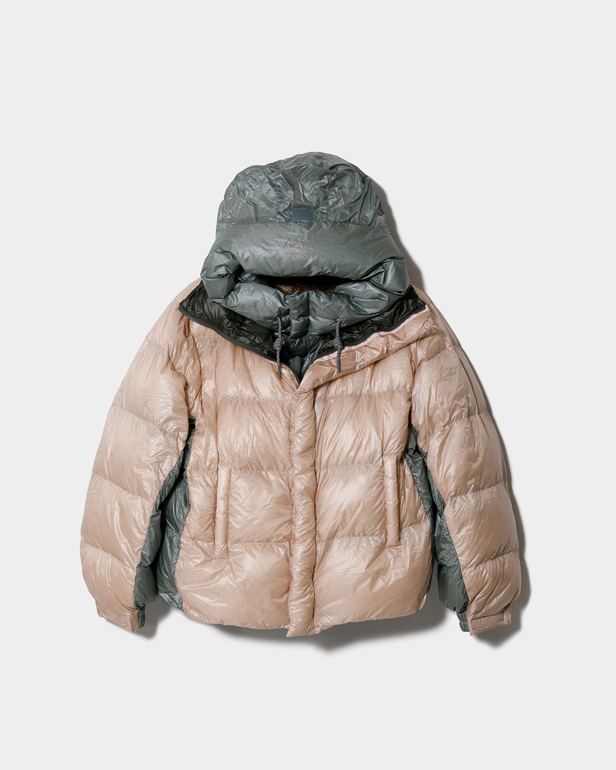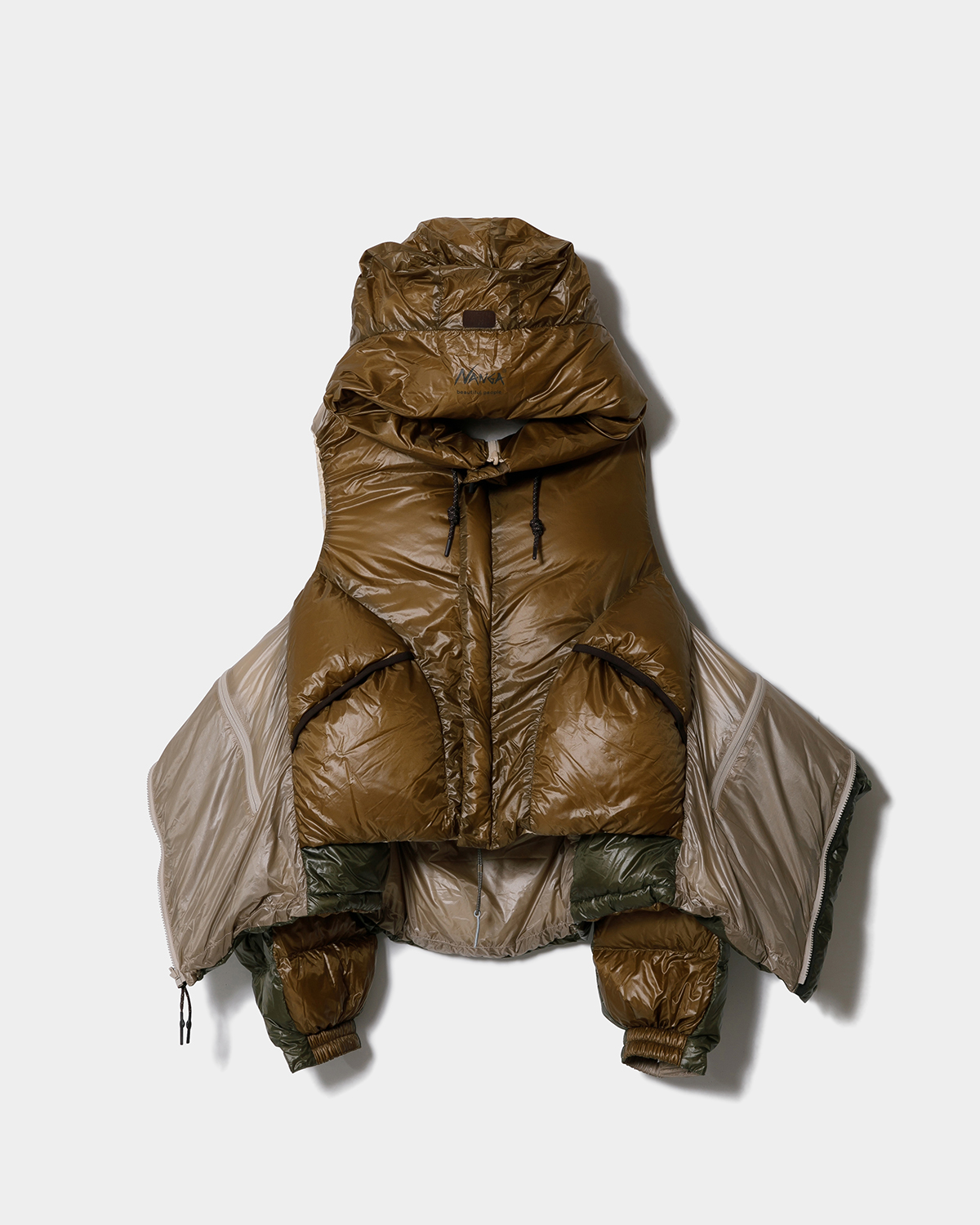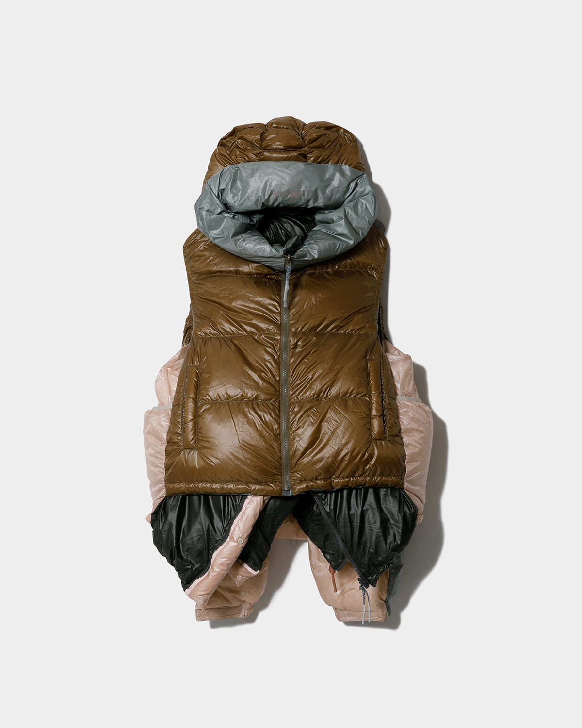 ブルゾンとベスト、2つのアイテムを構造的に繋げるbeautiful people独自のマルチレイヤリングにより、朝から夜、屋外から屋内と、刻一刻と変わる気温に合わせ、自在に体感温度を調整出来る新感覚のダウンウェアを作り上げた。