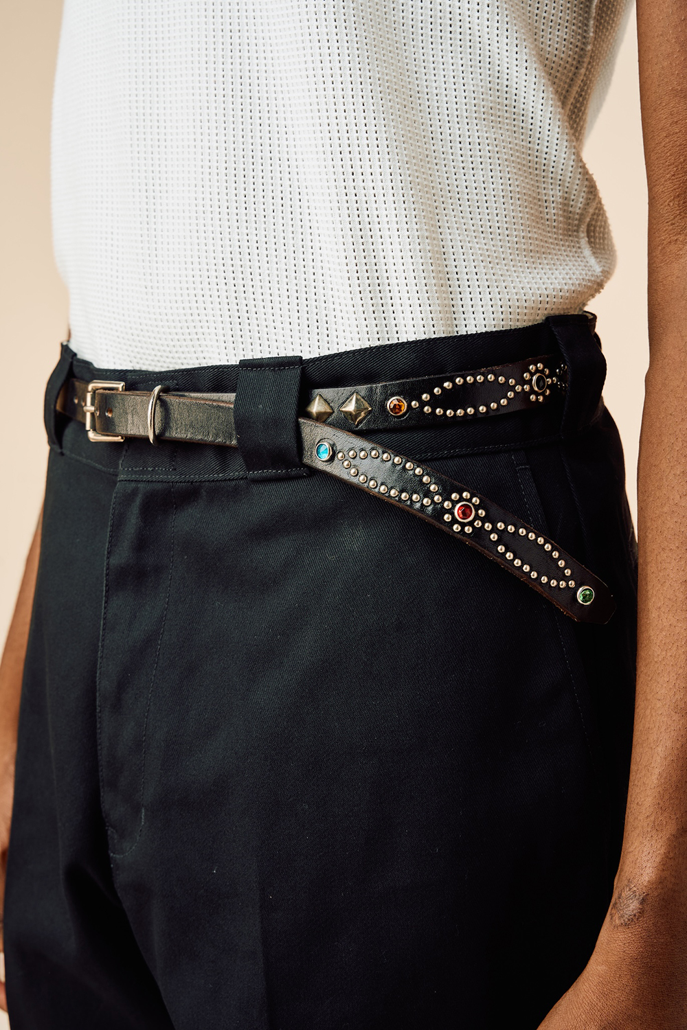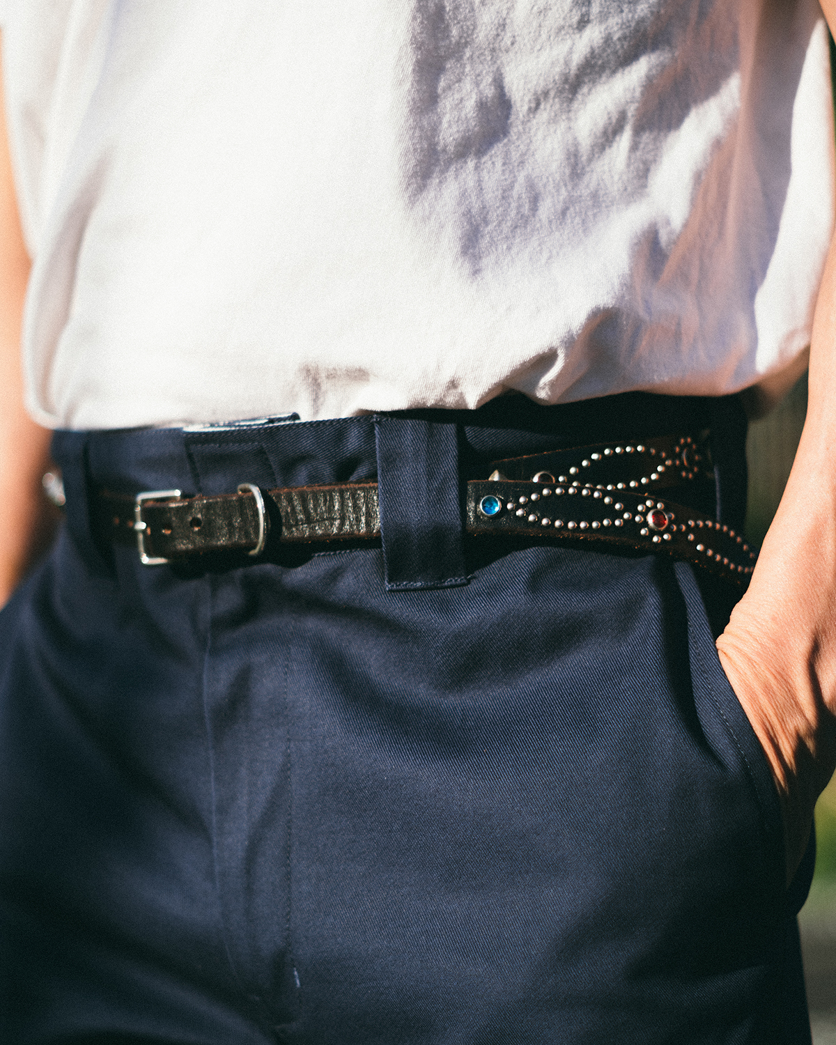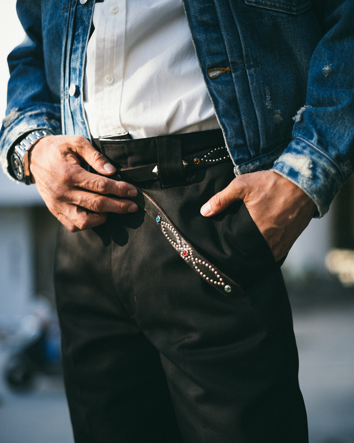 久々のタッグとなる両者だが、今回はピラミッドスタッズとフェイクストーンが交差するHTCならではのデザインのベルトを製作。