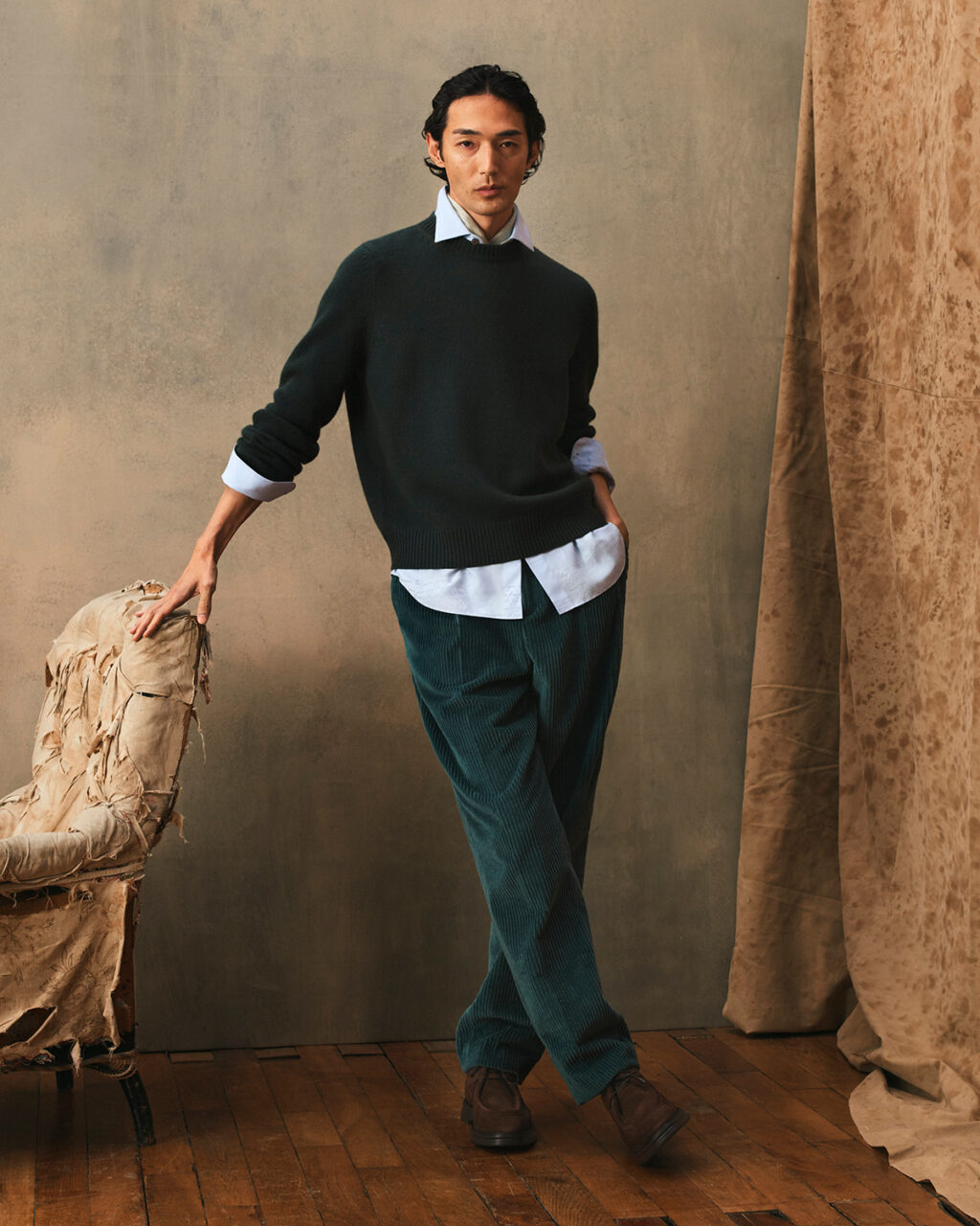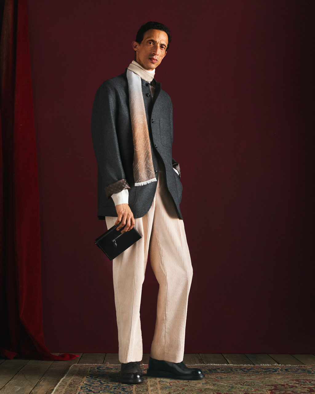 静かな自信と自然とにじみ出る風格を備え、流動的で多様、既存の枠に収まりきらない男性のためのスタイルとして提案され、シルエットの軽やかさと同様に、日々をしなやかに過ごす男性像を描いた。