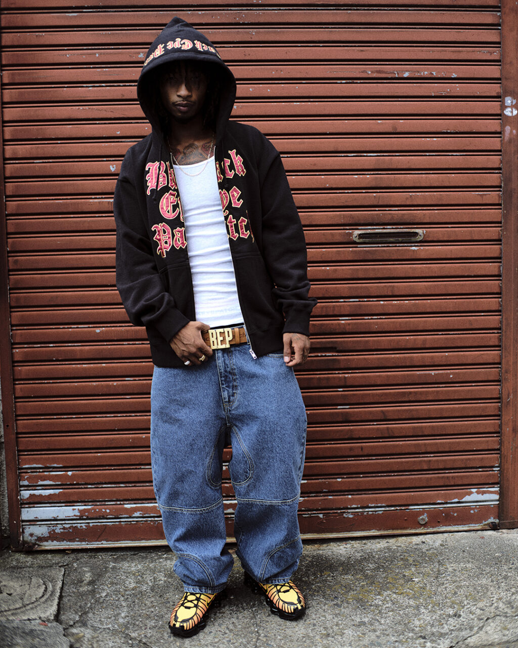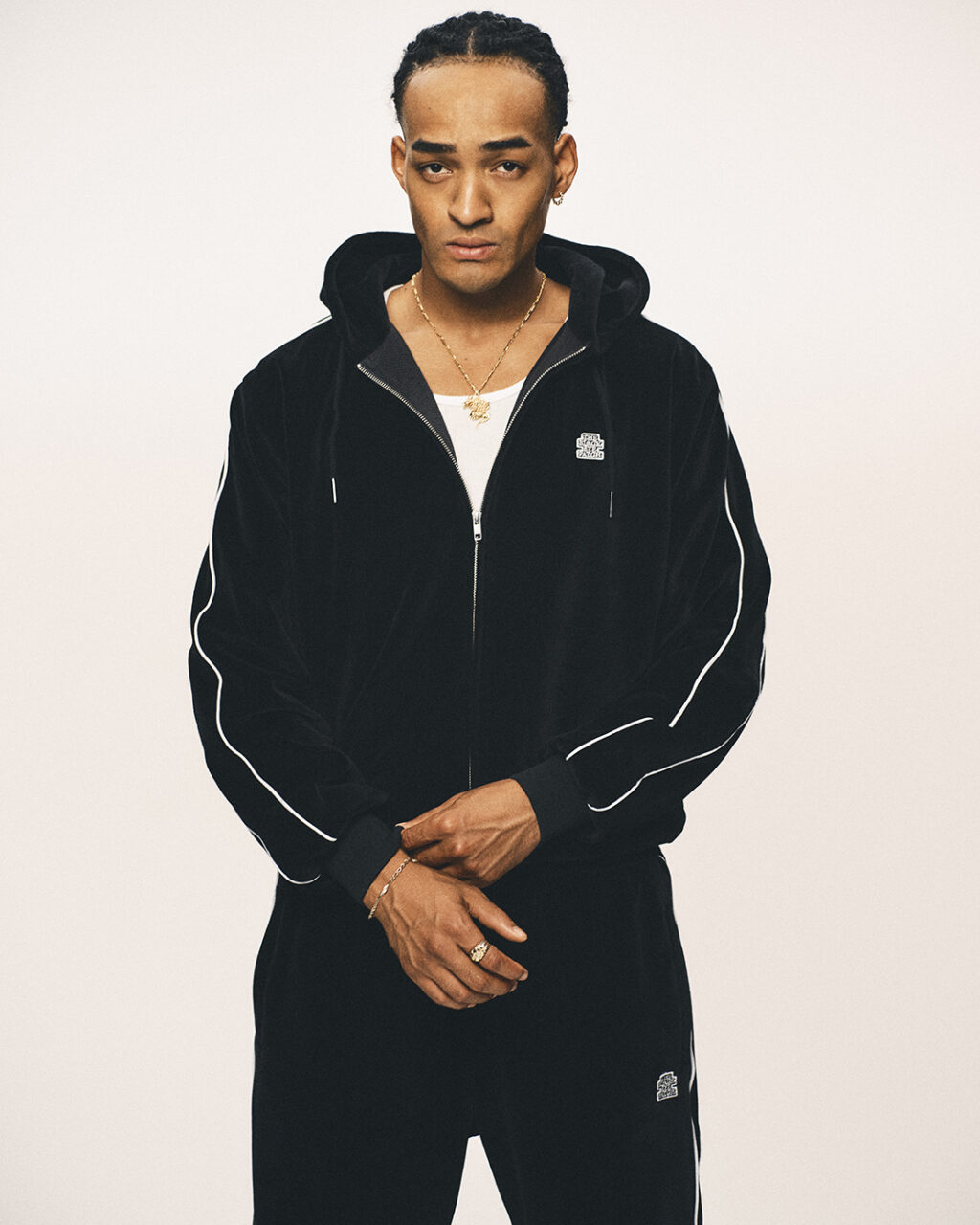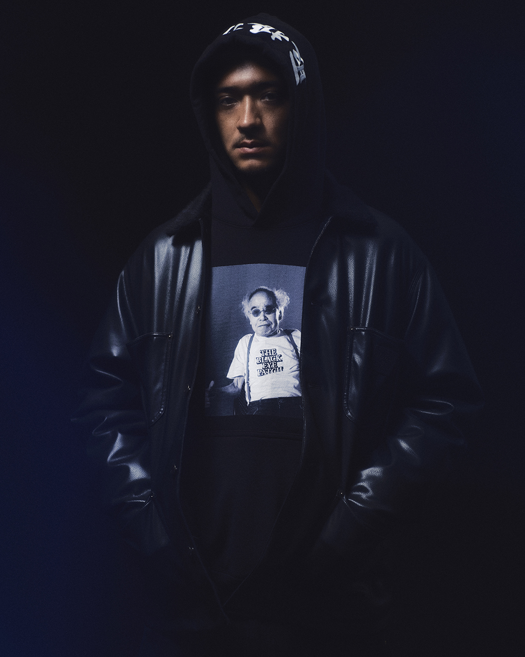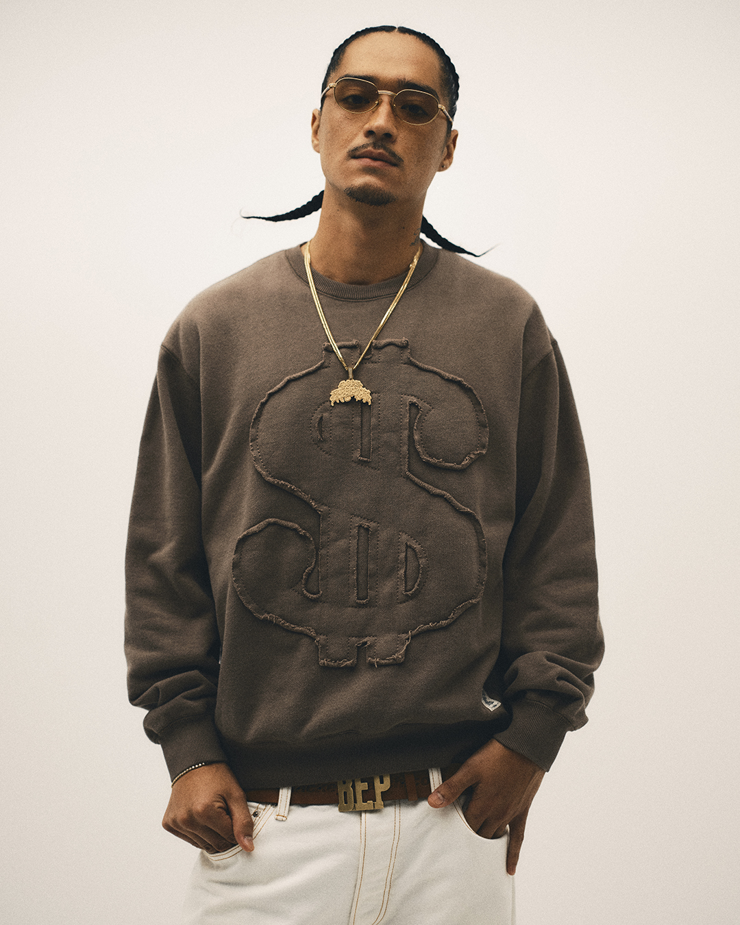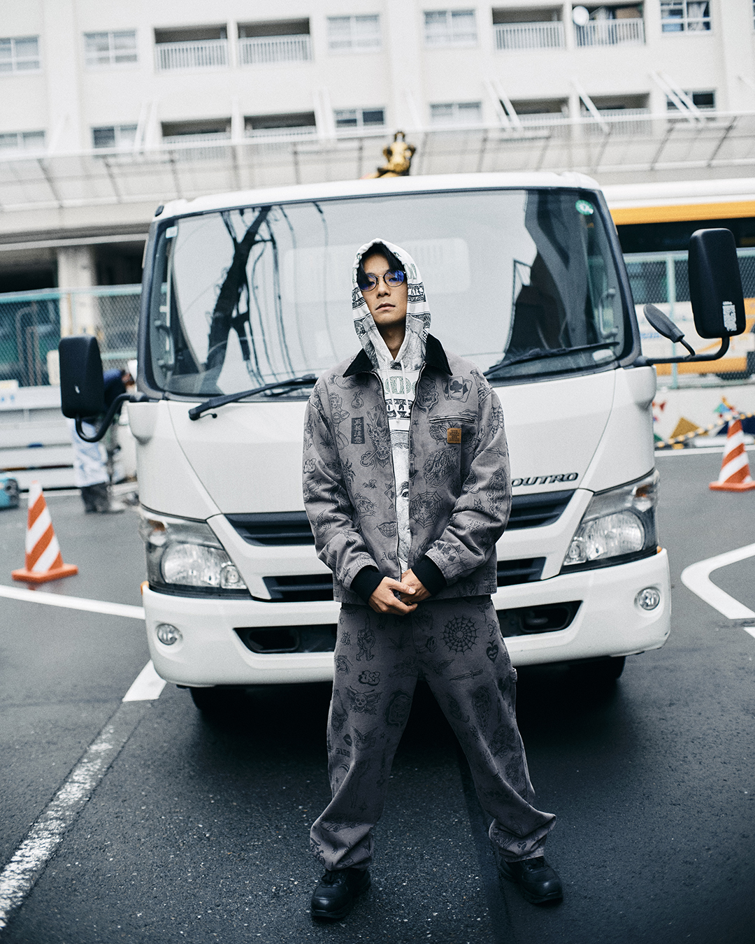 ブランドオリジナルのキャラクター・OG BOYをバックに掲げたジャケットやダウンジャケット、MA-1、リアルツリーカモやレオパード柄の総柄トップス、艶感のあるジャージーのセットアップなどもラインナップされている。