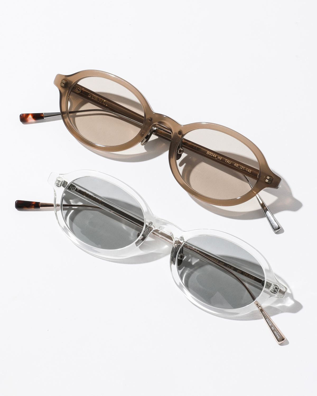 フレームはCLEAR、TAUPEの2色で、それぞれにあったカラーレンズをチョイス。