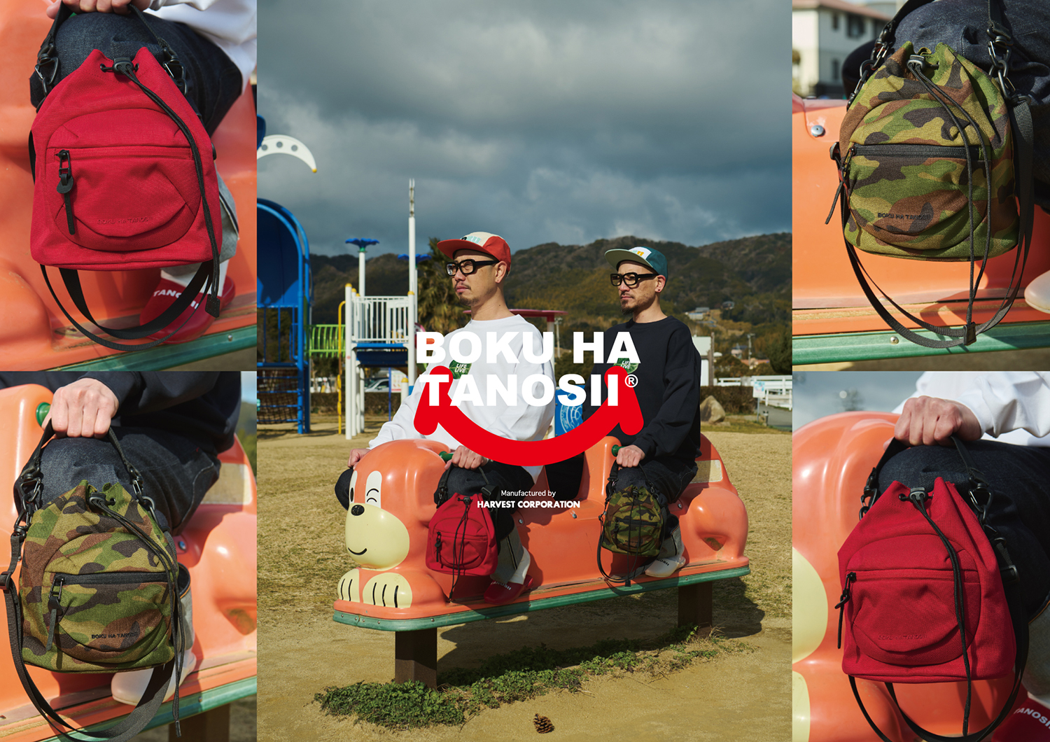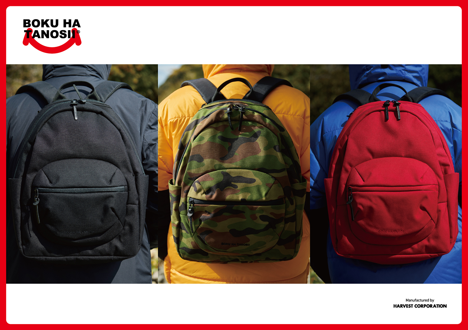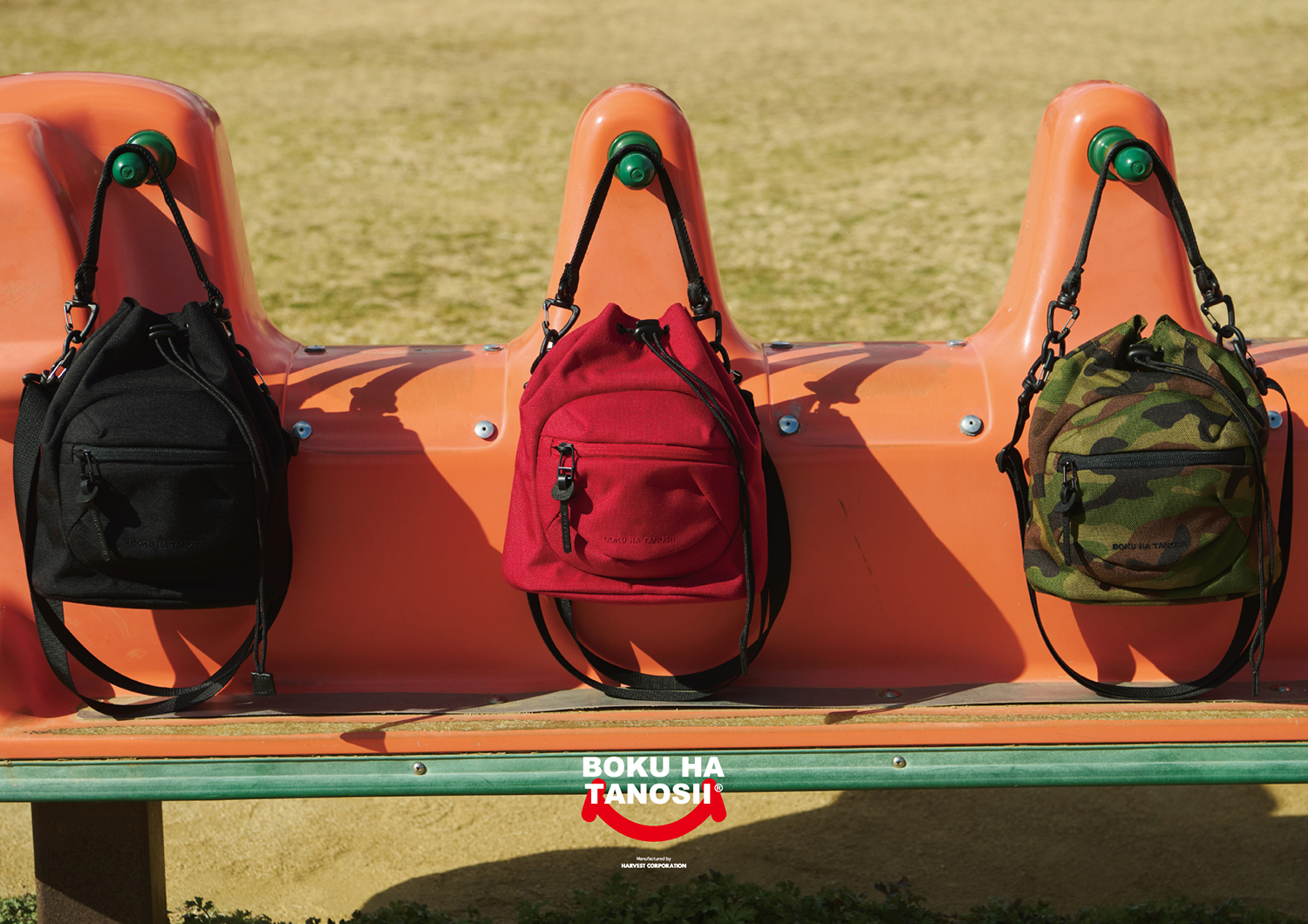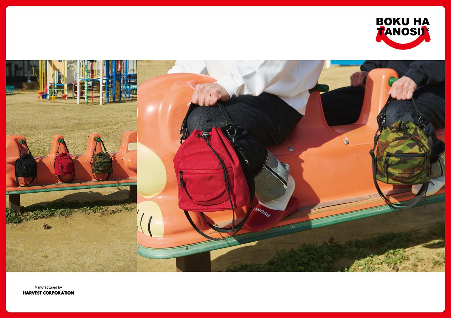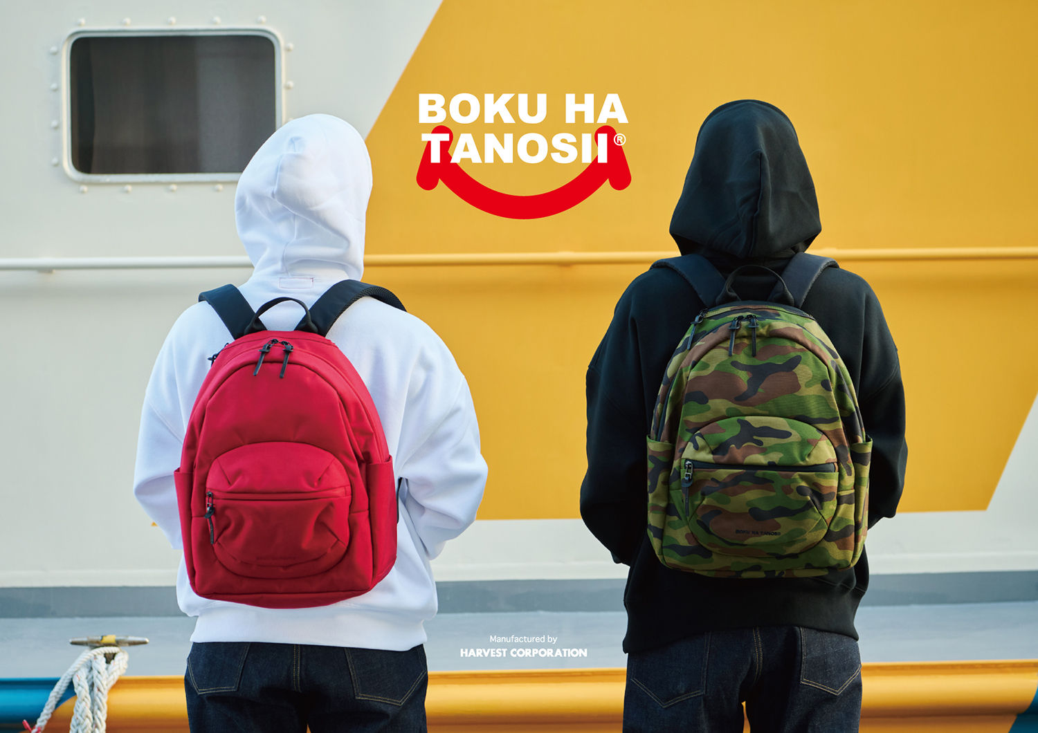 大阪の老舗バッグメーカー・HARVEST(ハーヴェスト)に製作を依頼した今回のバッグコレクションは、にっこり笑った”スマイル”を表現したフロントポケットのデザインが大きな特徴に。