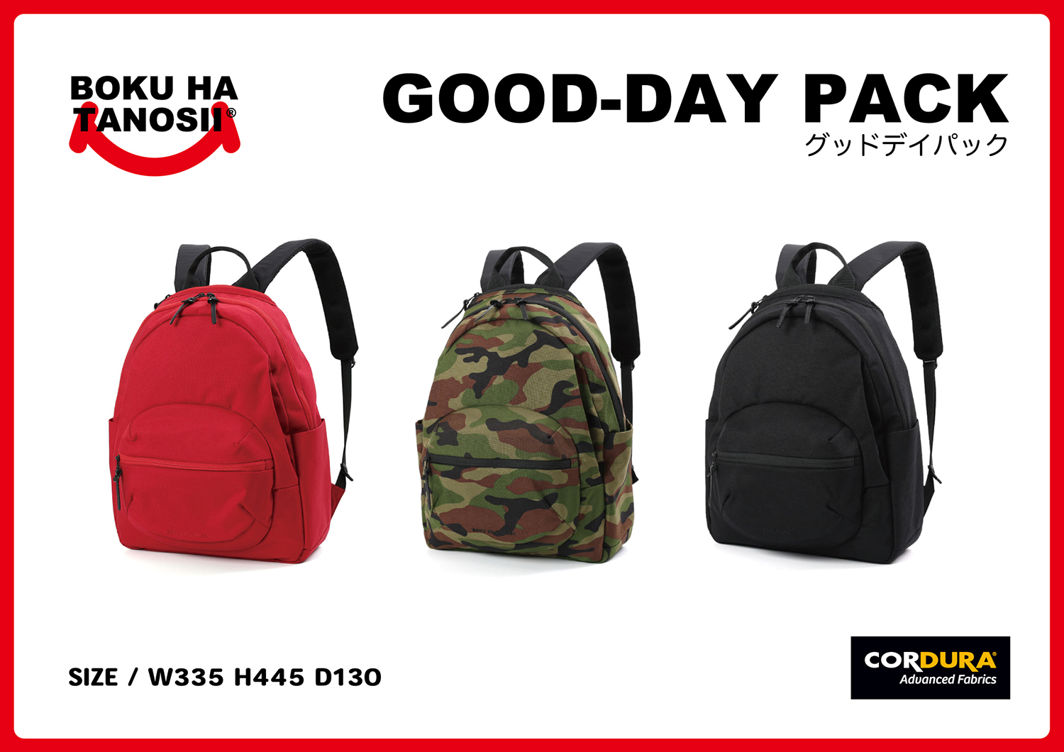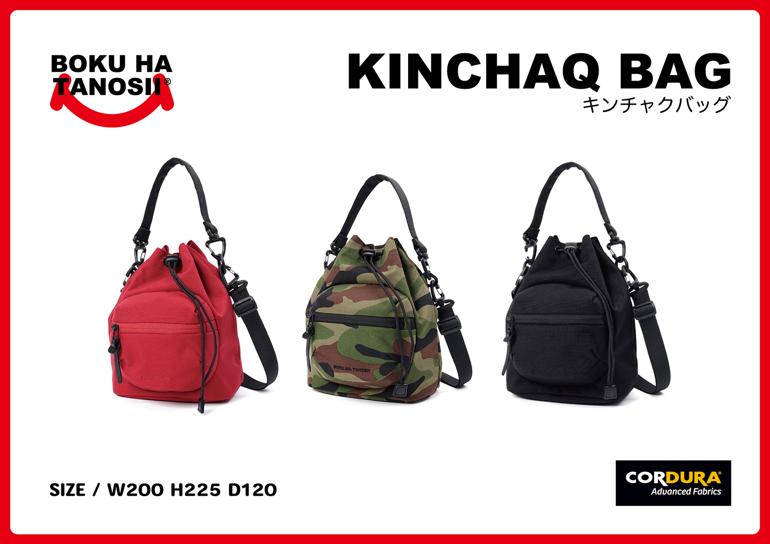 デイパック、ショルダー、ボディバッグ、そして巾着バッグという全4型がラインナップされている。