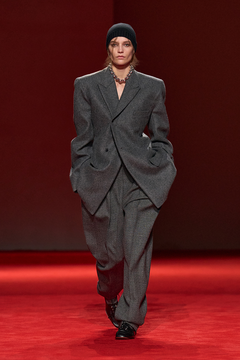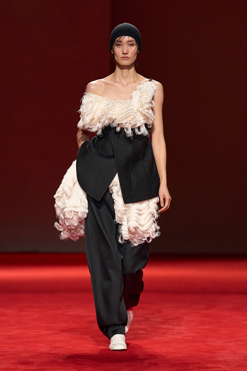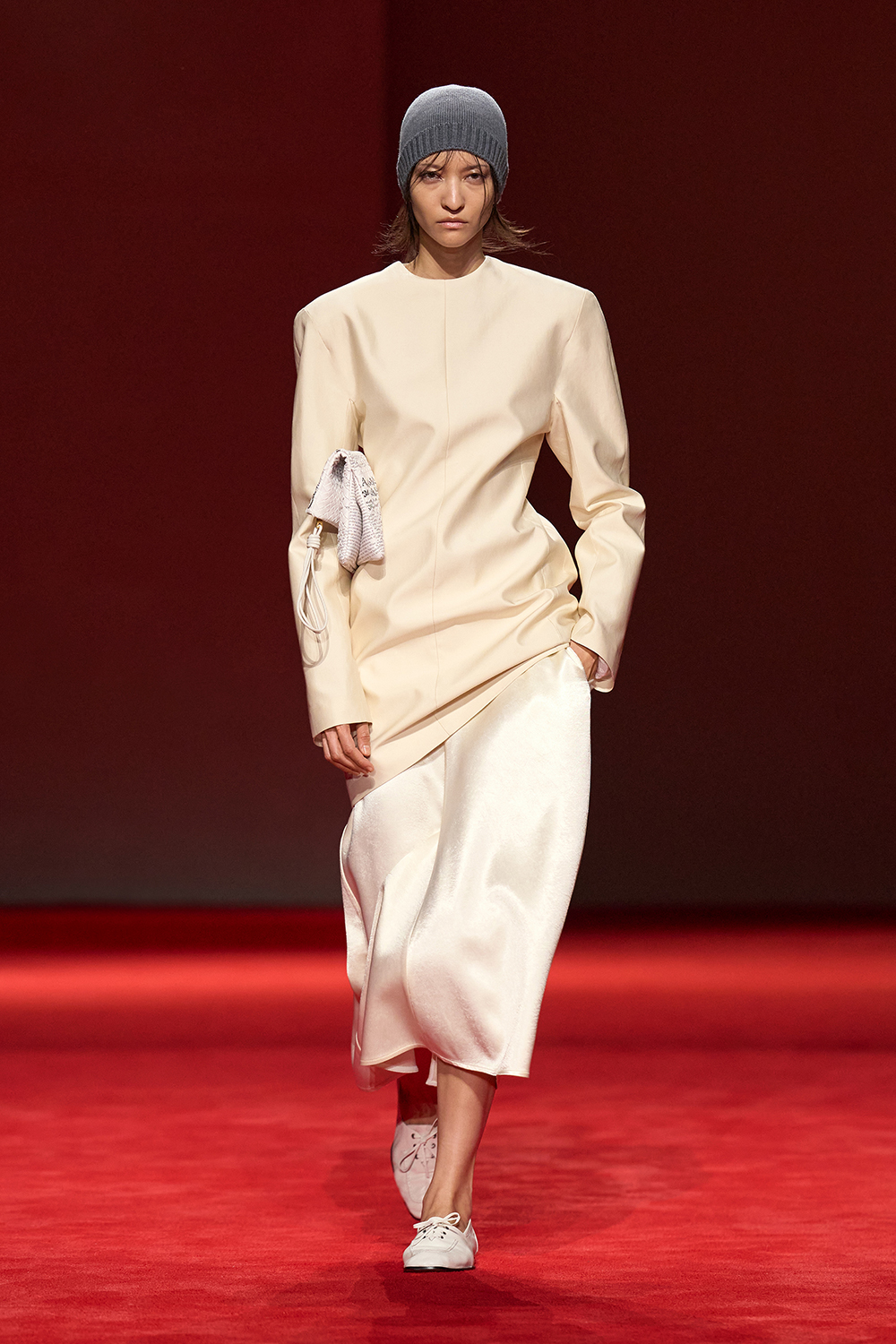 構築的でありながらも、そこに柔らかさを加えた今季のコレクションでは、親密さと、身体を守るという感覚の両方を同時に追求。