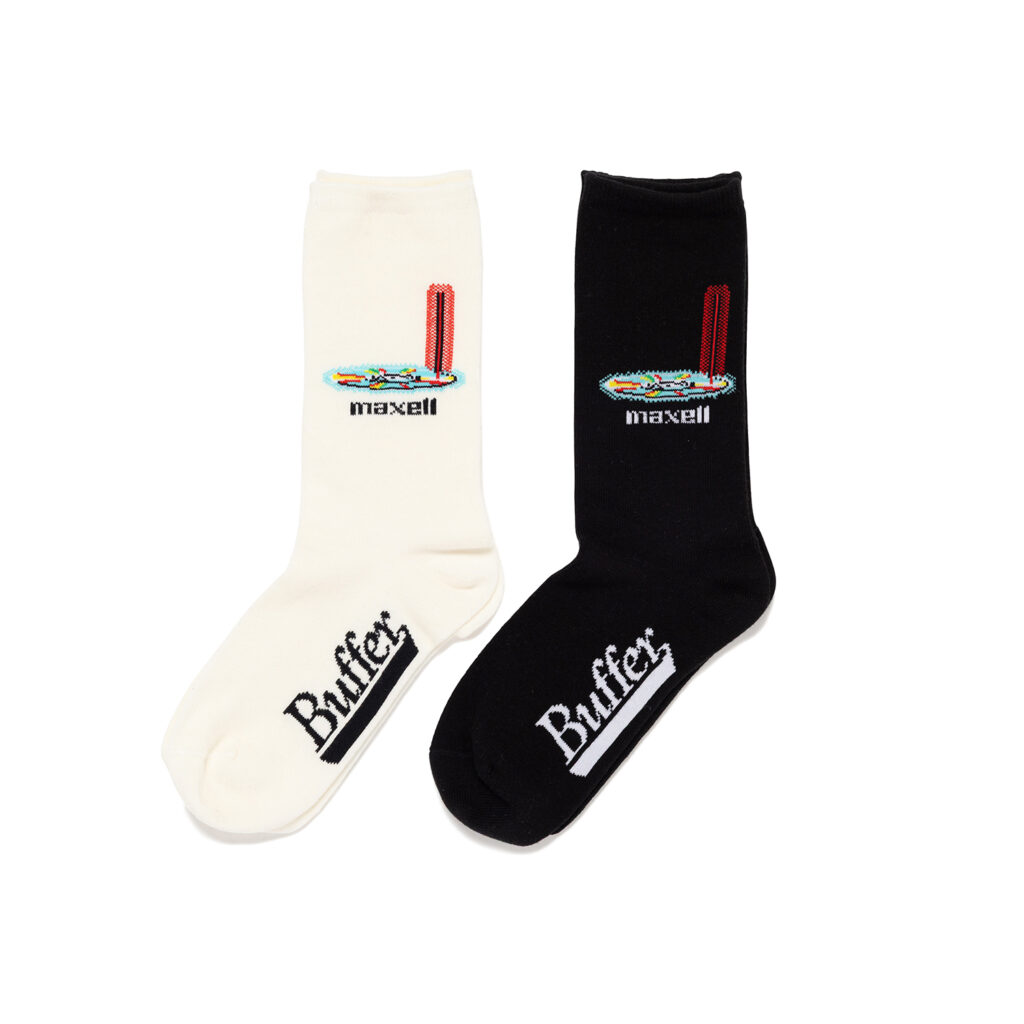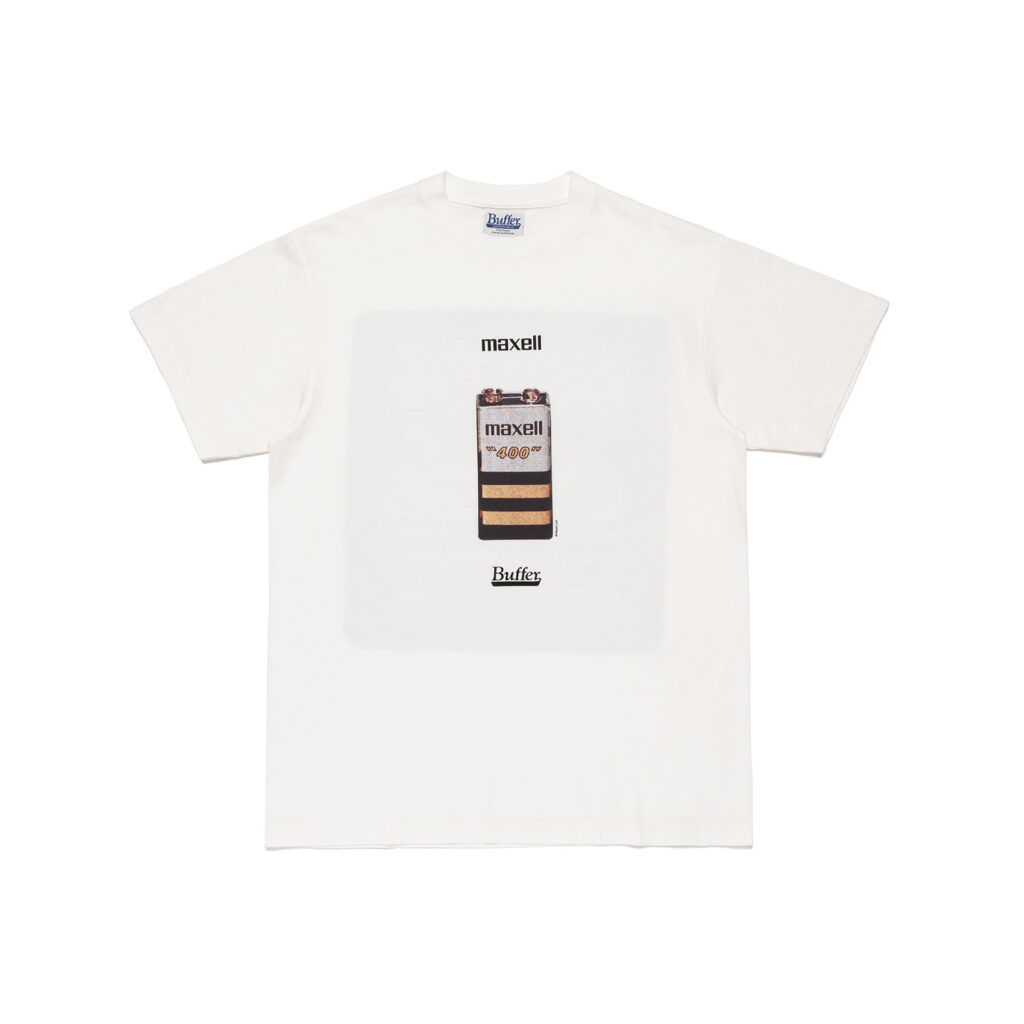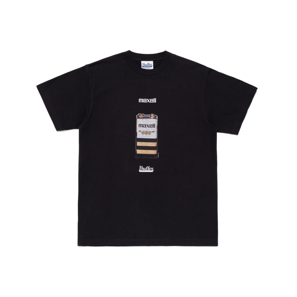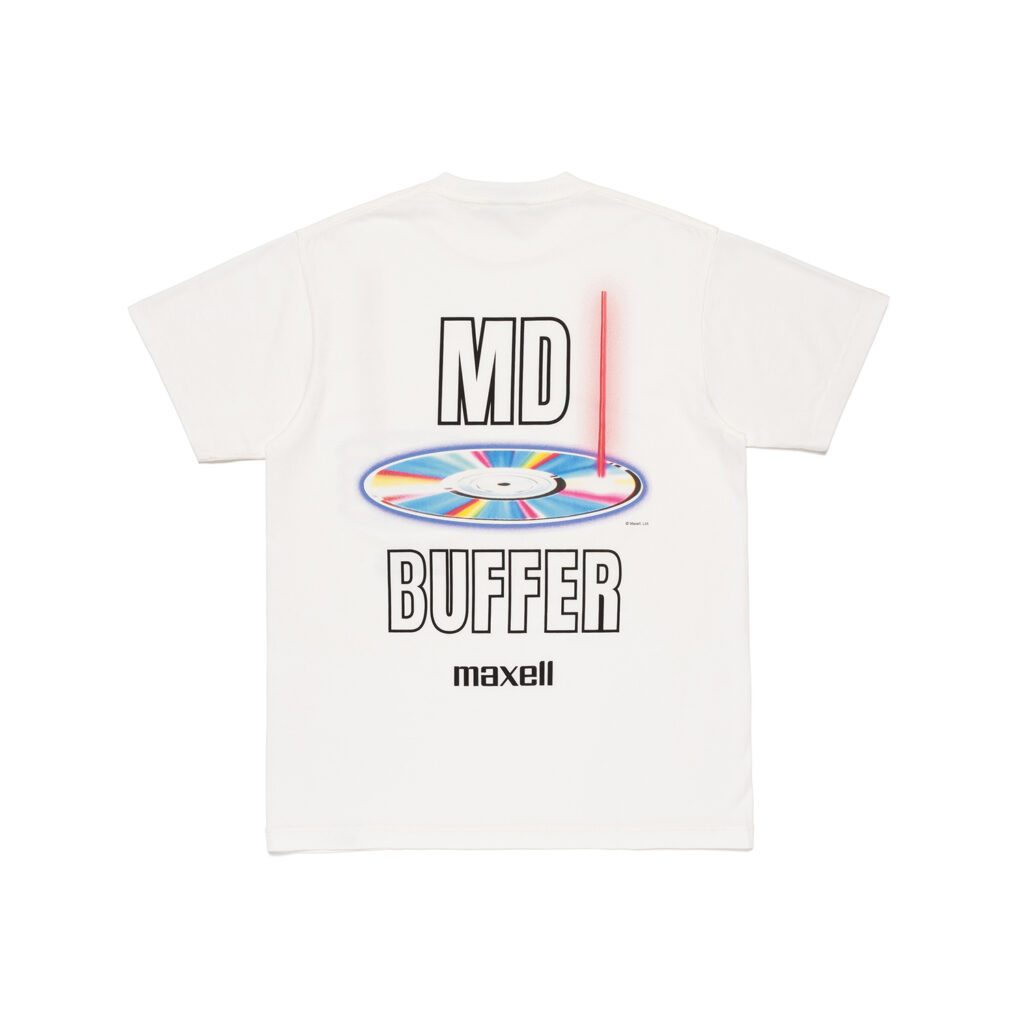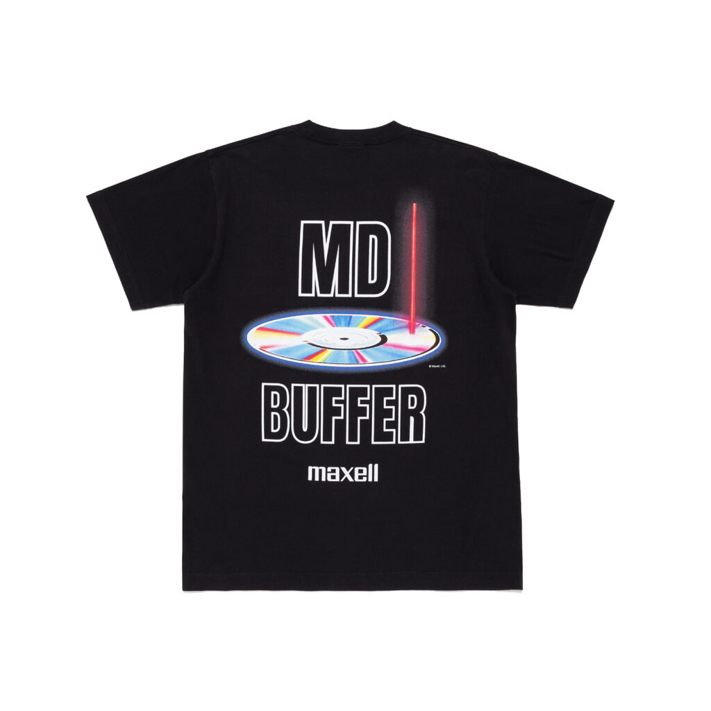 1970年代の角形9V電池や、1993年発売のMaxellブランド初代MDパッケージをグラフィックへと落とし込んだTシャツやソックスのほか、スピーカー付きBluetooth®対応ポータブルカセットプレーヤー『MXCP-P100SBK』もBuffer Store限定で登場する。