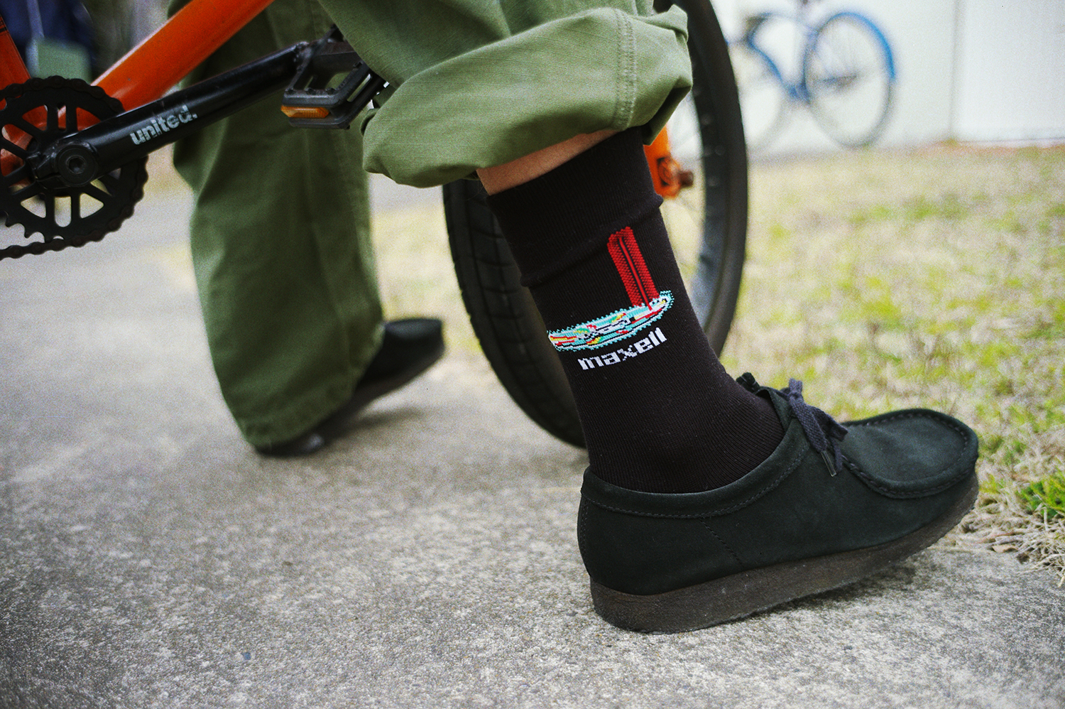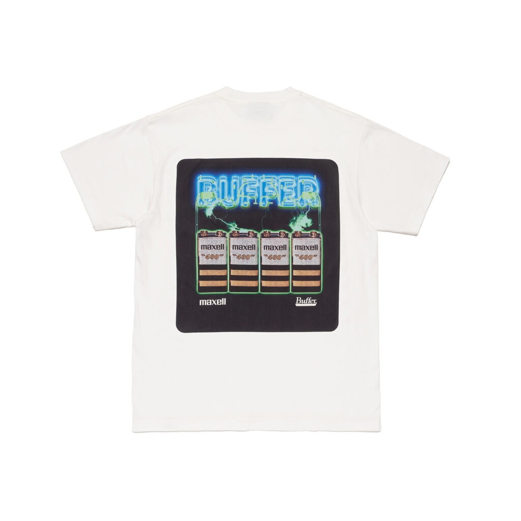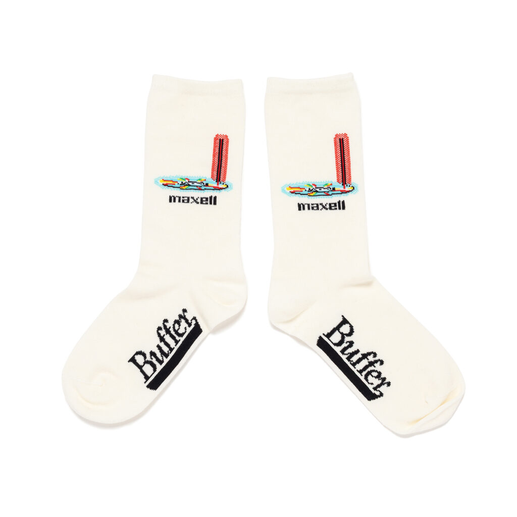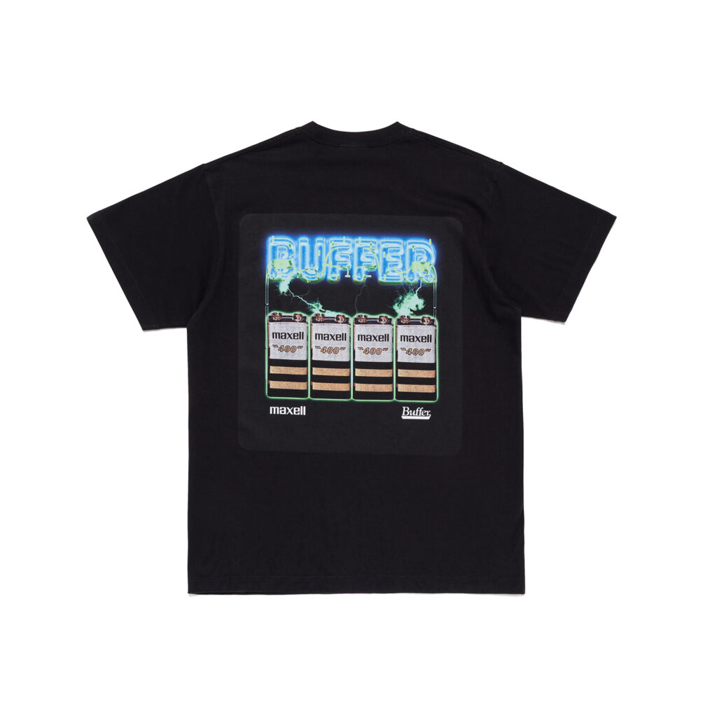 1970年代の角形9V電池や、1993年発売のMaxellブランド初代MDパッケージをグラフィックへと落とし込んだTシャツやソックスのほか、スピーカー付きBluetooth®対応ポータブルカセットプレーヤー『MXCP-P100SBK』もBuffer Store限定で登場する。