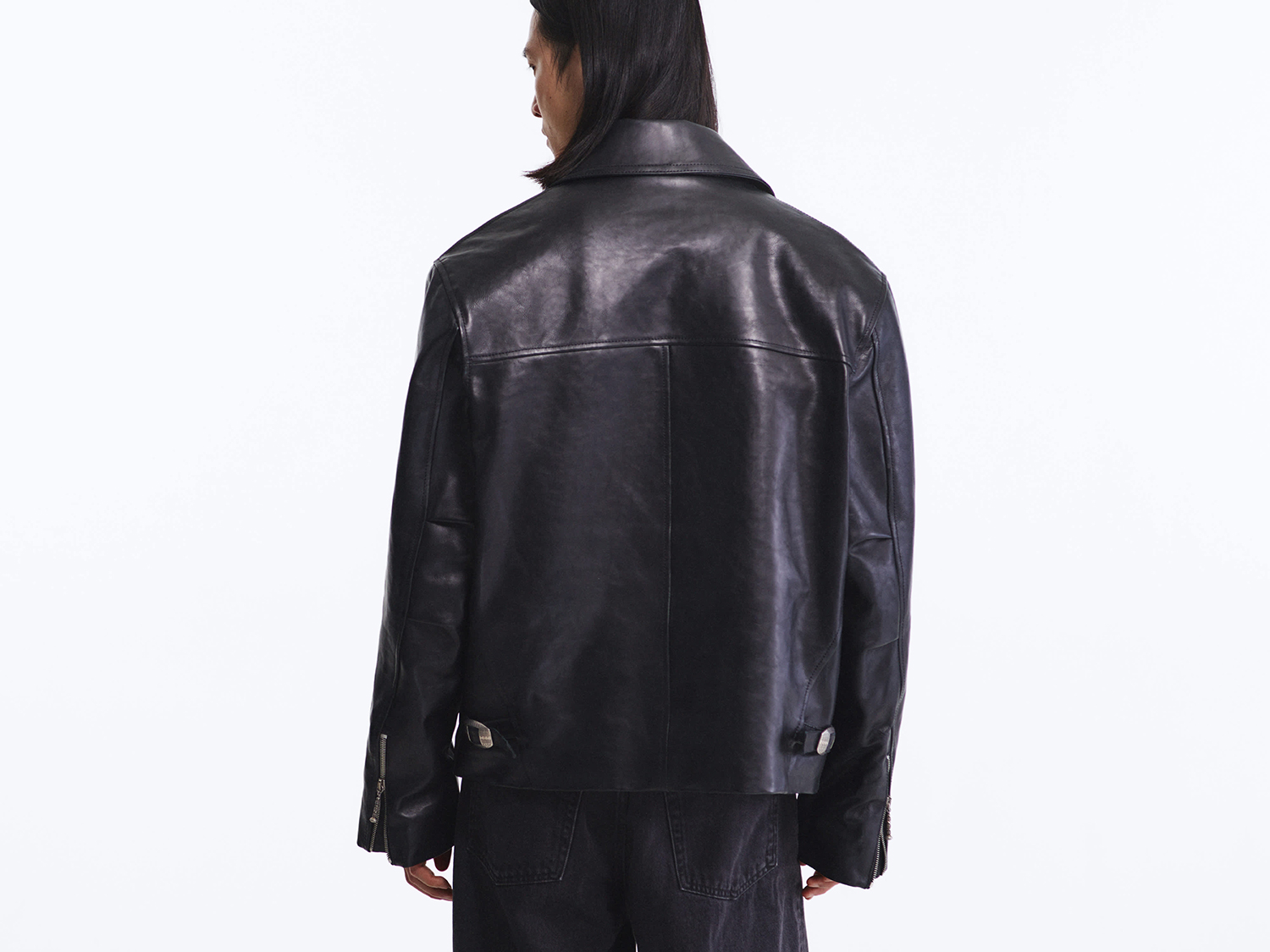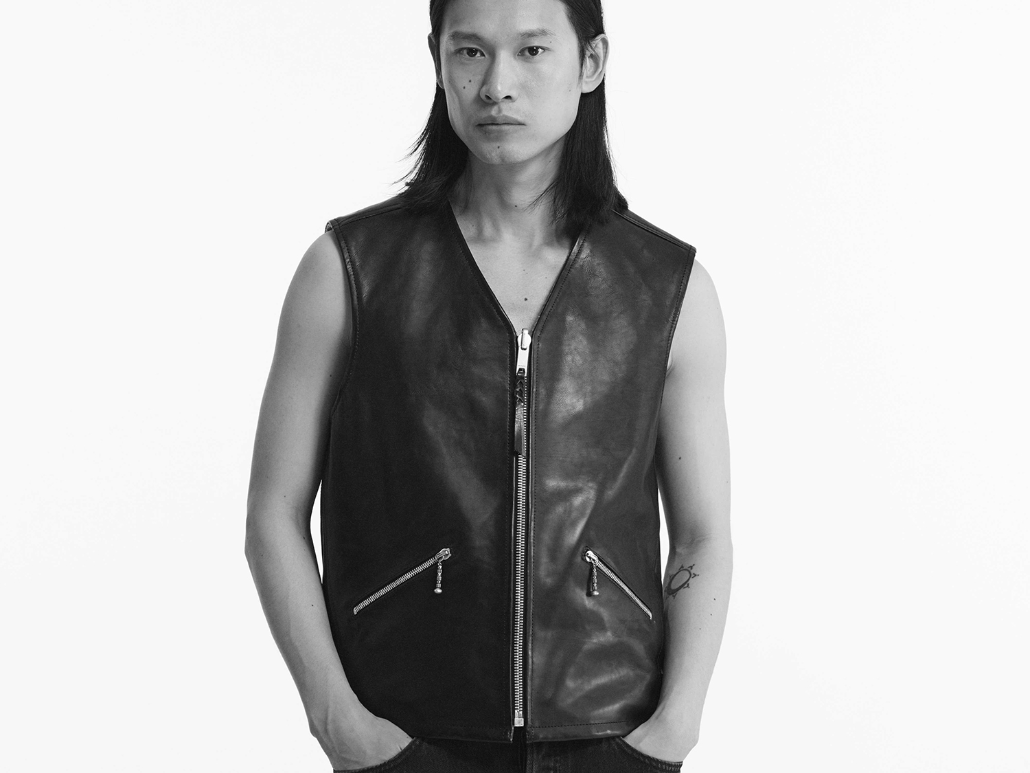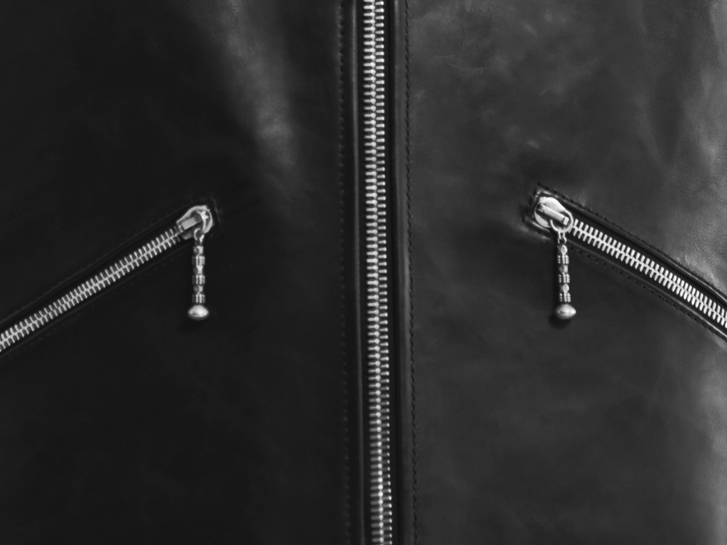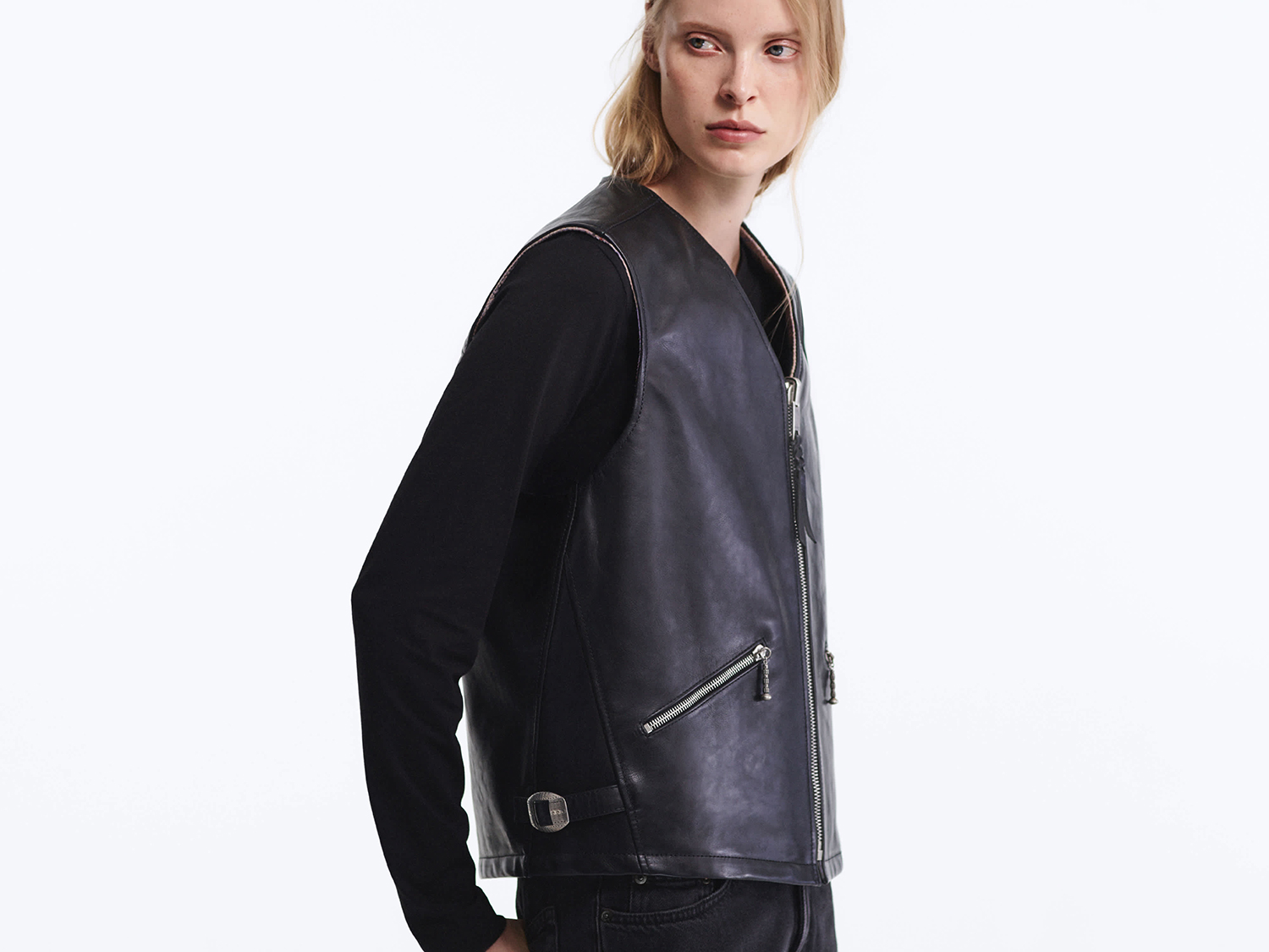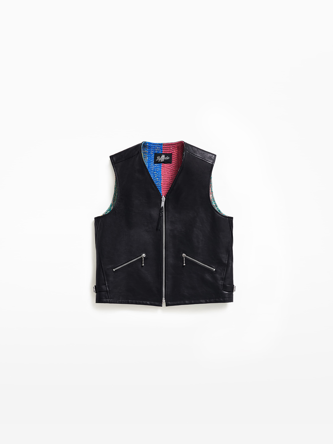 時間とともに独自の風合いを育むベジタブルタンニン鞣しのカーフスキンを用いたレザージャケットと、リバーシブル仕様のレザーベストという2型が登場する。