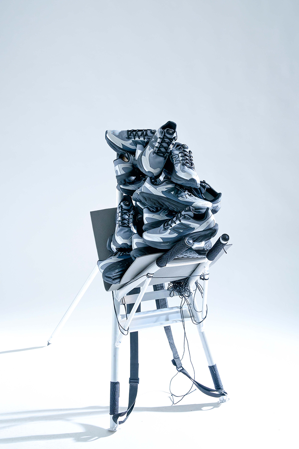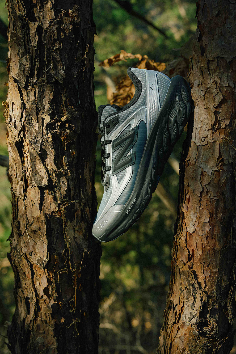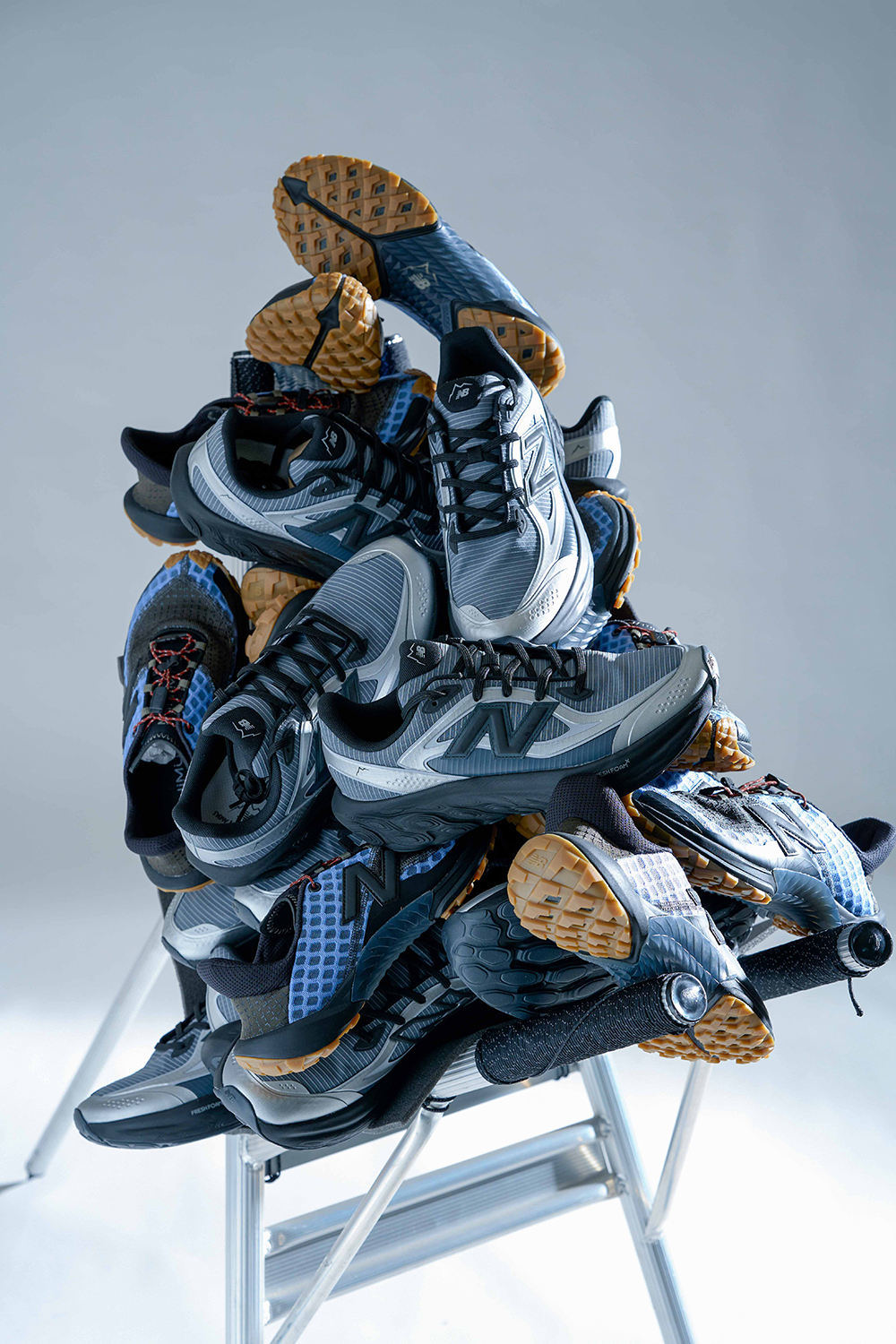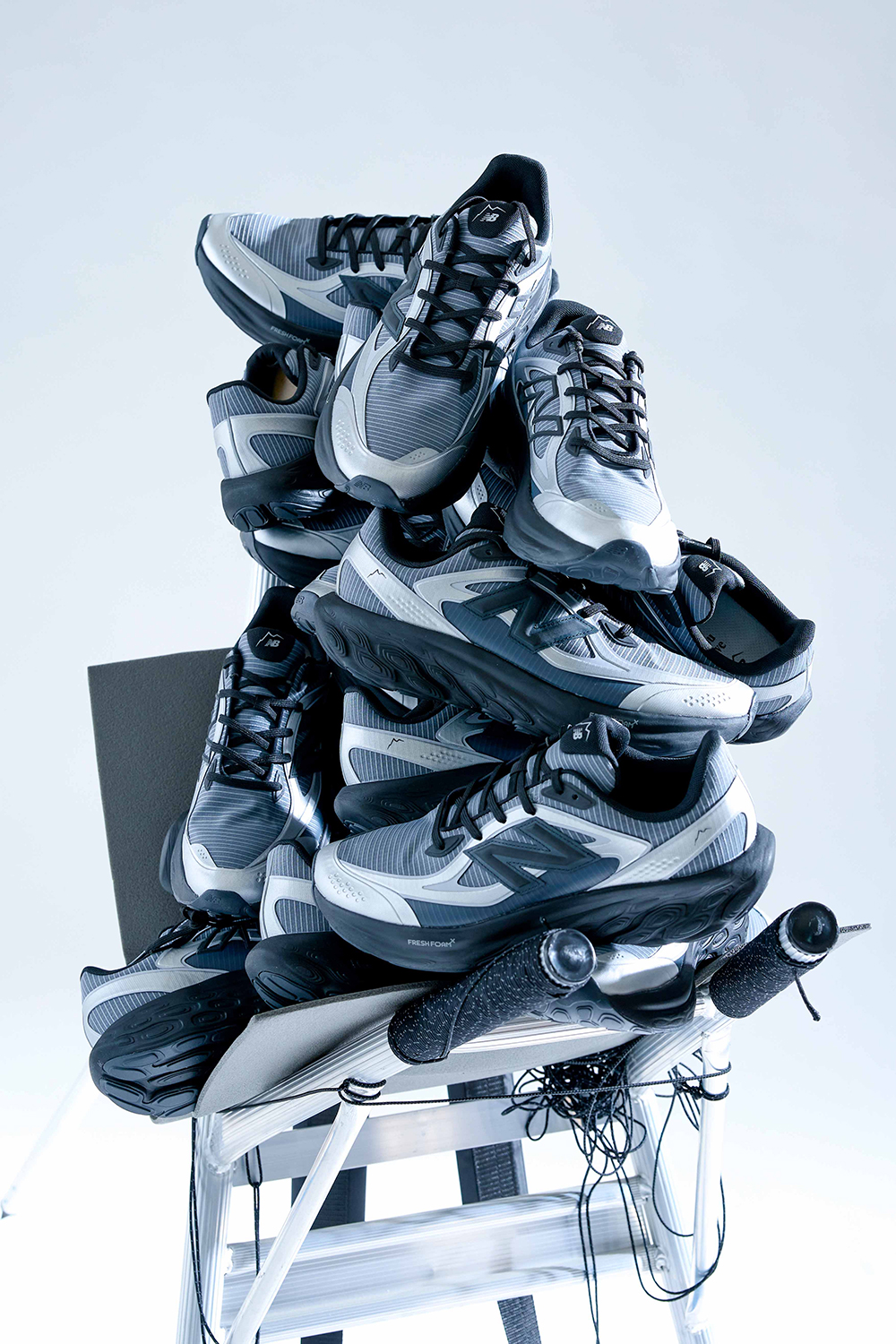 『Fresh Foam Trainer』は、ニュートラルなカラーリングをベースとしつつも、リップストップメッシュのアッパーとメタリックグレーのアクセントを採用。カスタム仕様のタンやインソールには、両ブランド のロゴを配置した。
