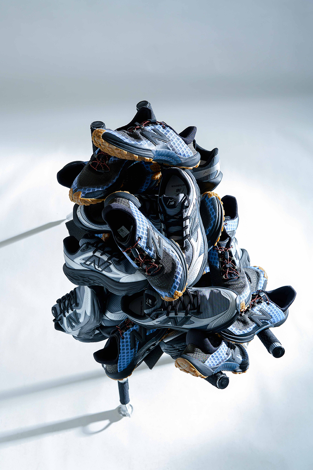 一方、『M10L』は、グリッド状のメッシュとメッシュオーバーレイを組み合わせたアッパーにより、立体的なテクスチャーを表現。露出したステッチがその表情をさらに際立たせている。