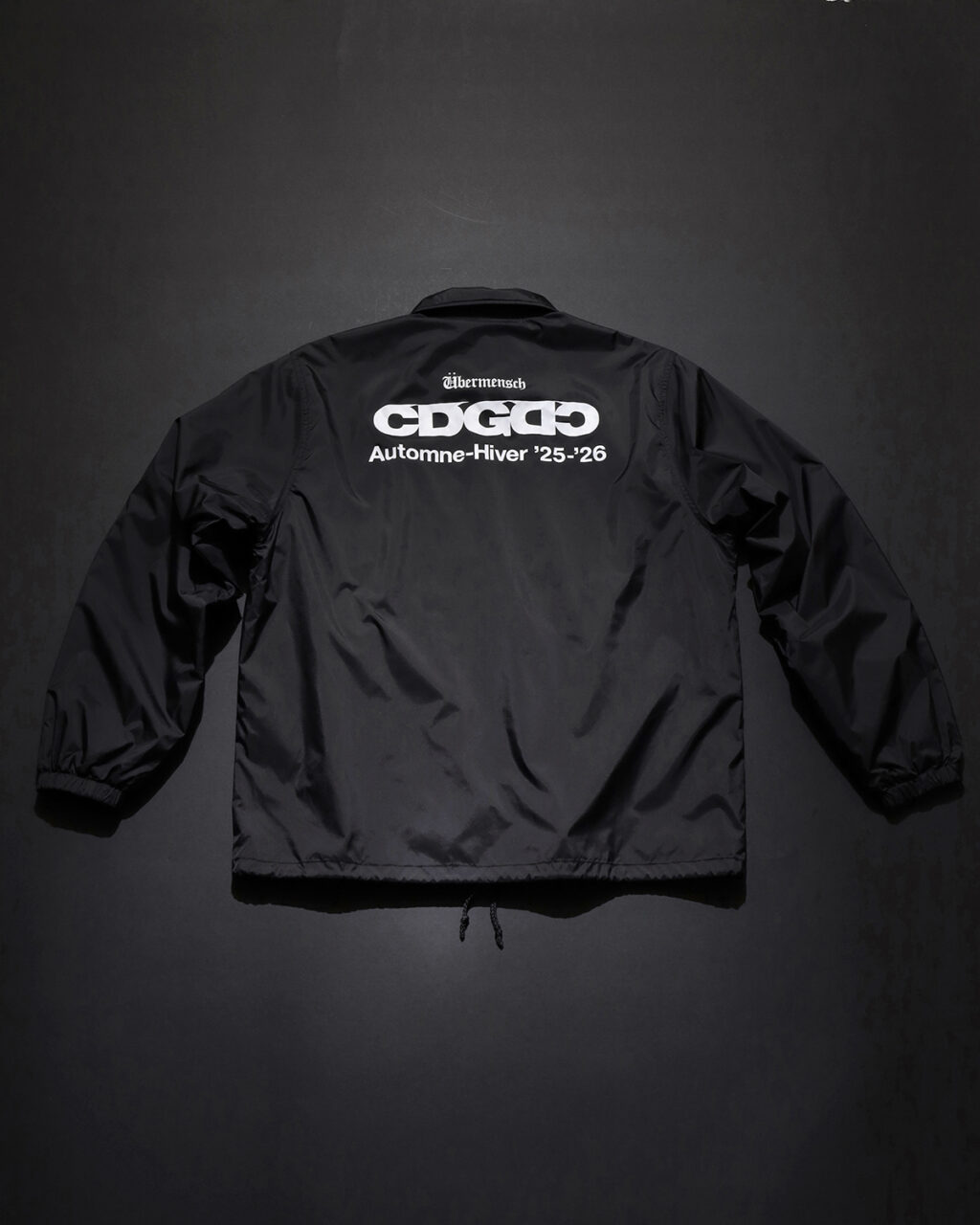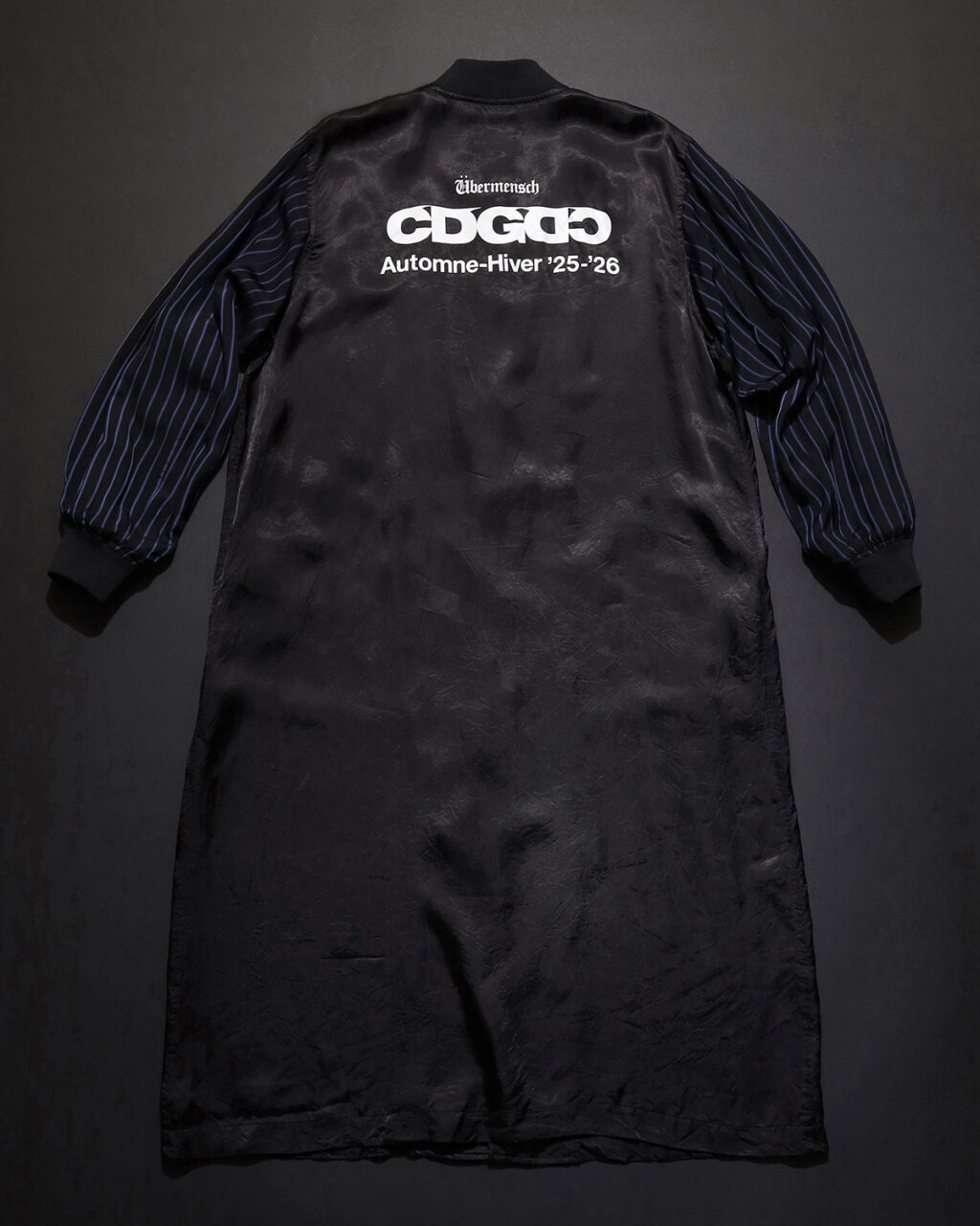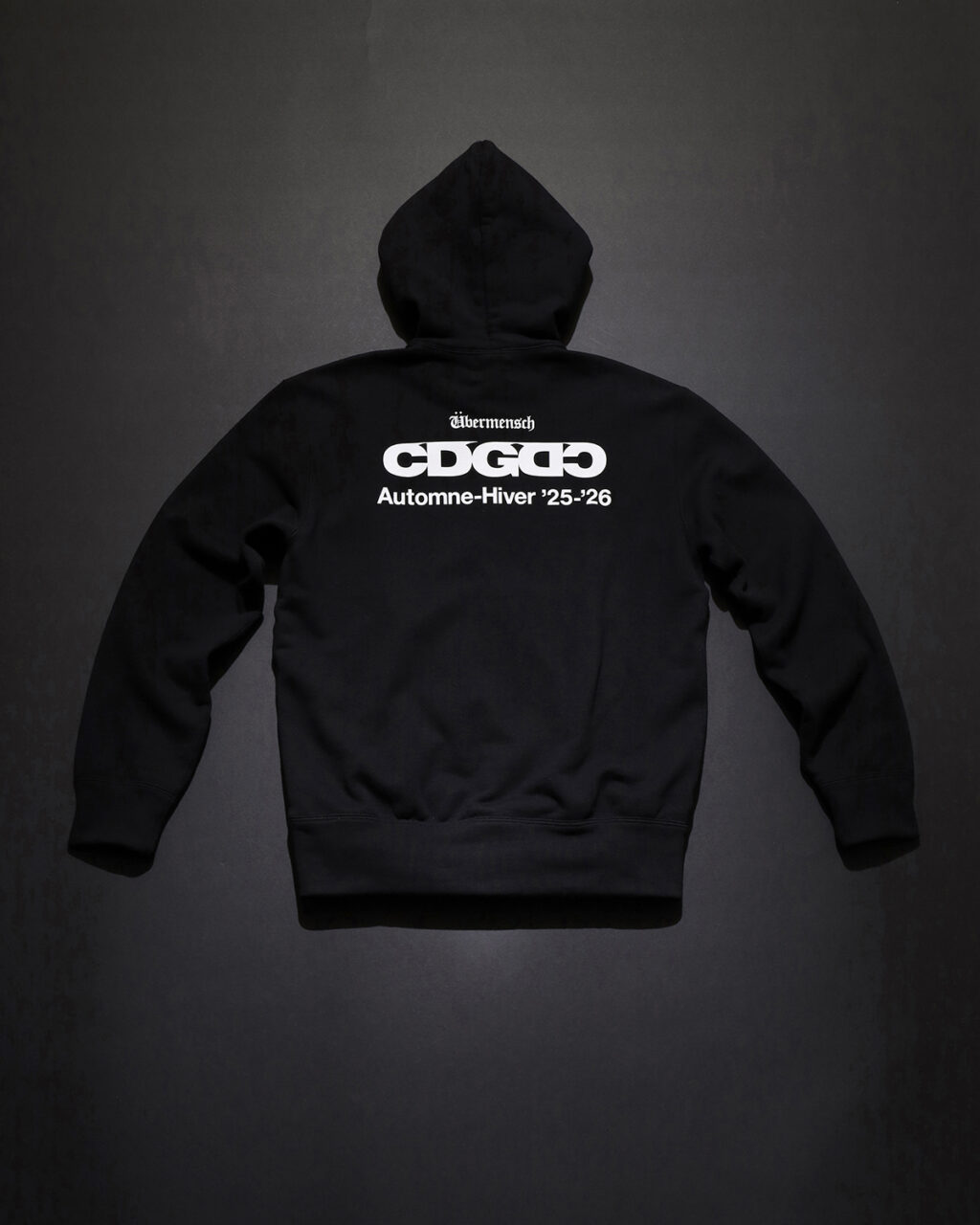 各アイテムには、”CDG × GD”のロゴ、”超人”を意味する”Übermensch”、”Automne-Hiver ’25-’26”の文字が配置されている。