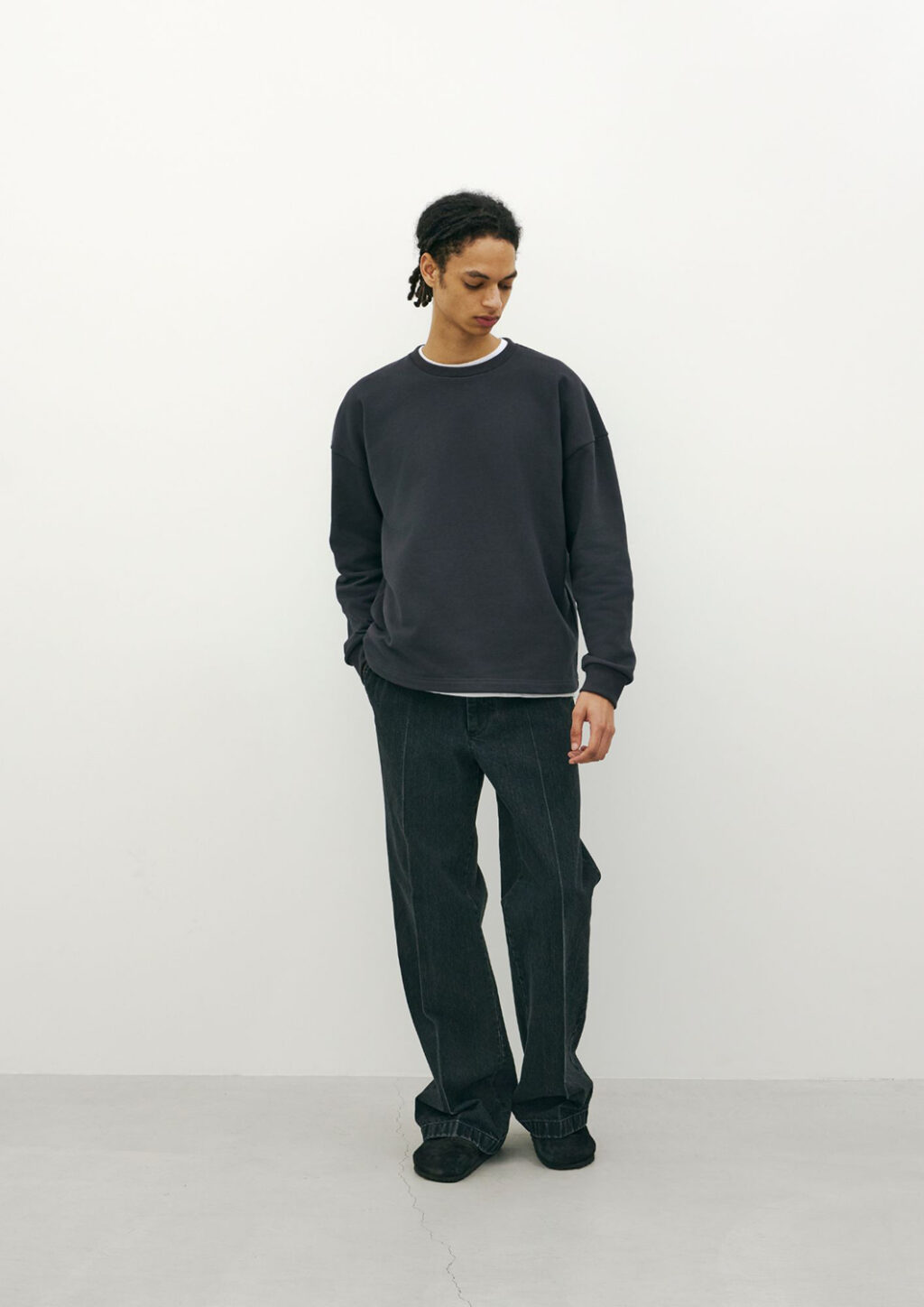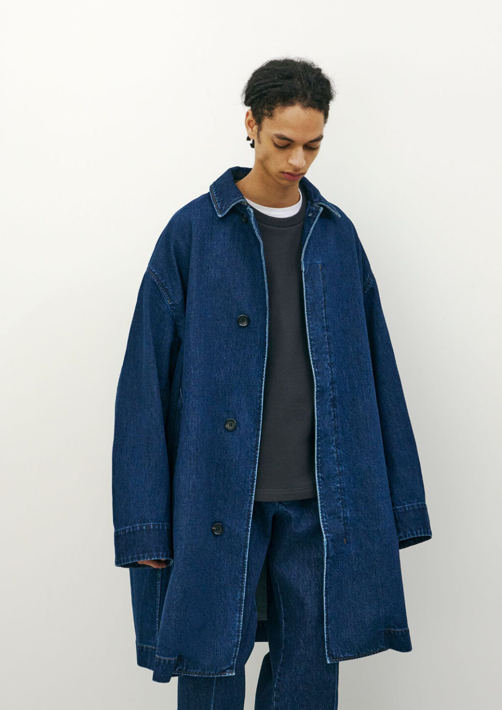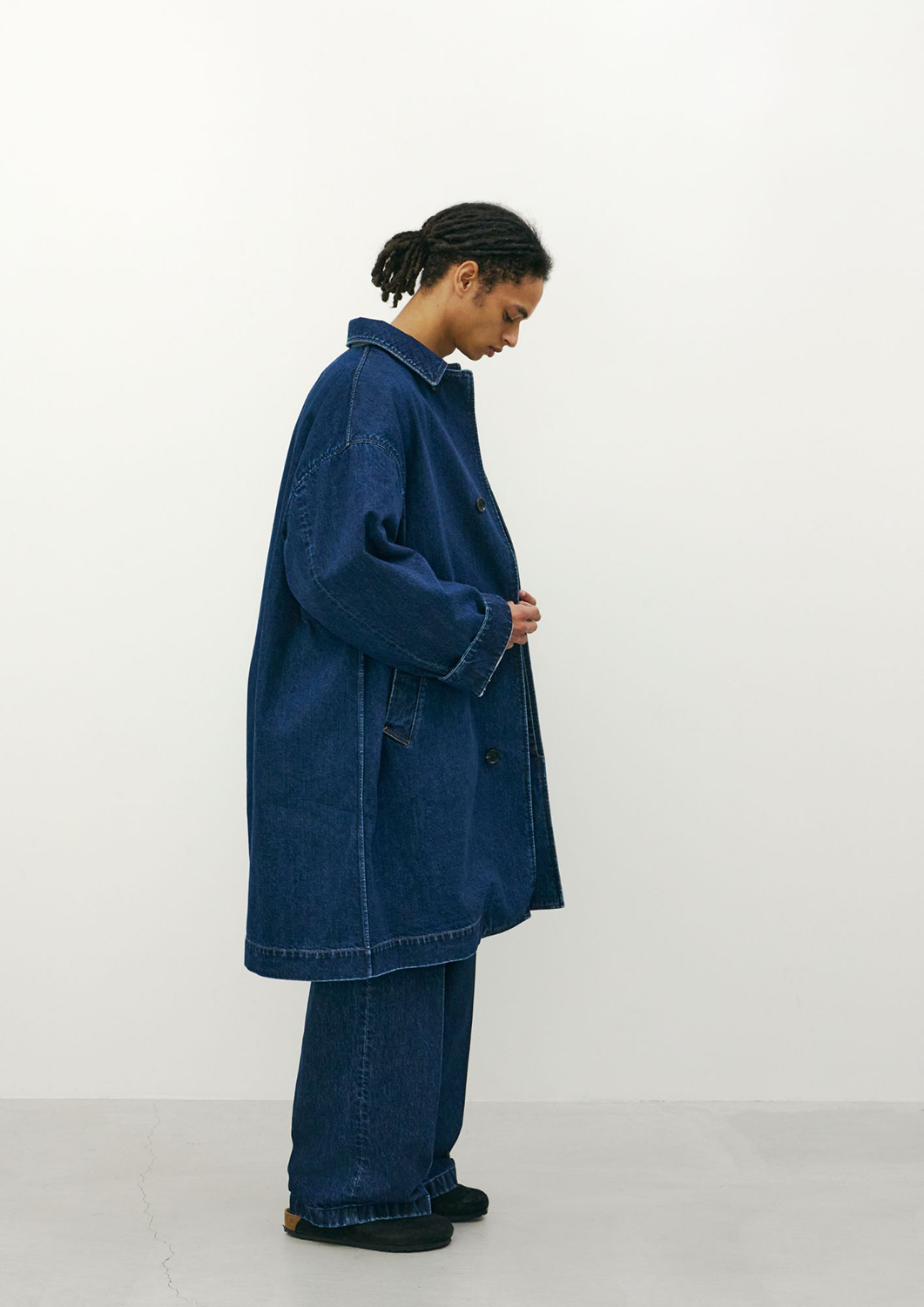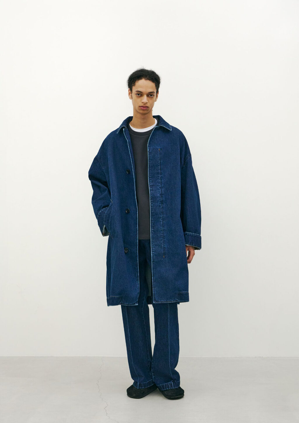 JUNYA WATANABE (ジュンヤ ワタナベ)で約16年に渡ってパタンナーを務めた麻生綾祐が2025年春夏シーズンよりスタートさせた同ブランドだが、今季はブランドの核となるデニム素材を軸に、スラックス型パンツやロングコート、ハリントンジャケットなどを展開。