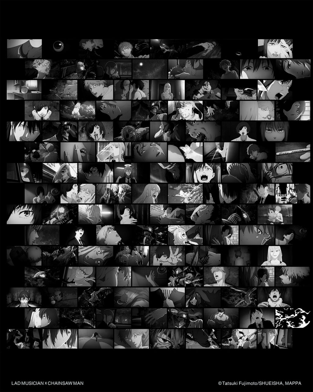 今回のコラボレーションでは、MAPPAによって制作された素材の中からLAD MUSICIANが1つ1つ選択と配置を繰り返し、途方もない作業の末に選ばれた212カットを採用。