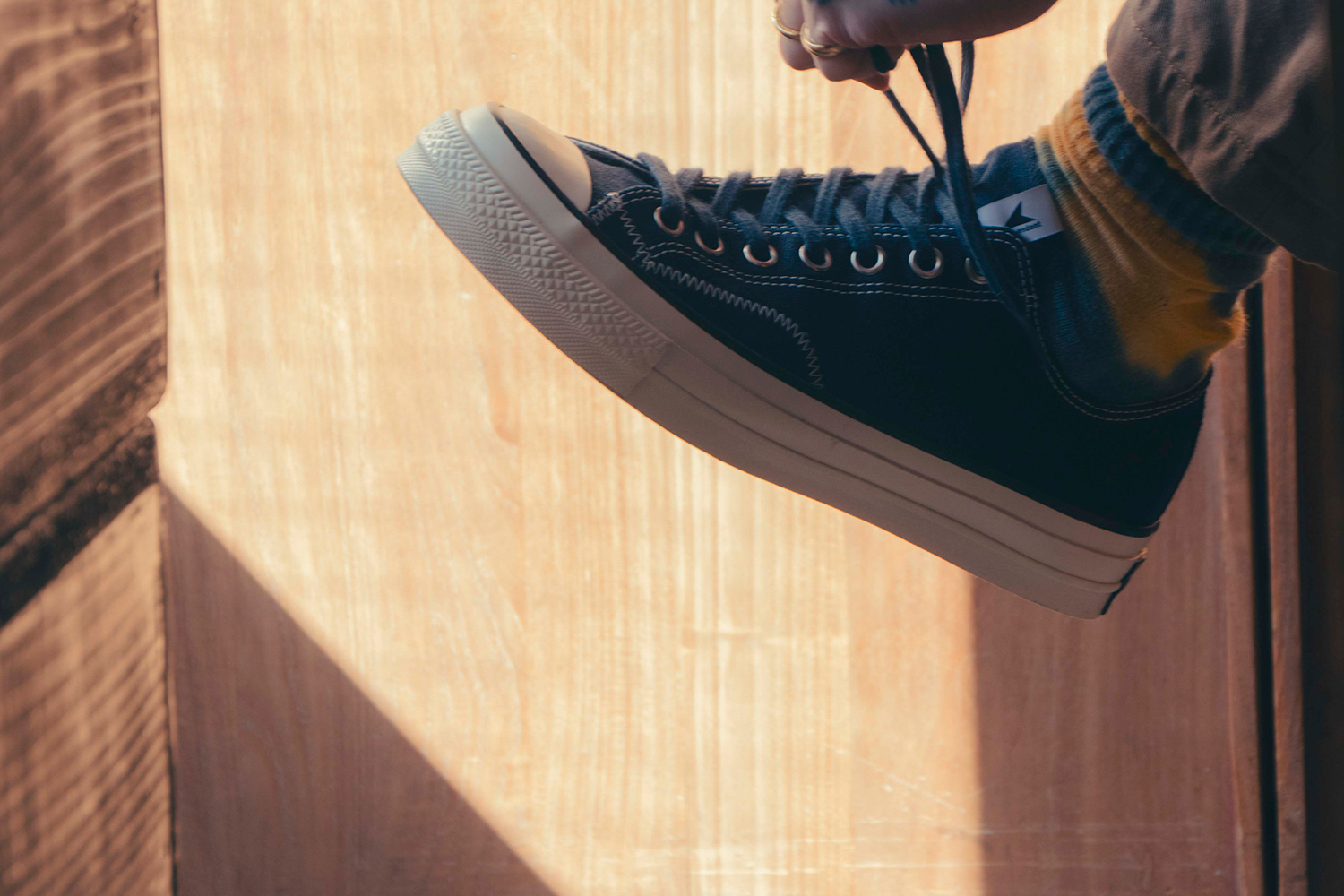 この両者にとって初のタッグとなる今回は、アーカイブへの敬意を込めたディテールと現代的な履き心地を融合させたCONVERSEの新たなフラッグシップモデル『ALL STAR LGCY』をベースに採用。