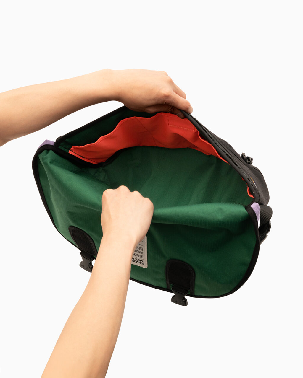 素材には、耐久性に優れた1,000デニールのコーデュラと、再生ペットボトルやプレコンシューマー廃棄物を使用した環境配慮型のリップストップを採用。