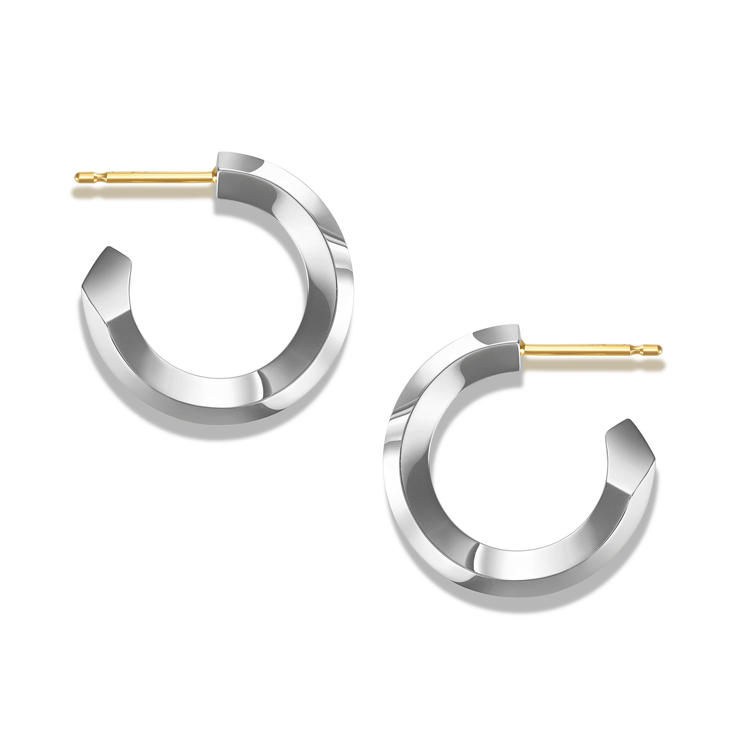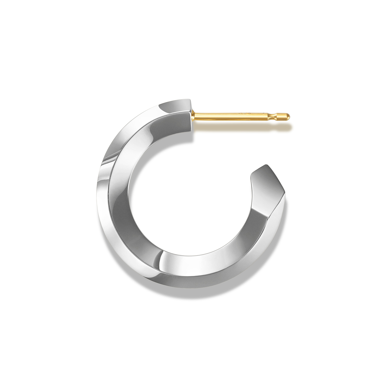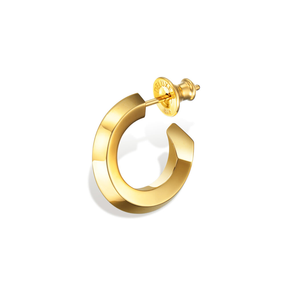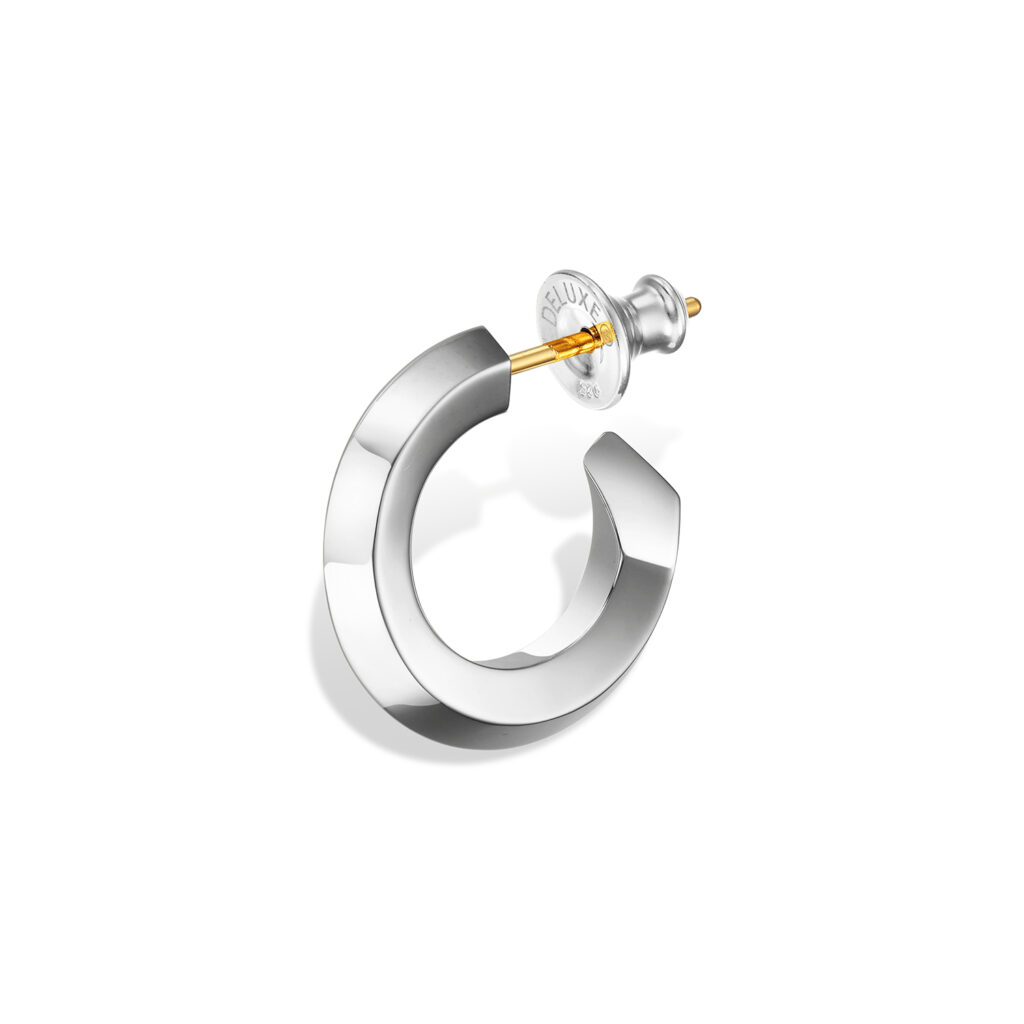 シンプルながらも建築的な美意識を感じさせるユニセックスなデザインで、多面カットによってあらゆる角度から光を取り込み、耳元で洗練された輝きを放つ。