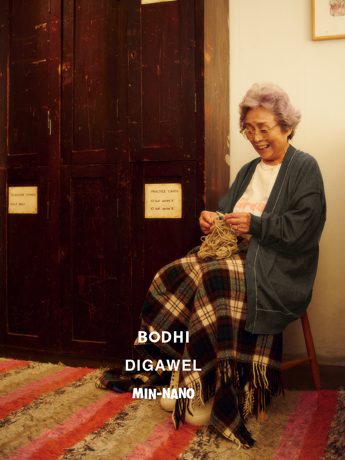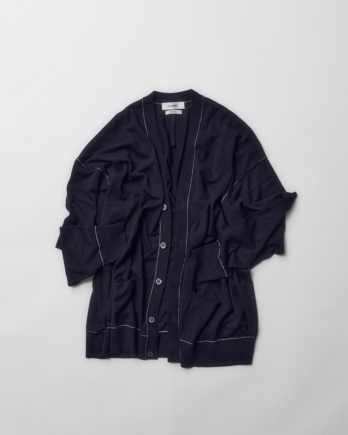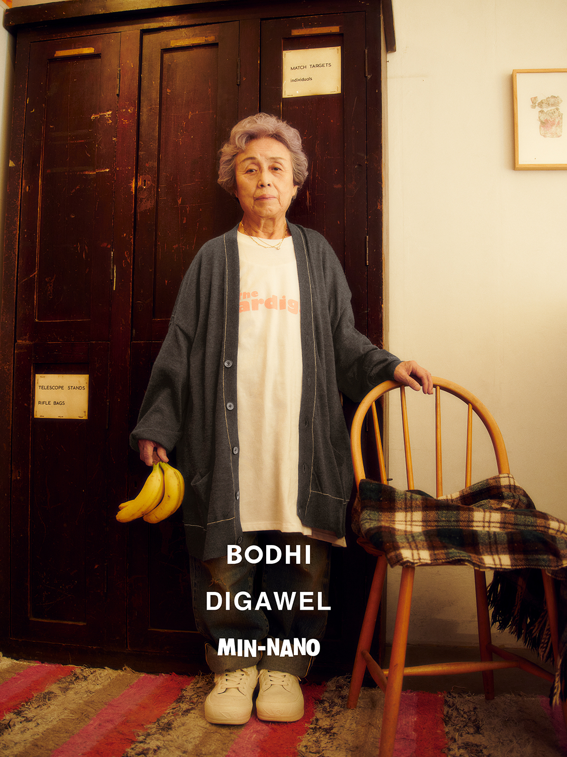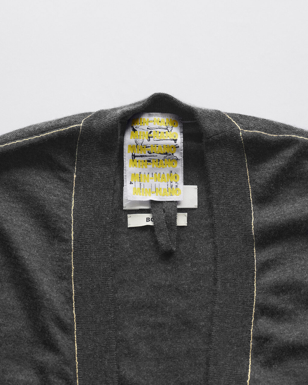 カーディガンは前回登場した型をベースとしつつも、2サイズ程度オーバーサイズへアップデート。こちらはMIN-NANO別注カラーのグレーも展開され、カーディガンに合わせるために作ったMIN-NANO別注Tシャツも登場する。