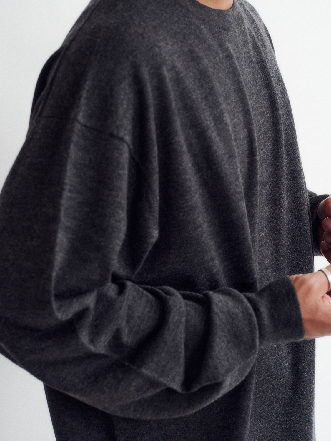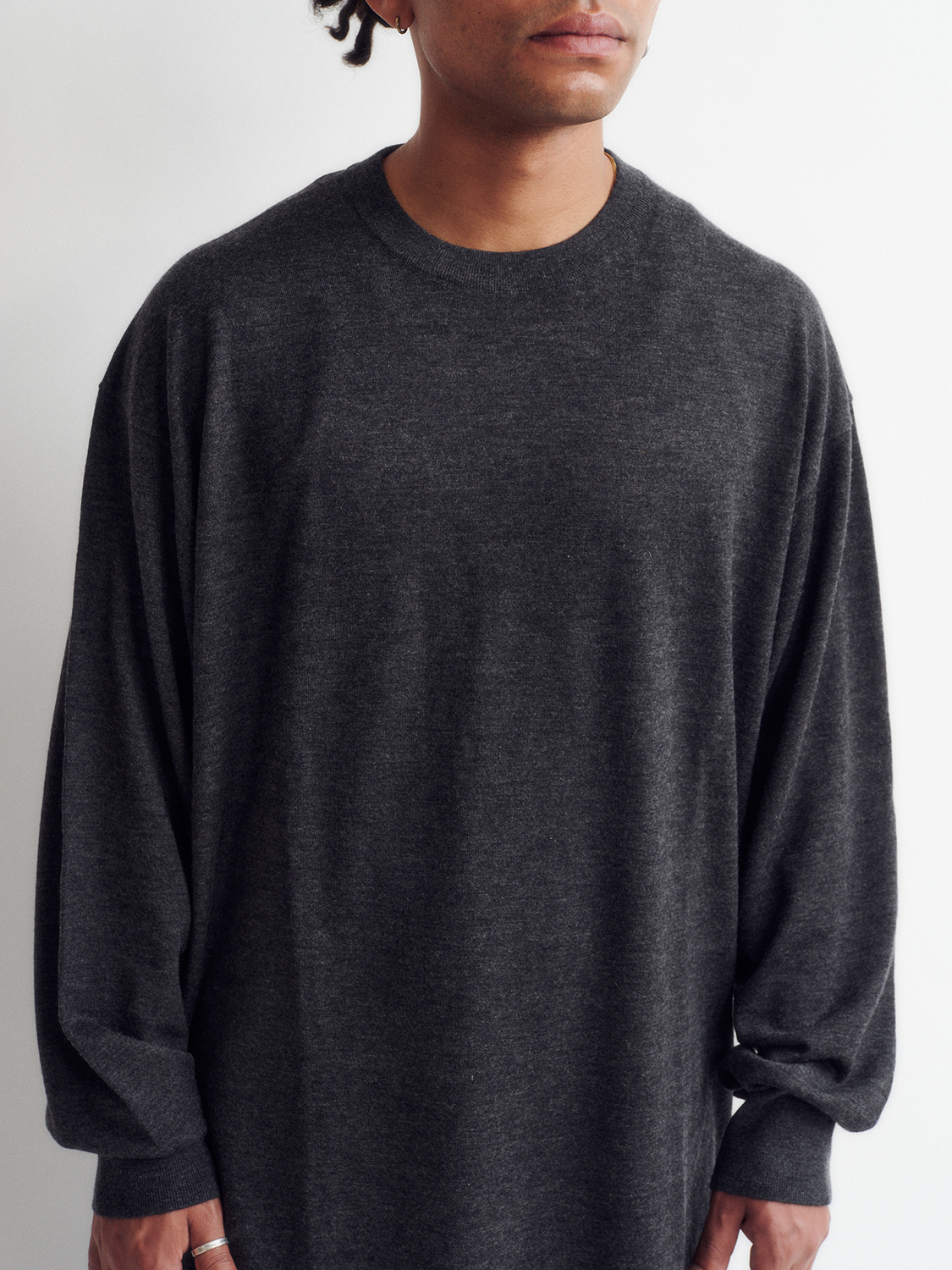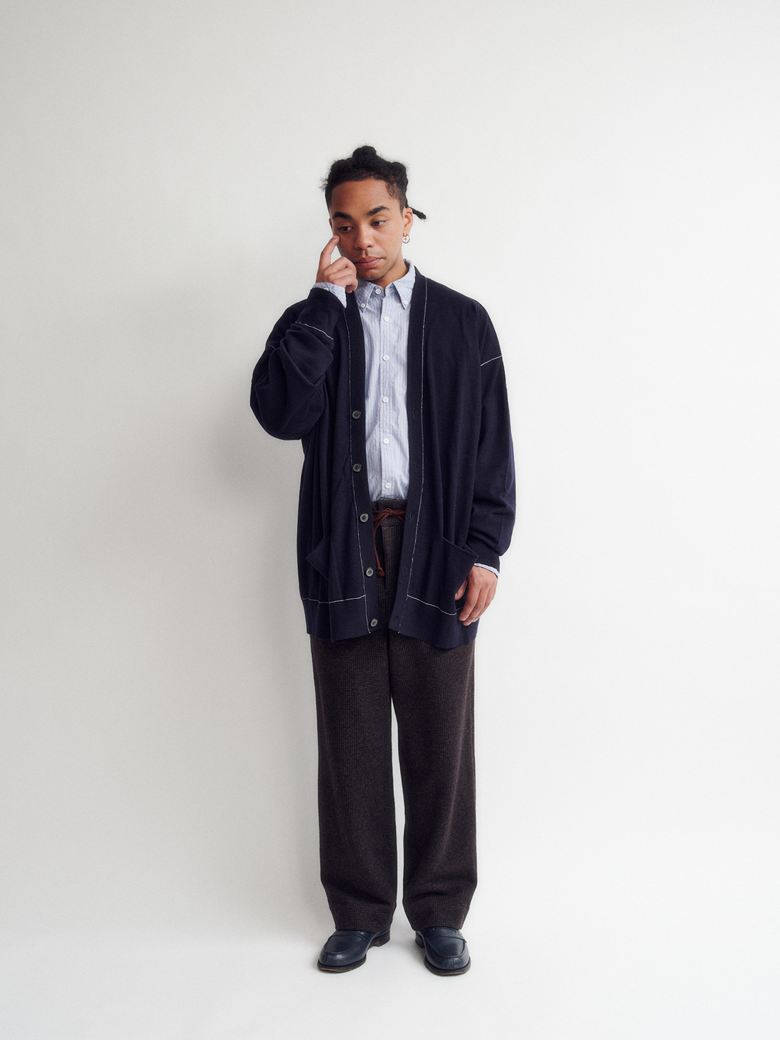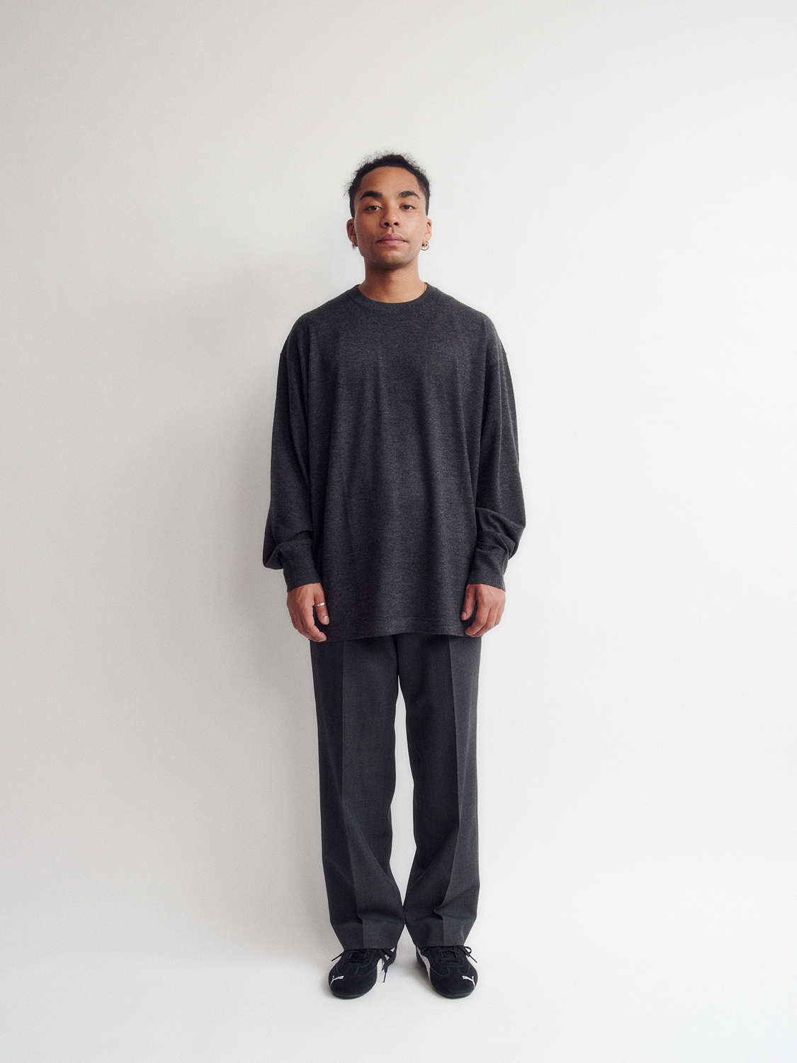 カーディガンは前回登場した型をベースとしつつも、2サイズ程度オーバーサイズへアップデート。こちらはMIN-NANO別注カラーのグレーも展開され、カーディガンに合わせるために作ったMIN-NANO別注Tシャツも登場する。