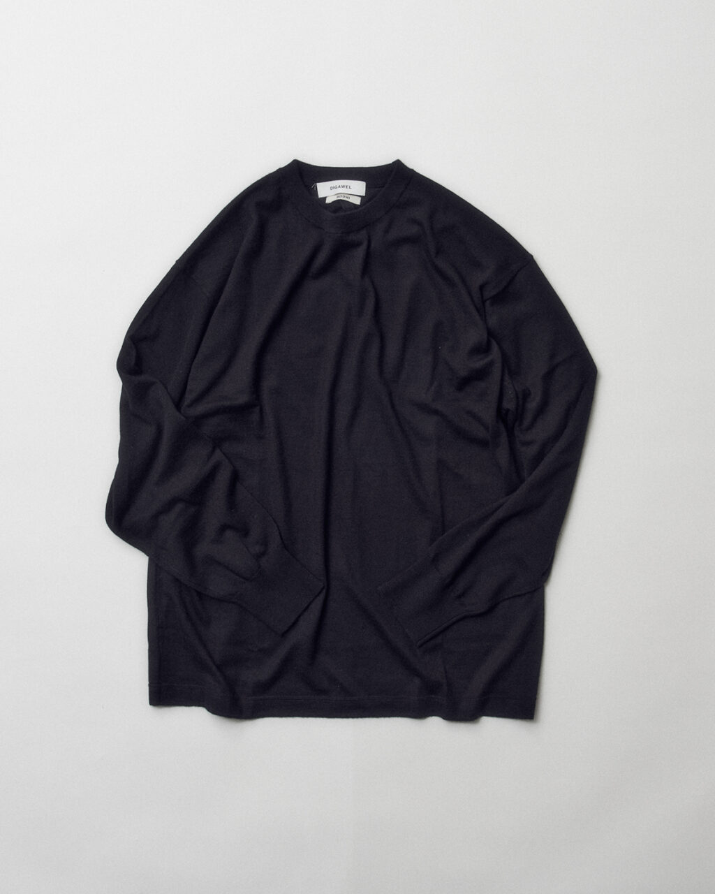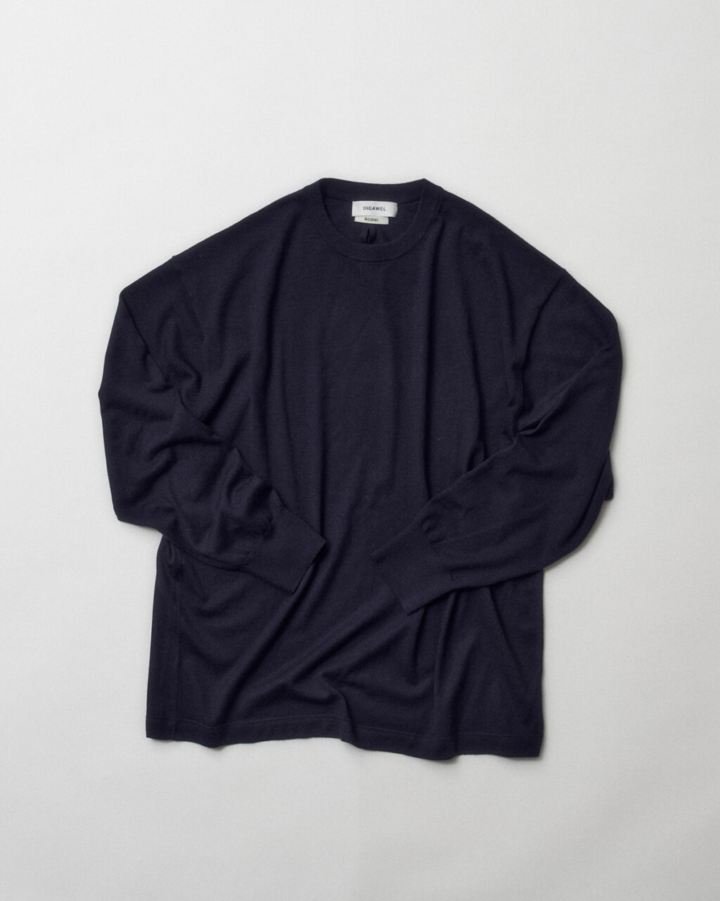 どちらもニットとカットソーの長所を備えたハイゲージである、18ゲージという繊細な編み地で仕立てている。